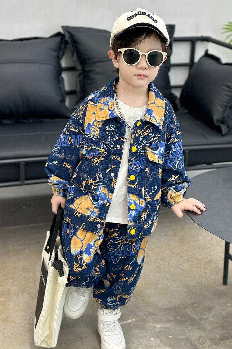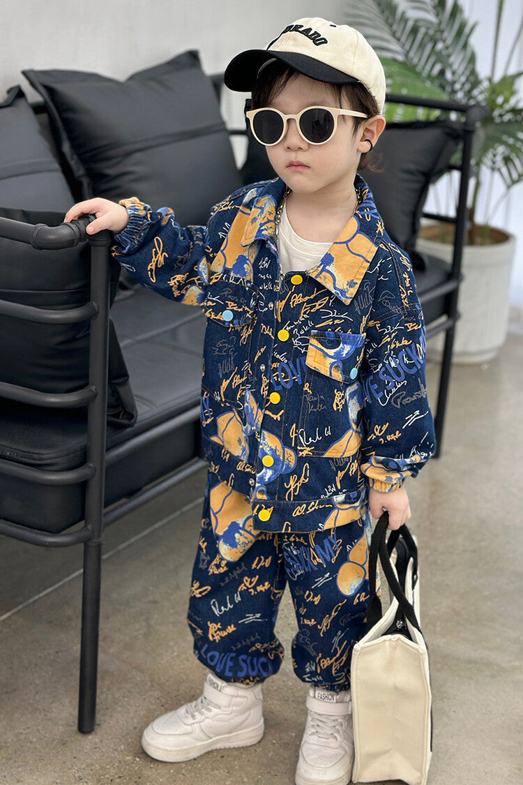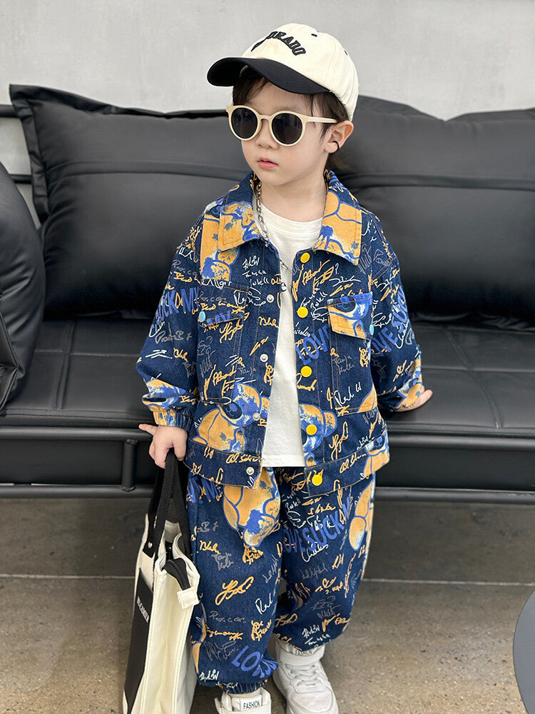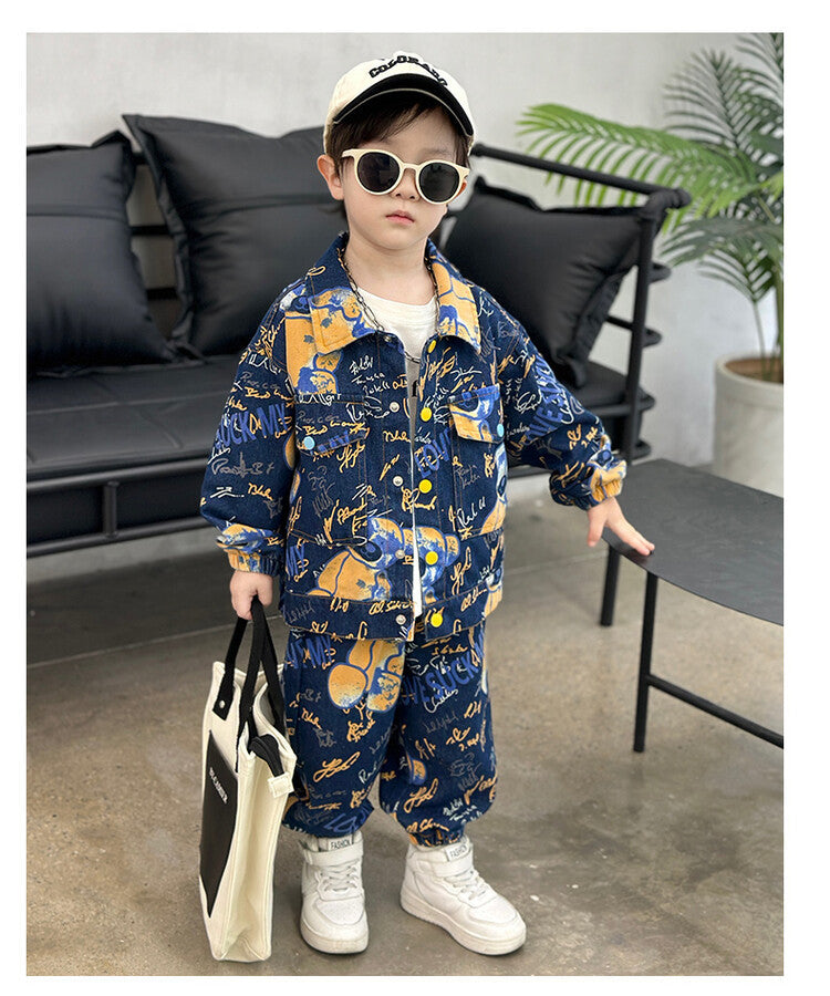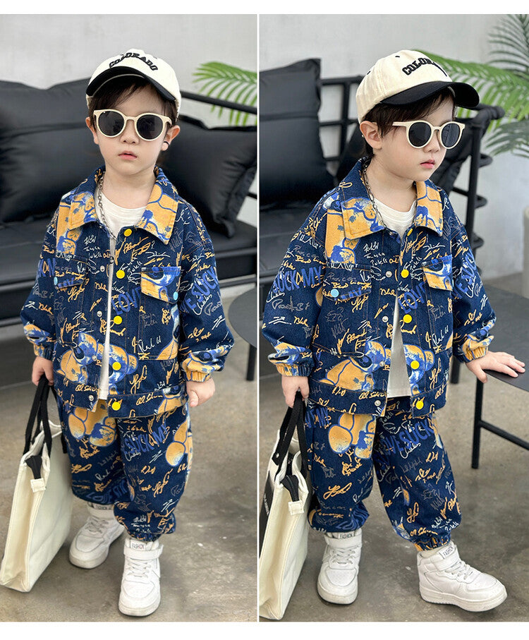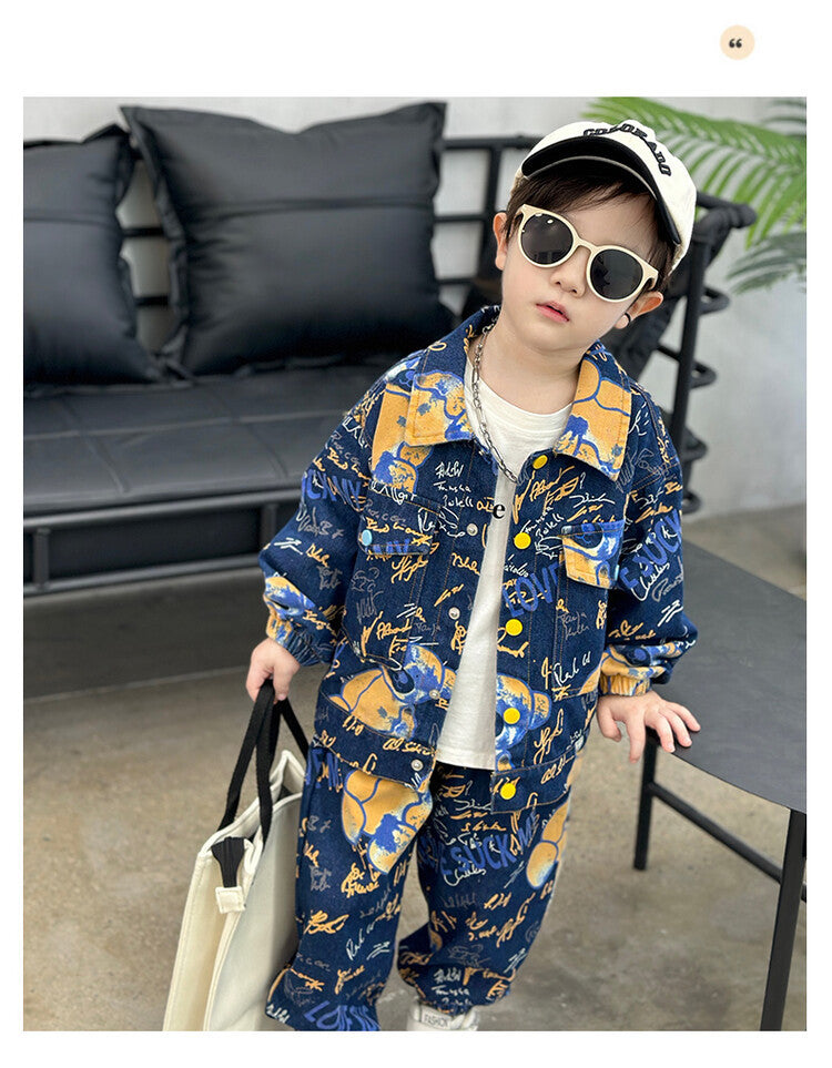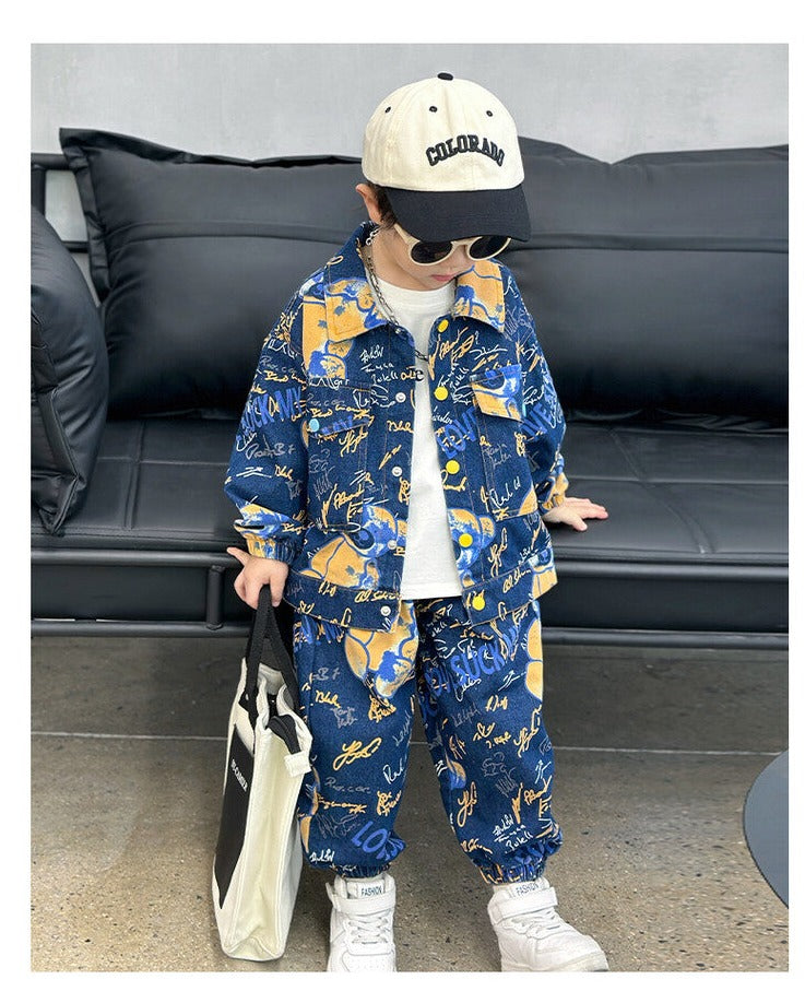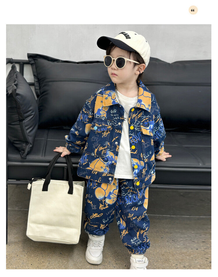 طقم جينز برسومات مميزة بجي قطعتين ( جكيت + بنطلون)