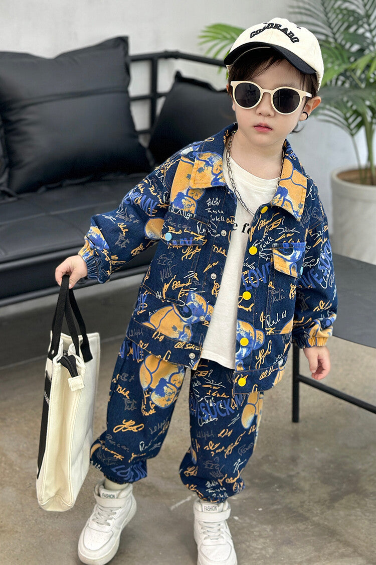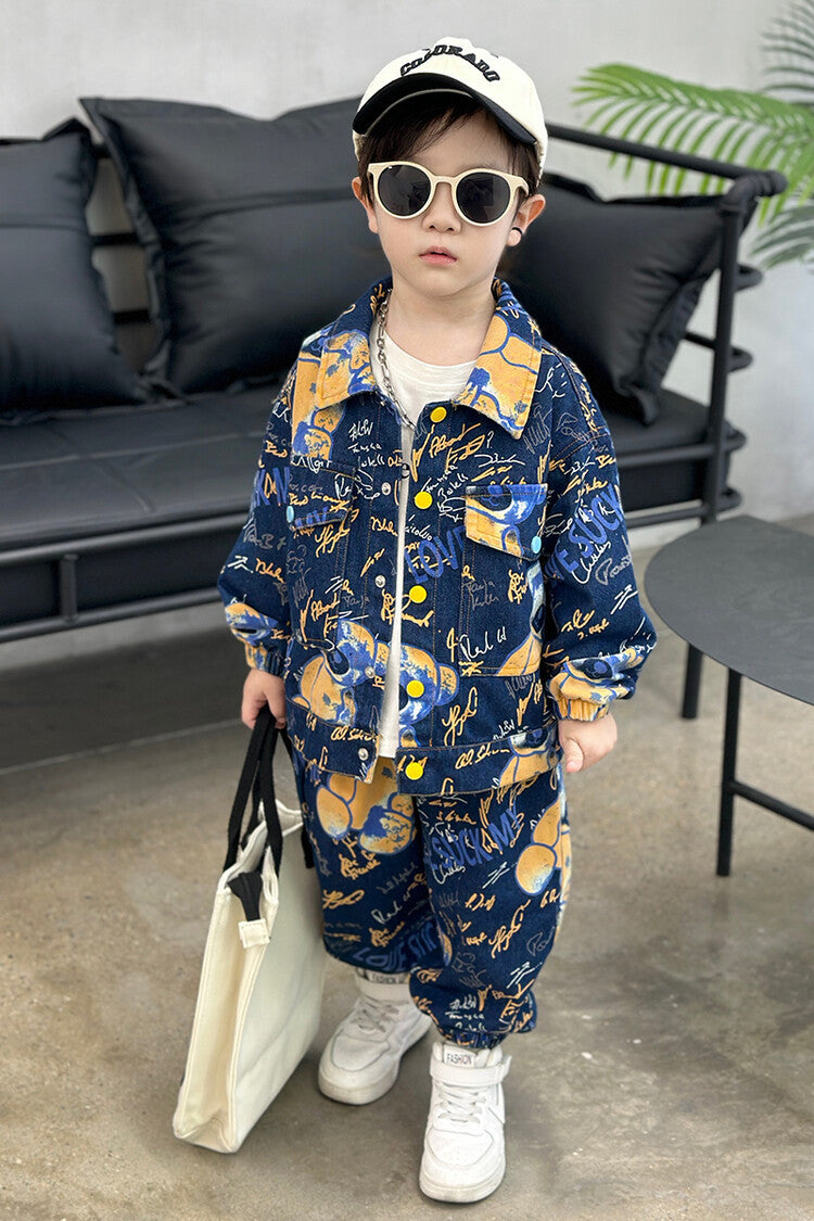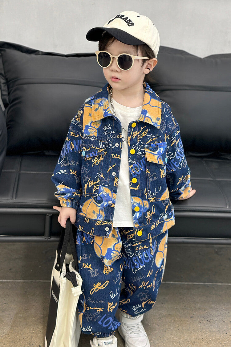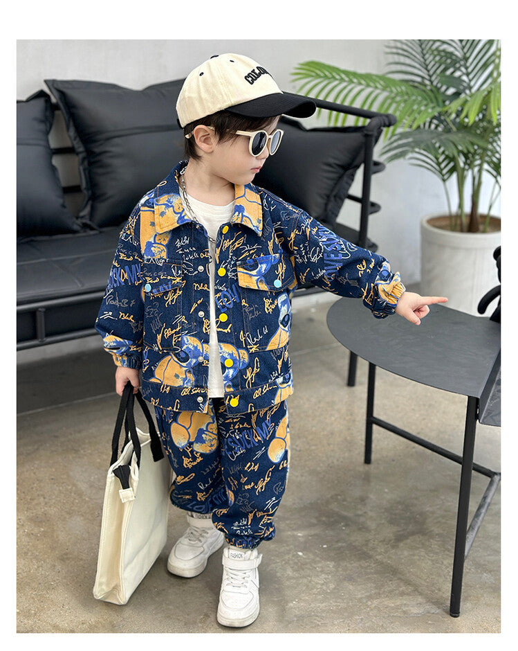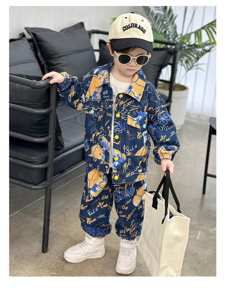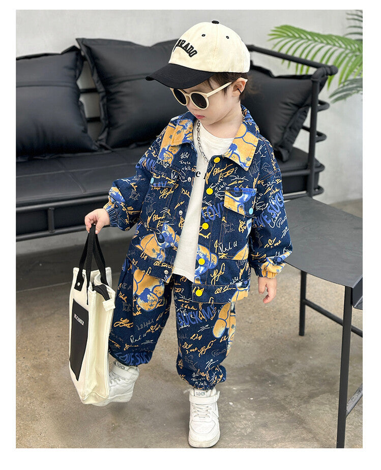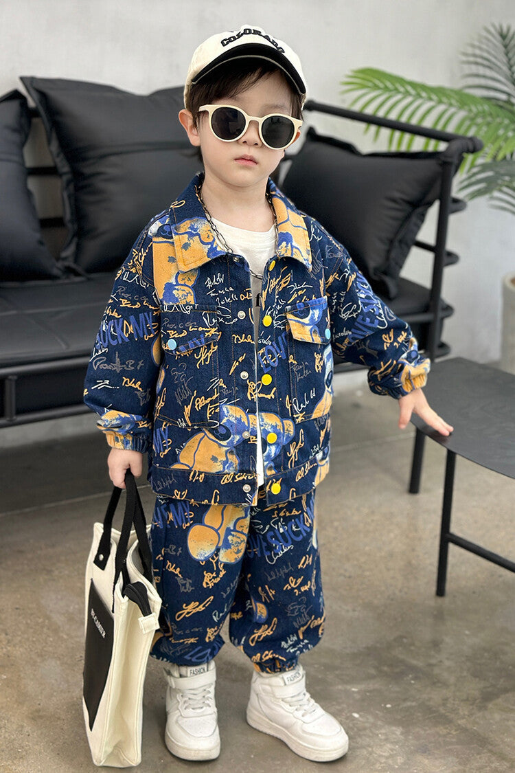 طقم جينز برسومات مميزة بجي قطعتين ( جكيت + بنطلون)
