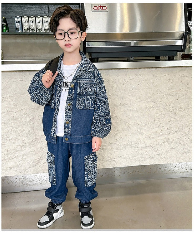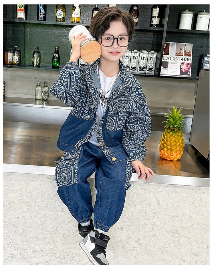 طقم جينز ناعم و فاخر بجي قطعتين ( جكيت + بنطلون)