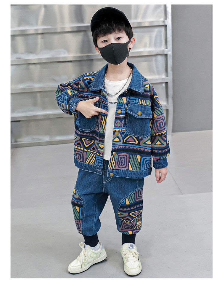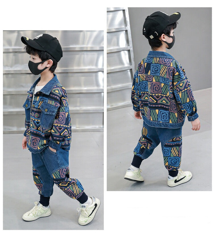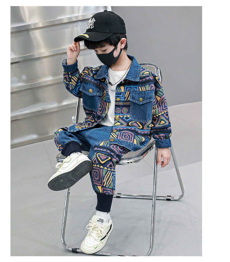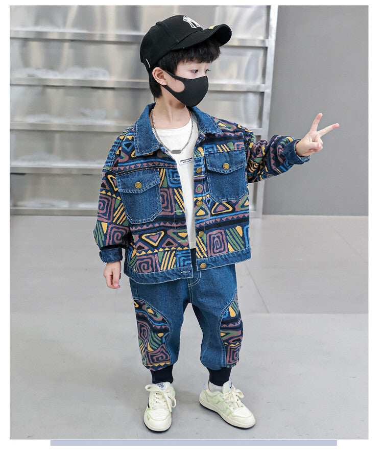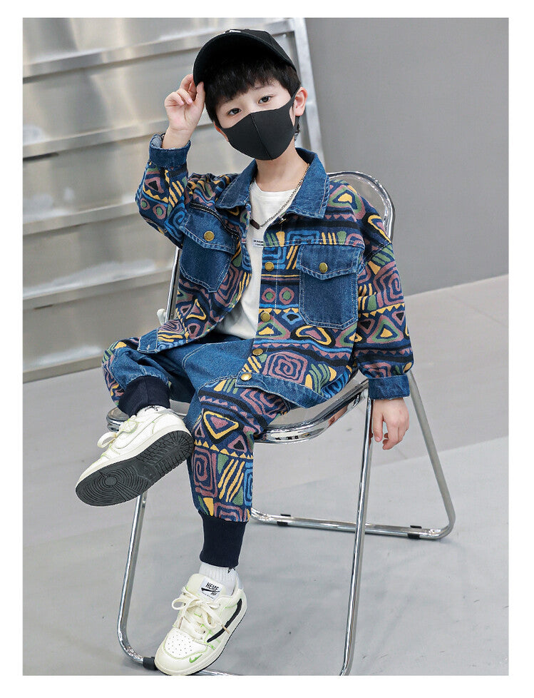 RM1227-22 طقم جينز ولادي مميز بجي قطعتين ( جكيت+ بنطلون)