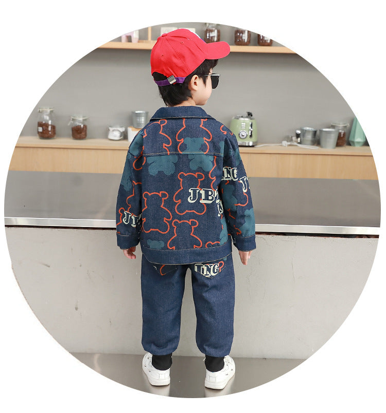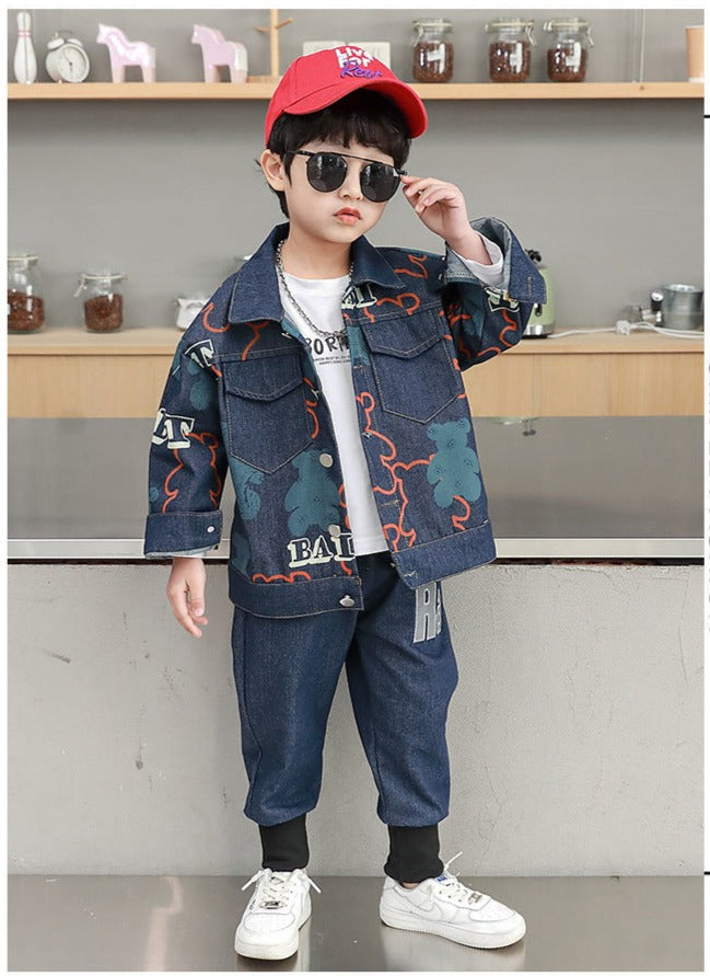 طقم جينز ولادي قطعتين ( جكيت جينز + بنطلون جينز )