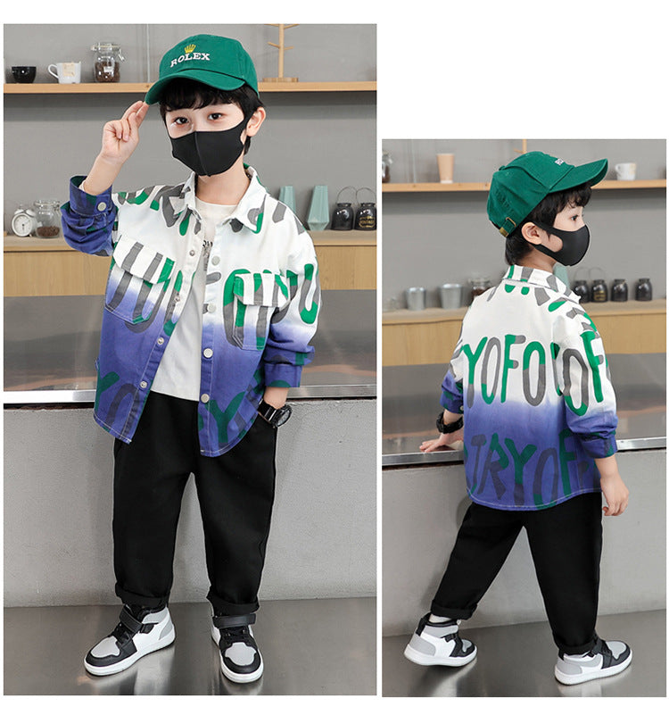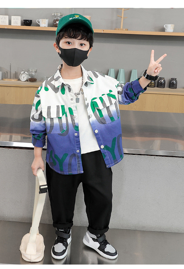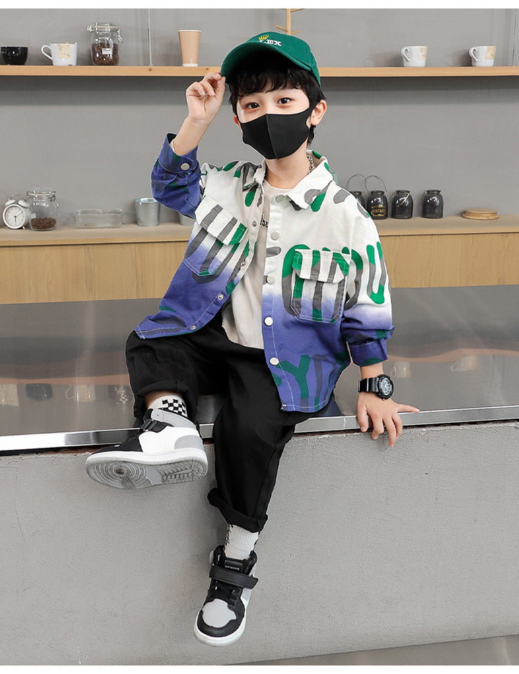 طقم ولادي قطعتين ( جكيت جينز + بنطلون كتان) قماش جودة ممتازة ناعم ومريح للحركة