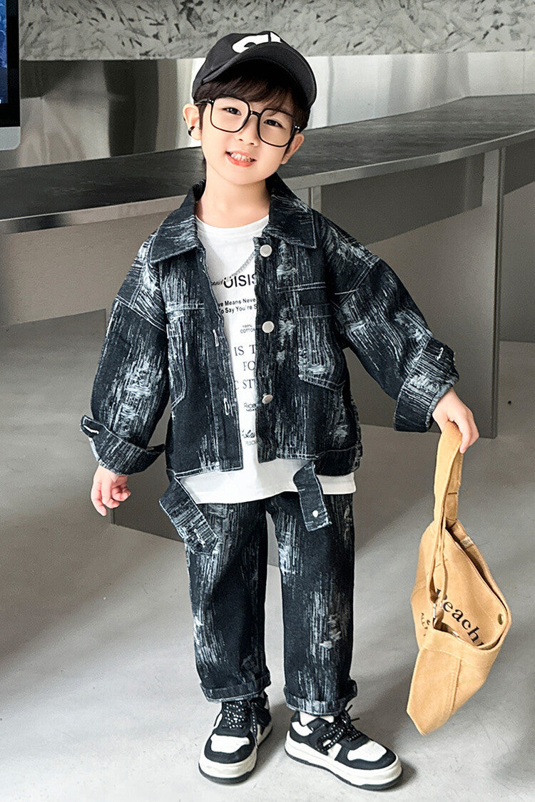 طقم جينز قطعتين ( جكيت + بنطلون ) خريفي تقيل