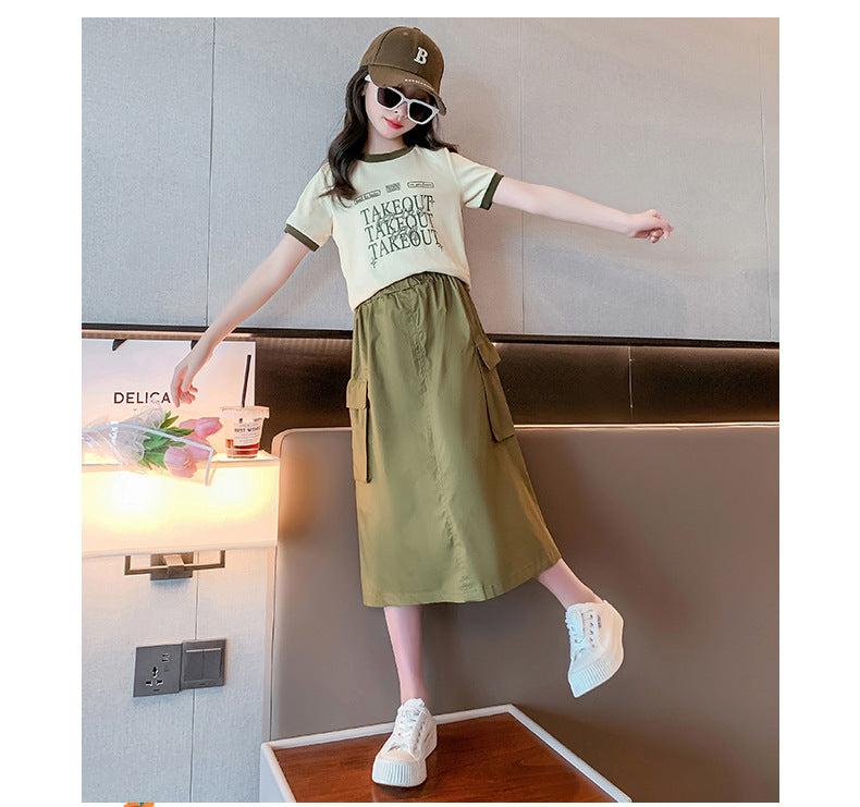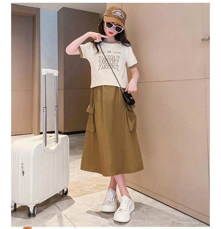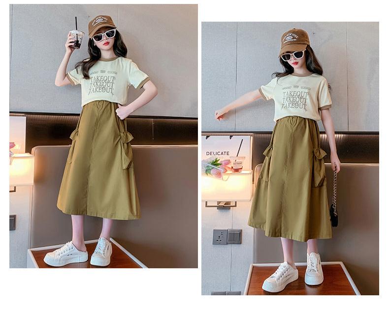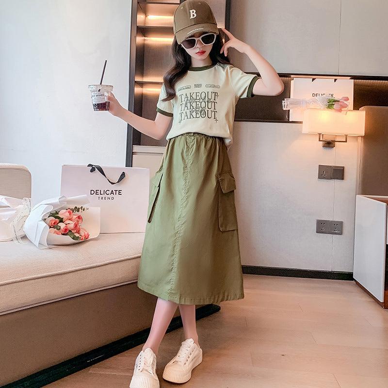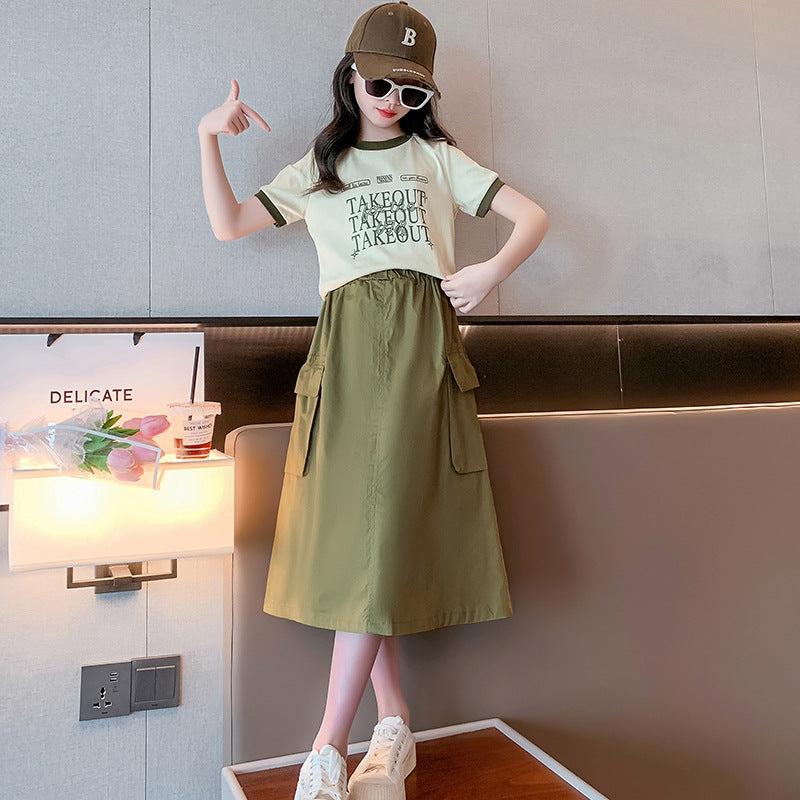 طقم بناتي صيفي قطعتين ( بلوزة + تنورة )