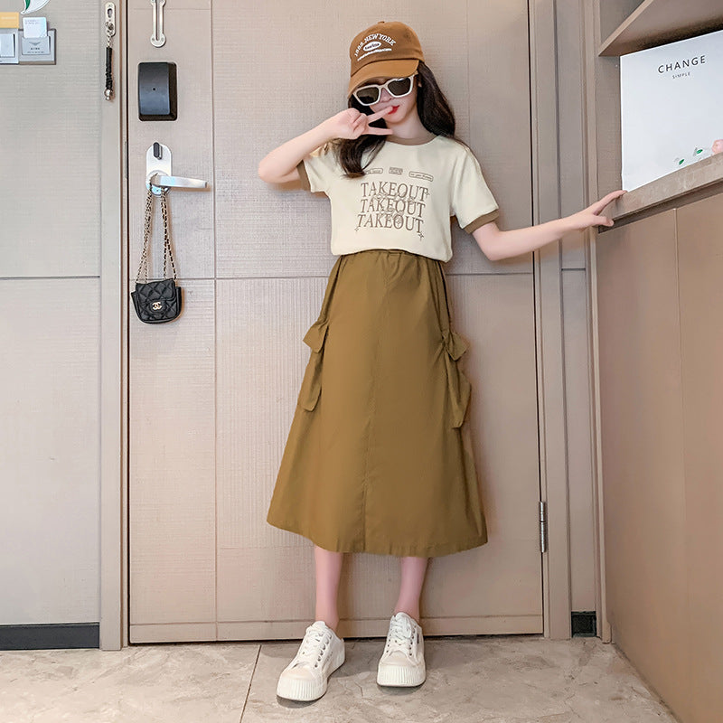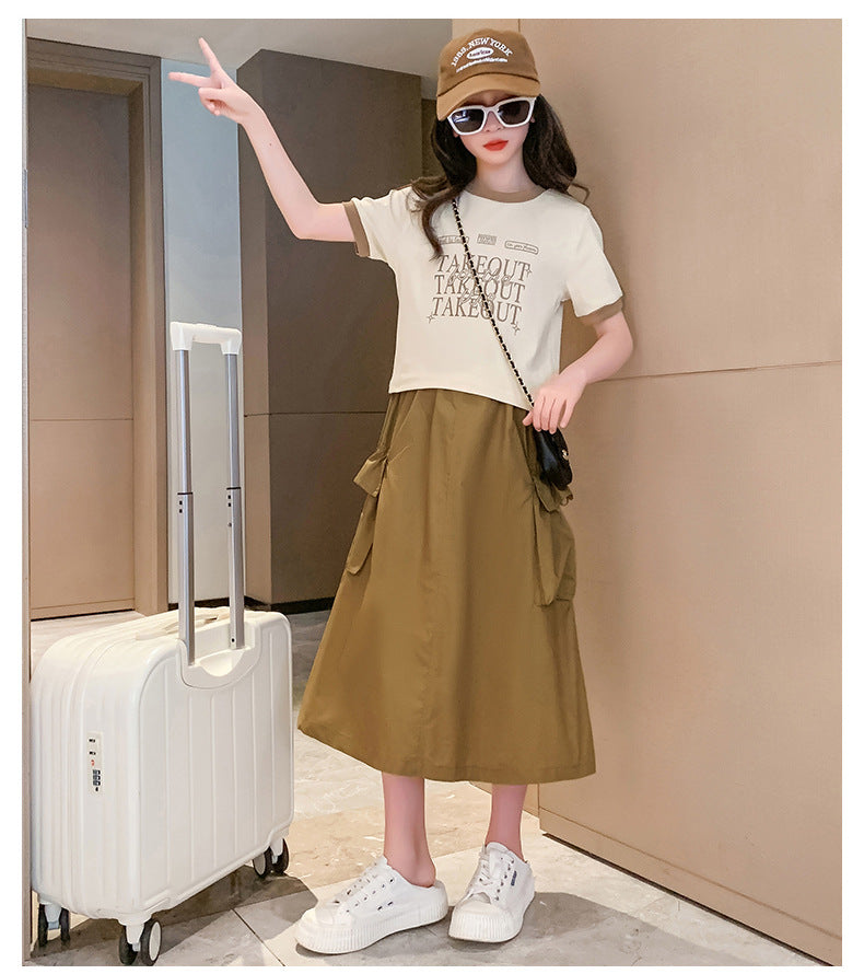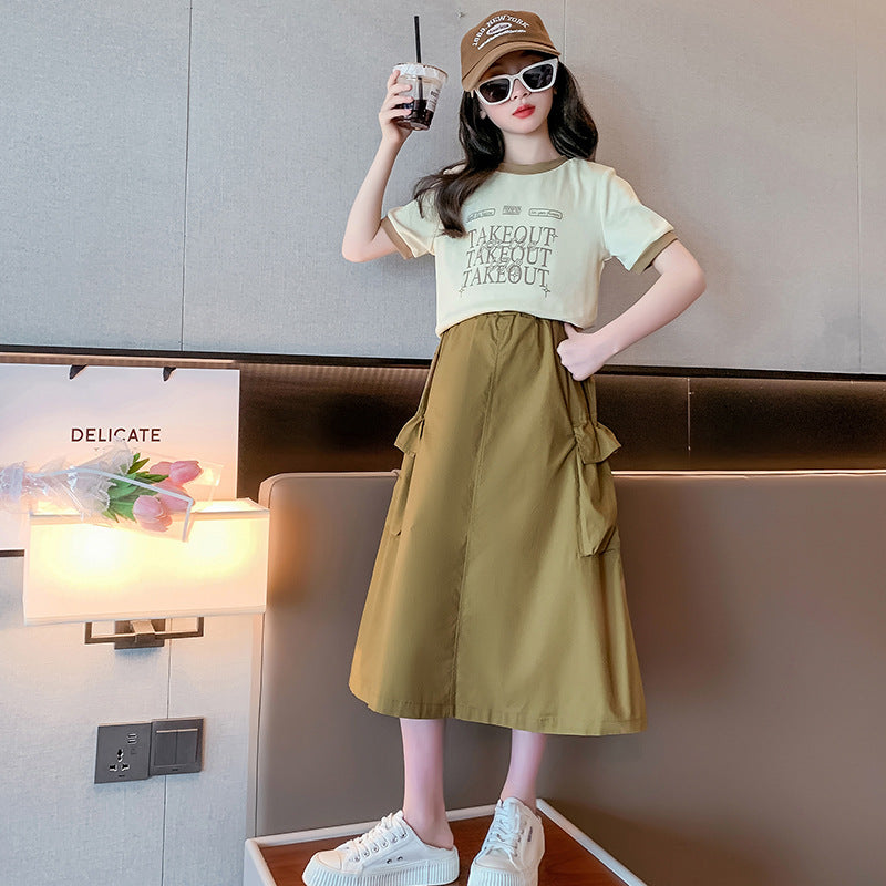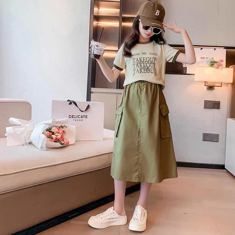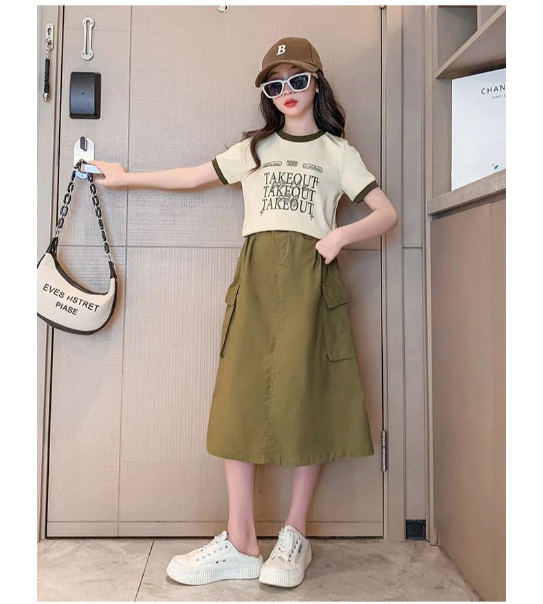طقم بناتي صيفي قطعتين ( بلوزة + تنورة )