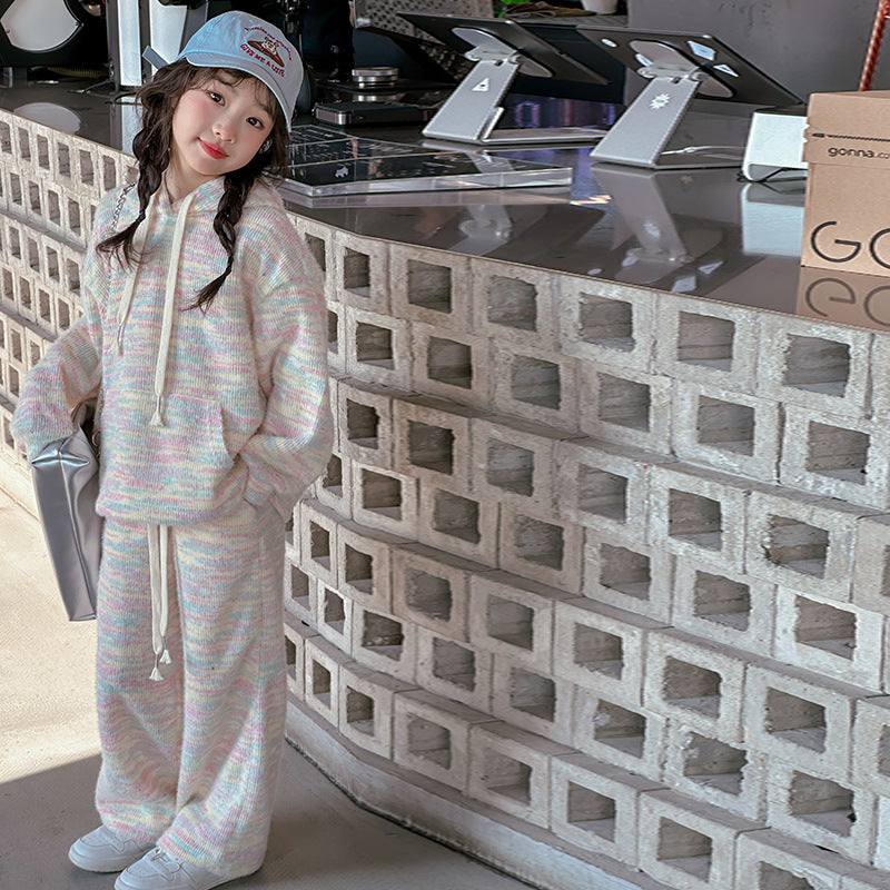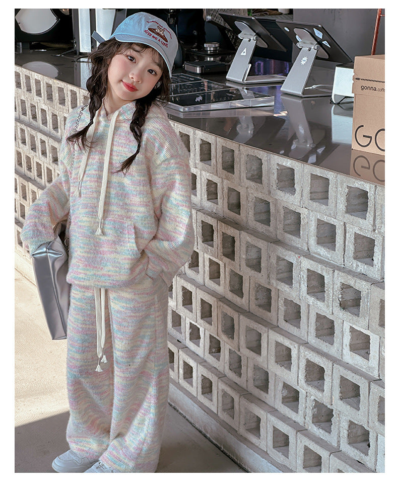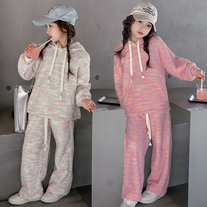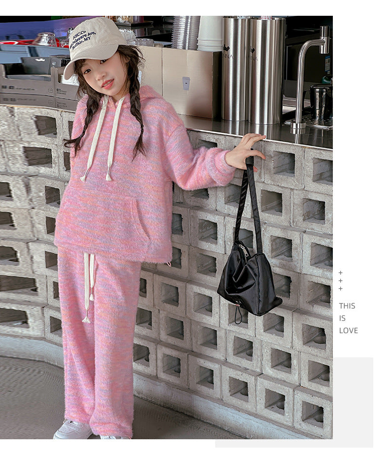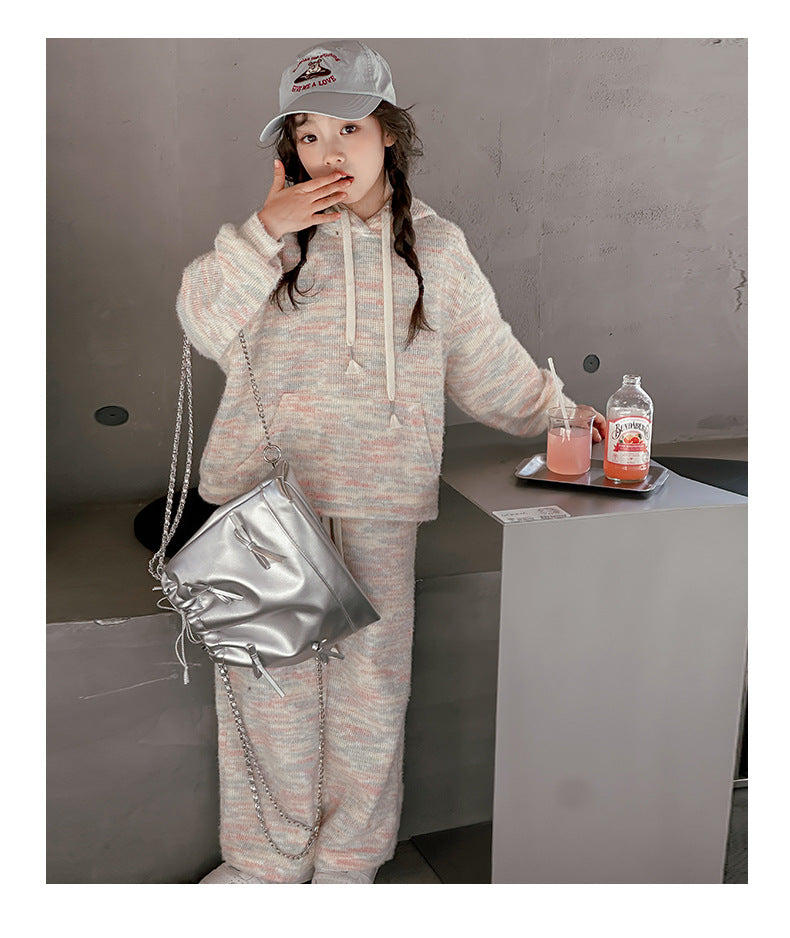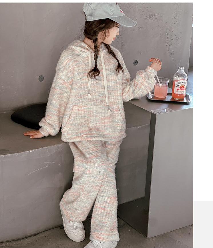 RM150424-2 طقم صوف خريفي شتوي بناتي قطعتين ( بلوزة + بنطلون)
