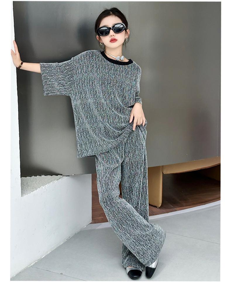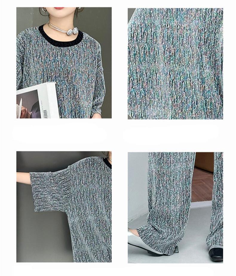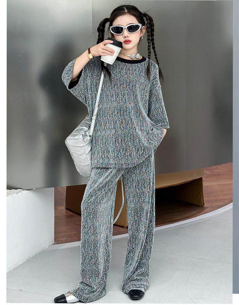 RM150424-32 طقم بناتي بلمع مزين بالبرق قطعتين ( بلوزة + بنطلون)