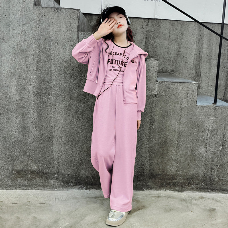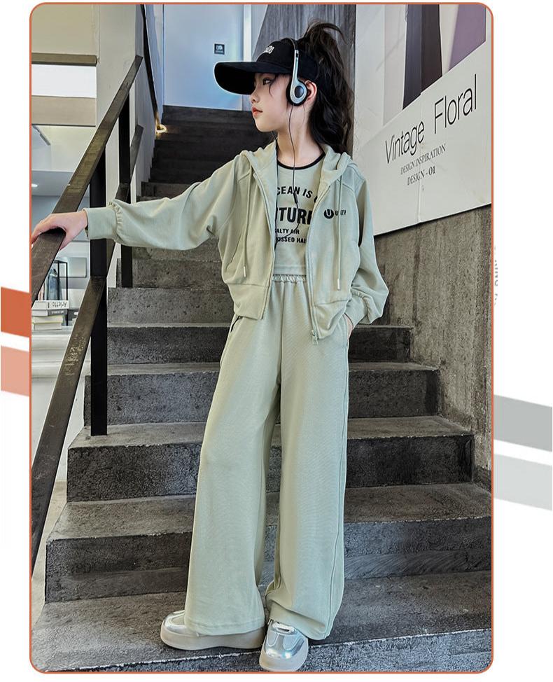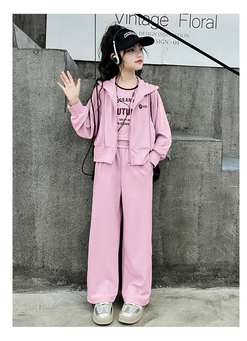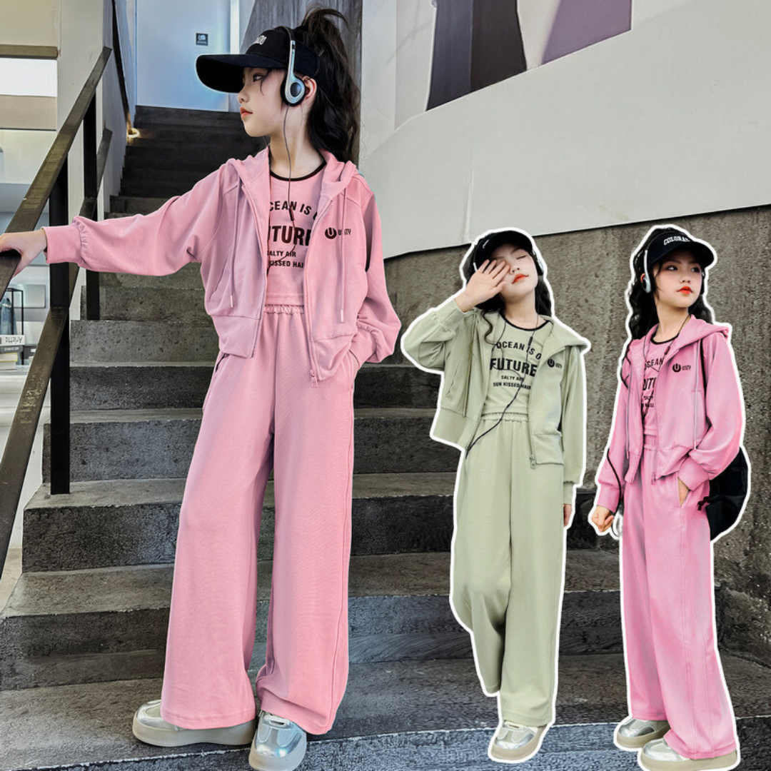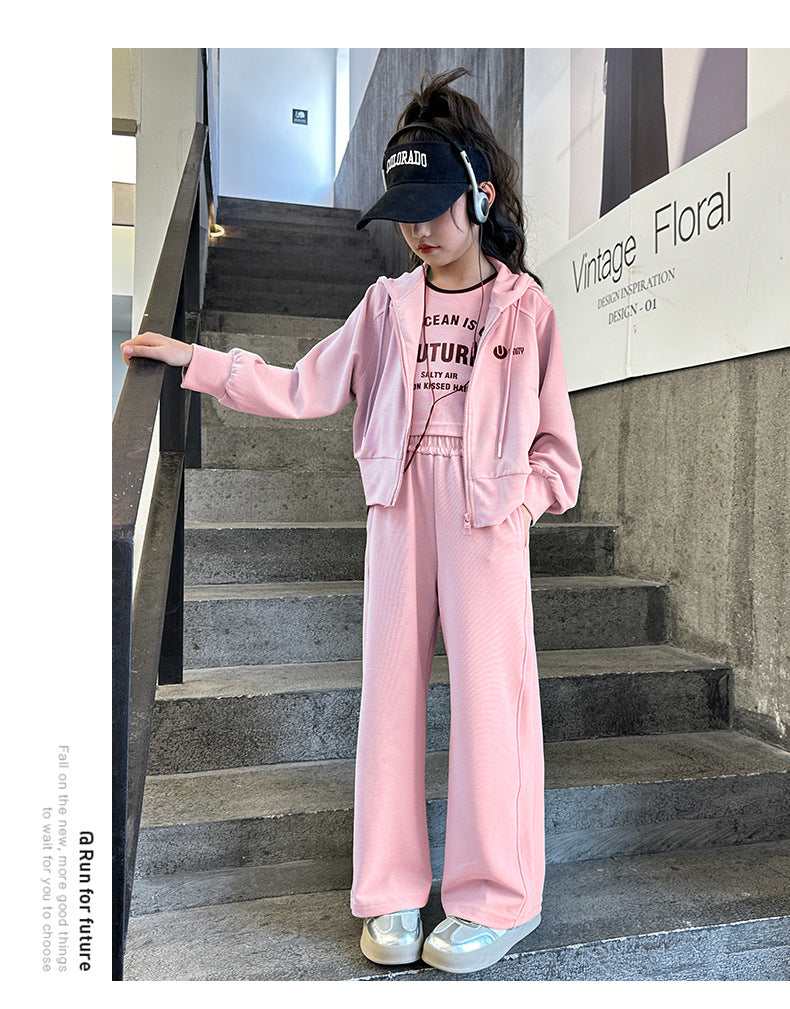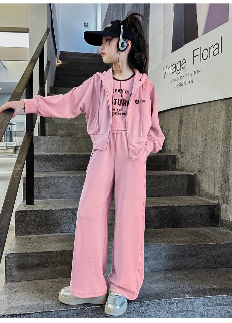 RM150424-3 طقم بناتي سبورت 3 قطع ( بلوزة + جكيت + بنطلون)