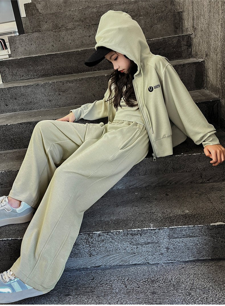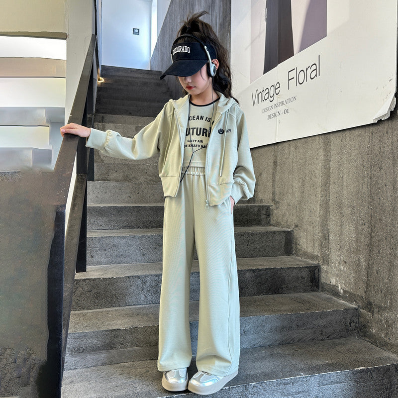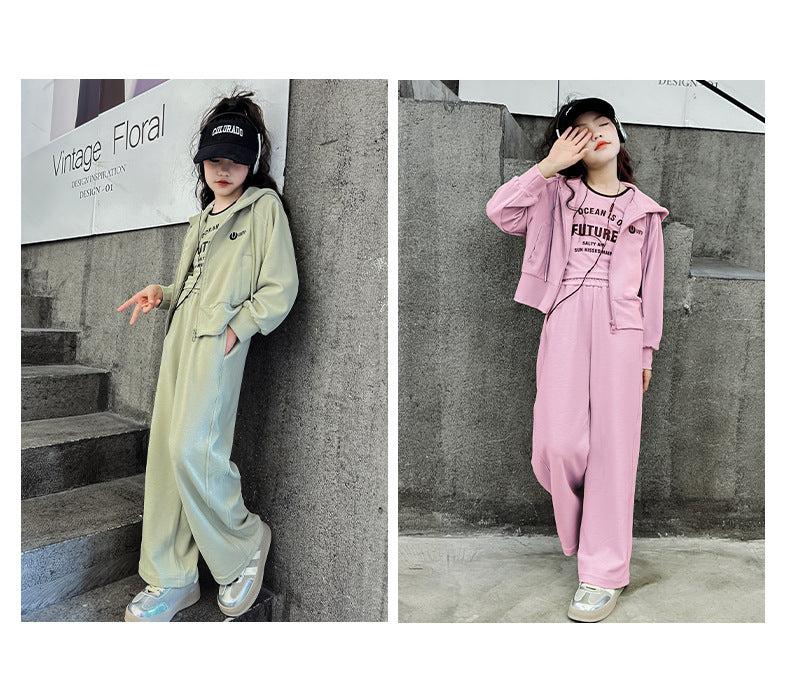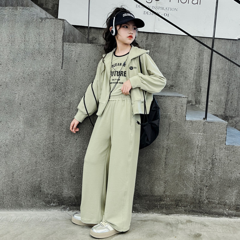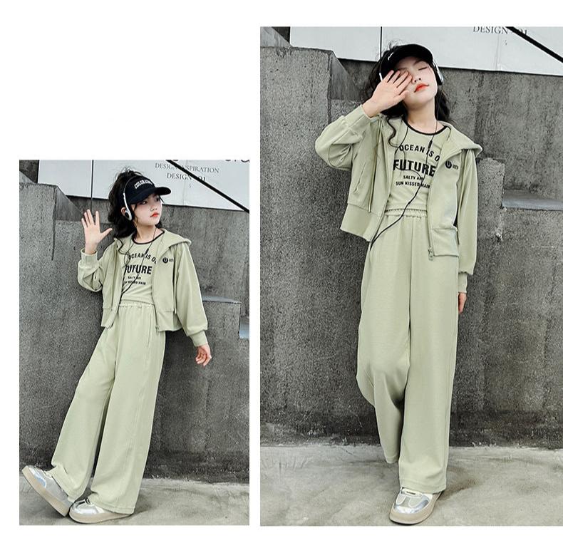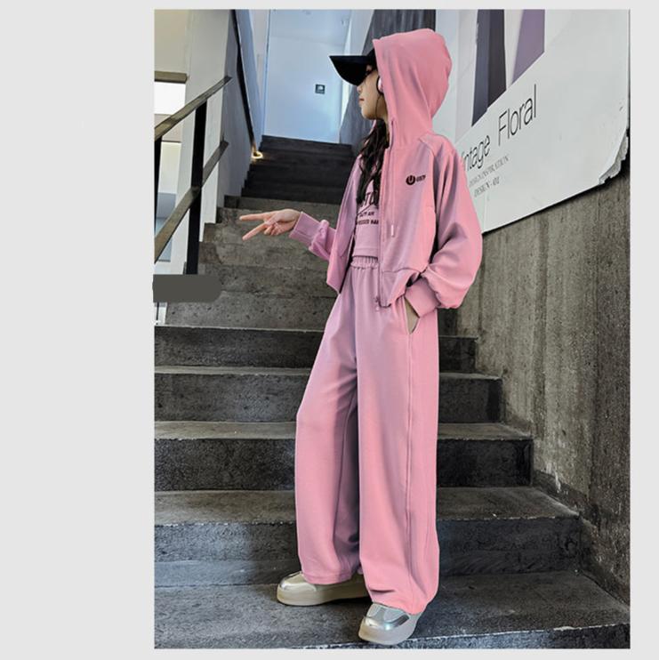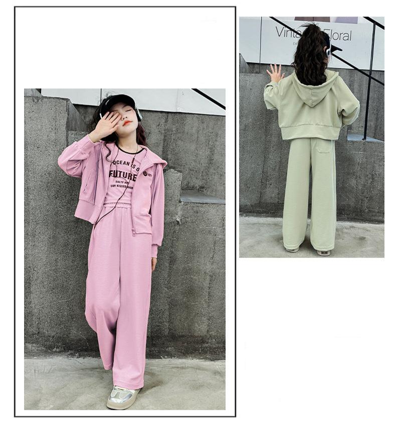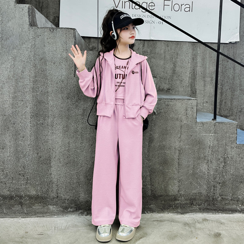 RM150424-3 طقم بناتي سبورت 3 قطع ( بلوزة + جكيت + بنطلون)