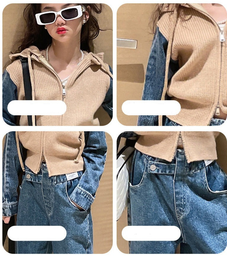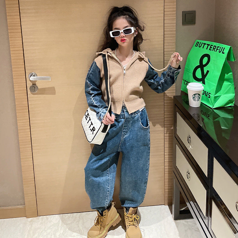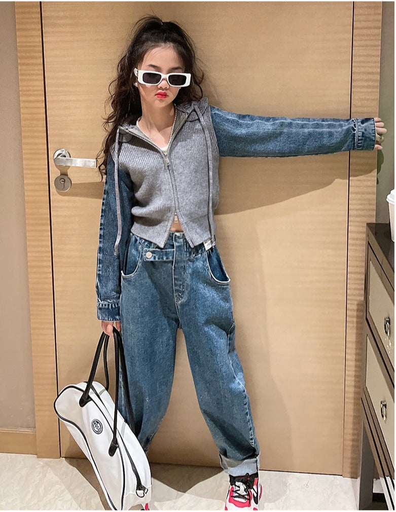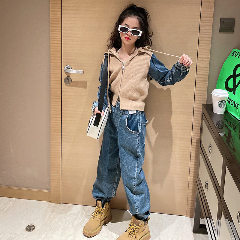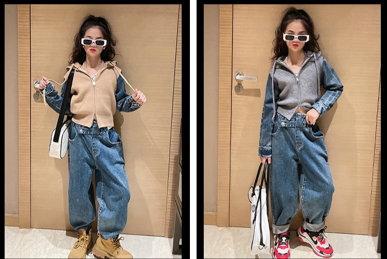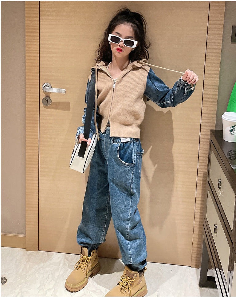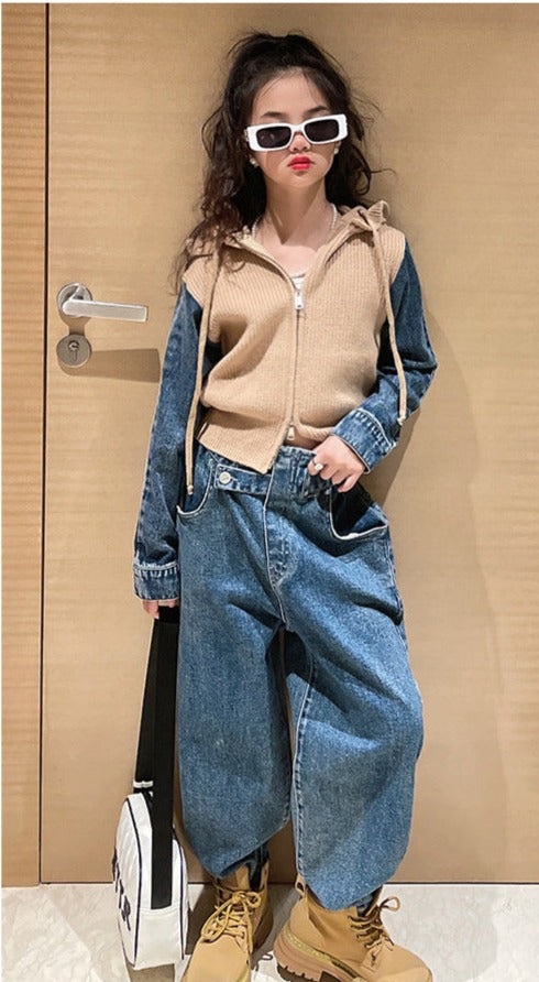 RM171223-26 طقم بناتي قطعتين خريفي شتوي ( جكيت + بنطلون جينز )