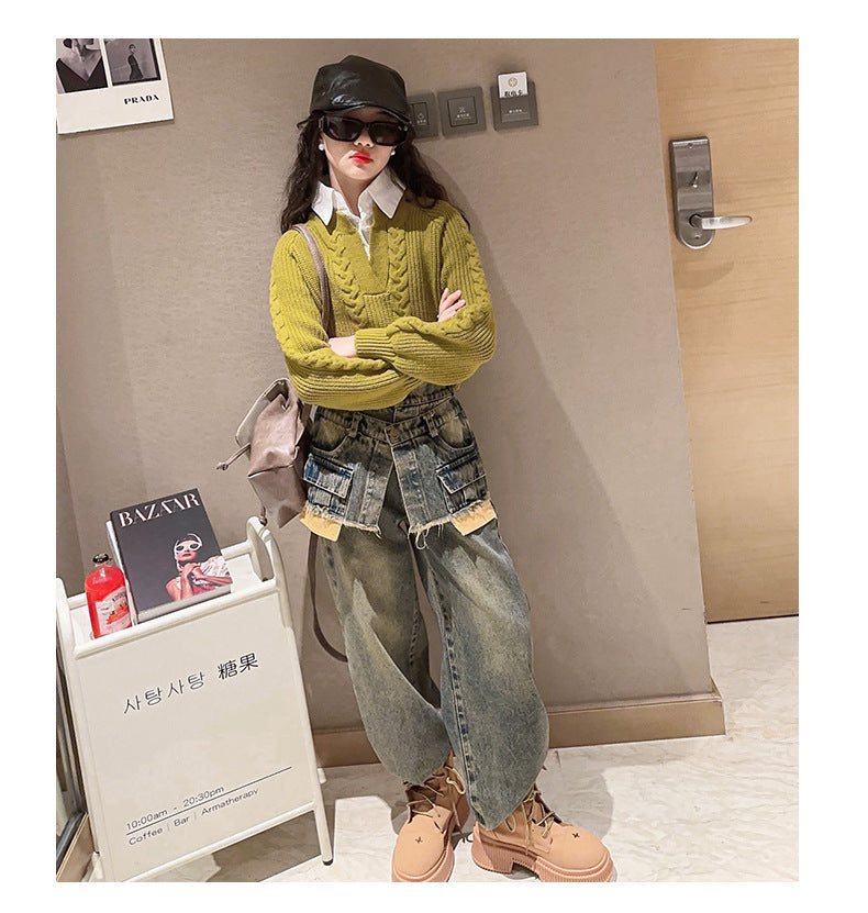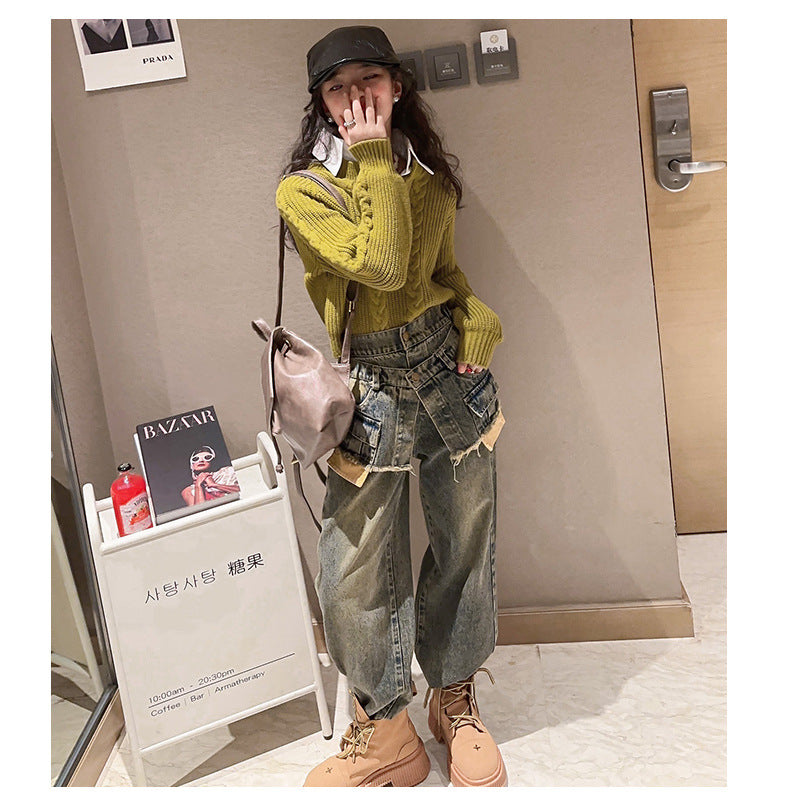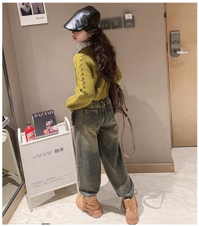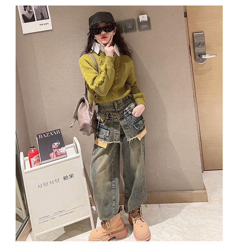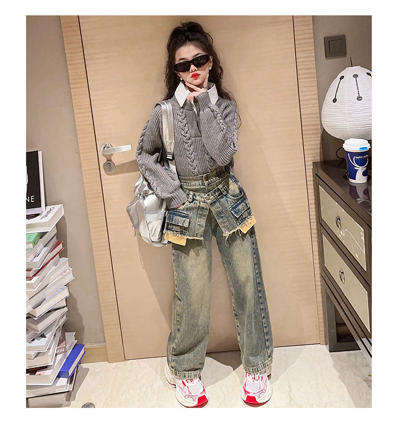 RM171223-28 طقم بناتي خريفي/ شتوي قطعتين ( بلوزة صوف + بنطلون جينز )