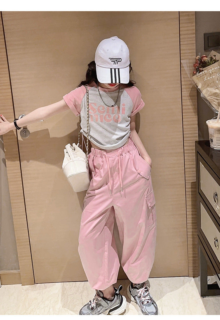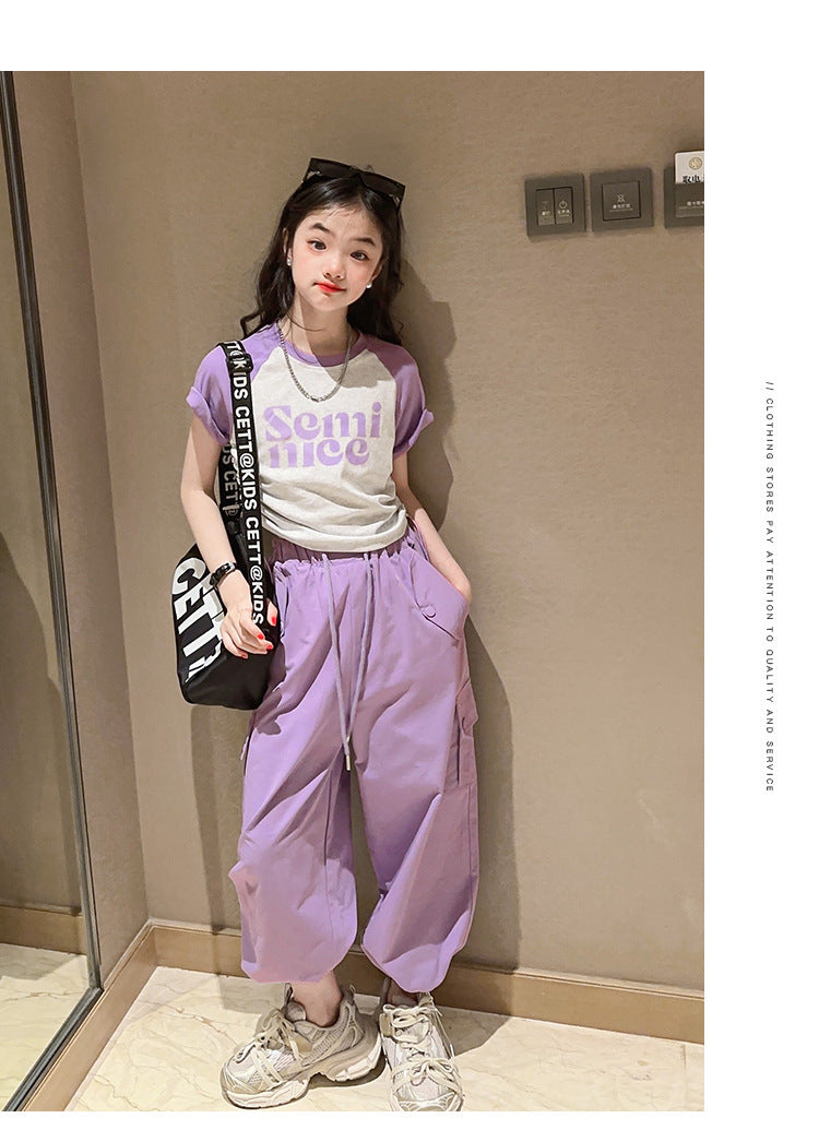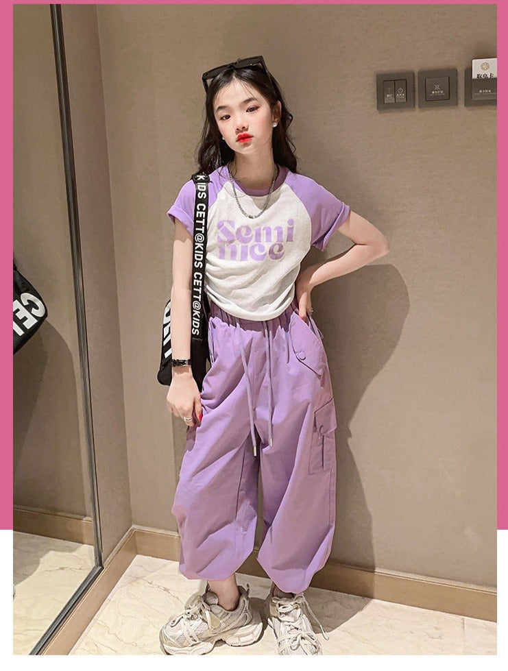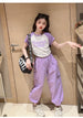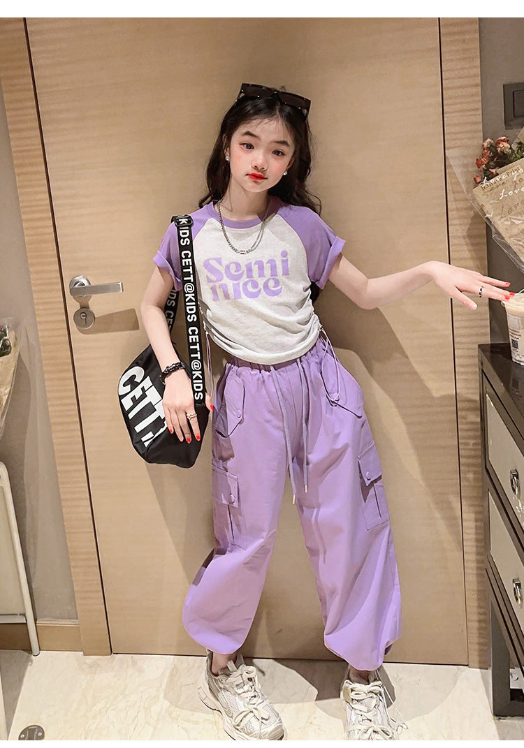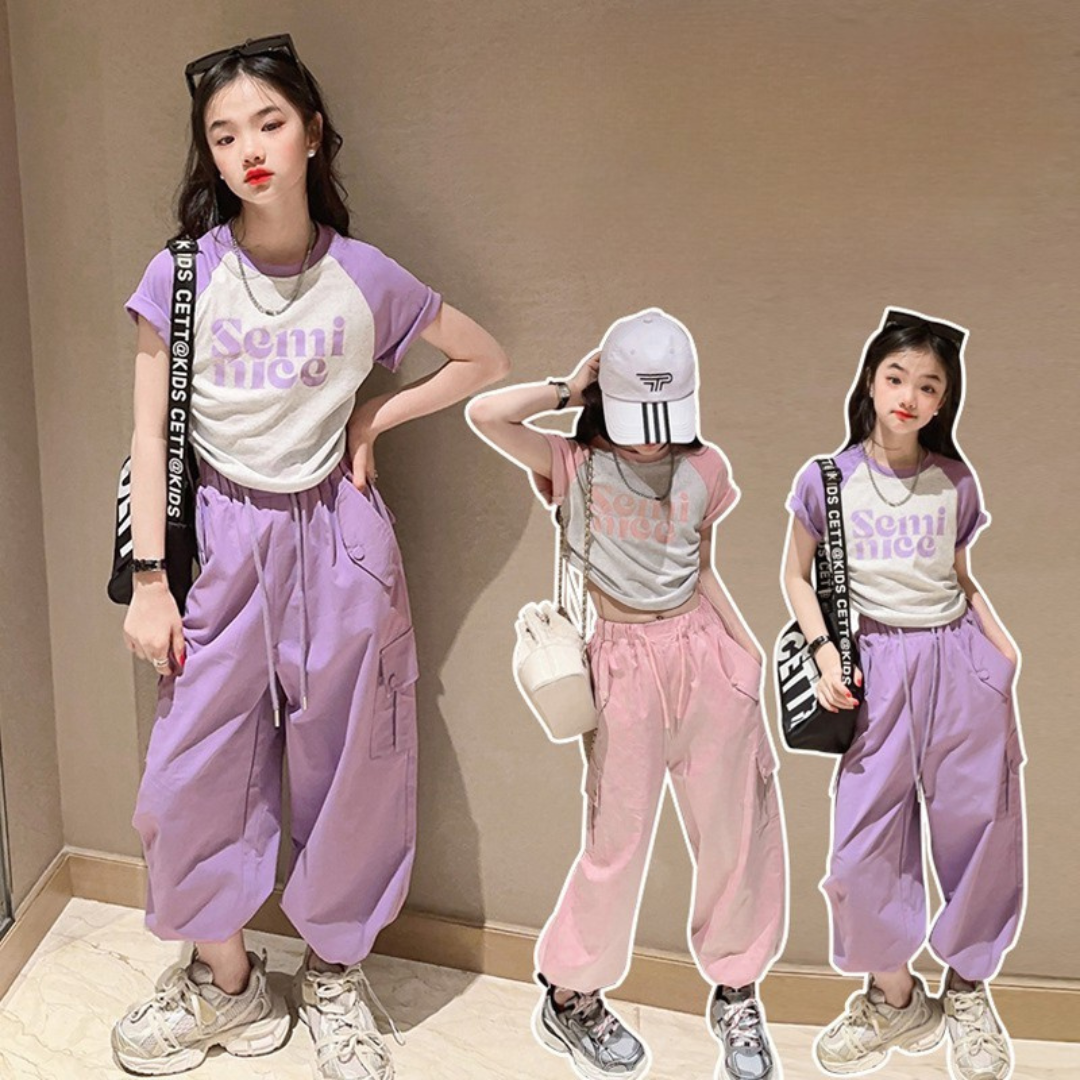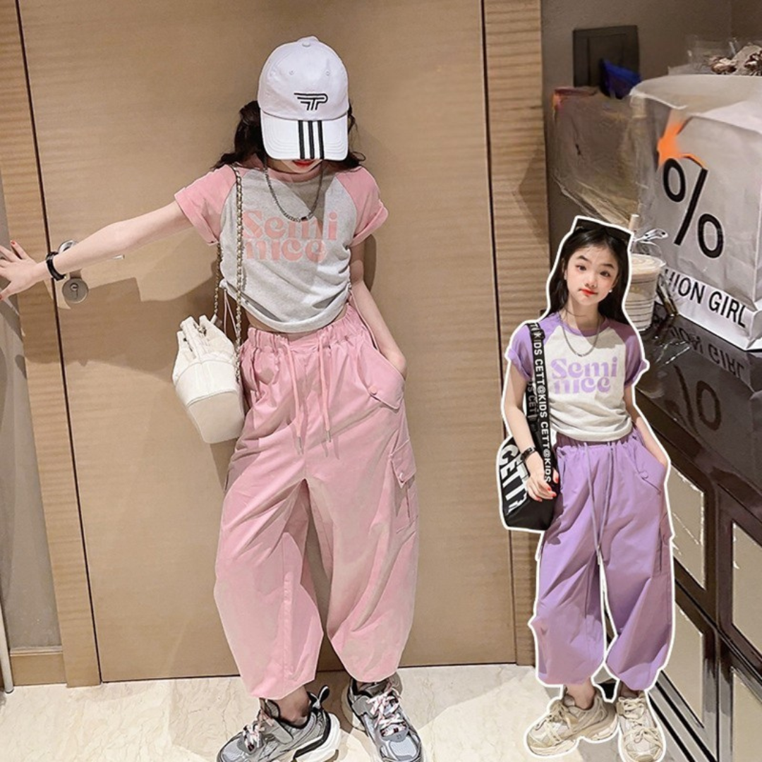 طقم بناتي قطعتين ( بلوز قطنية + بنطلون كتان)