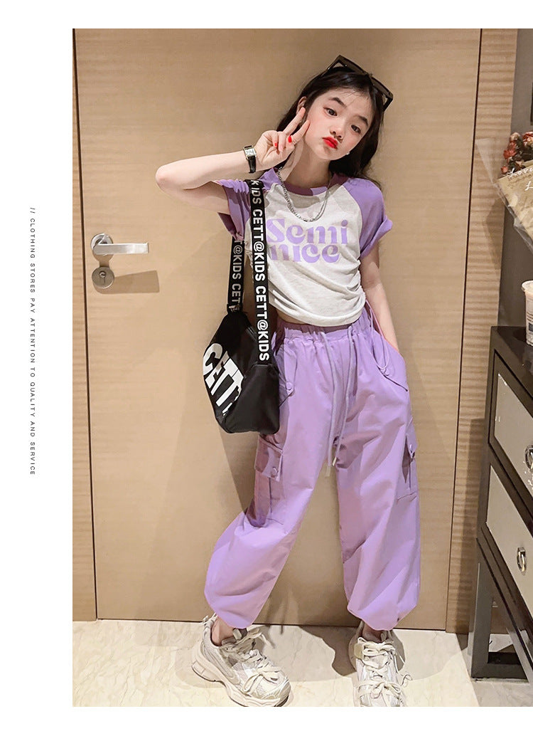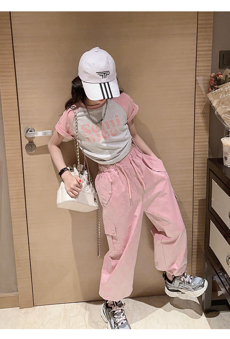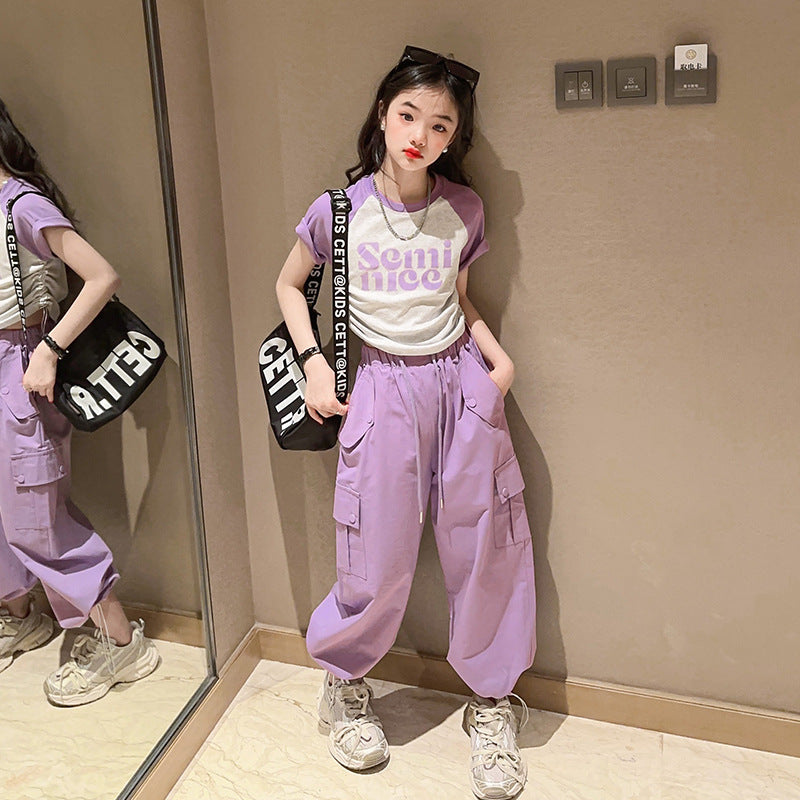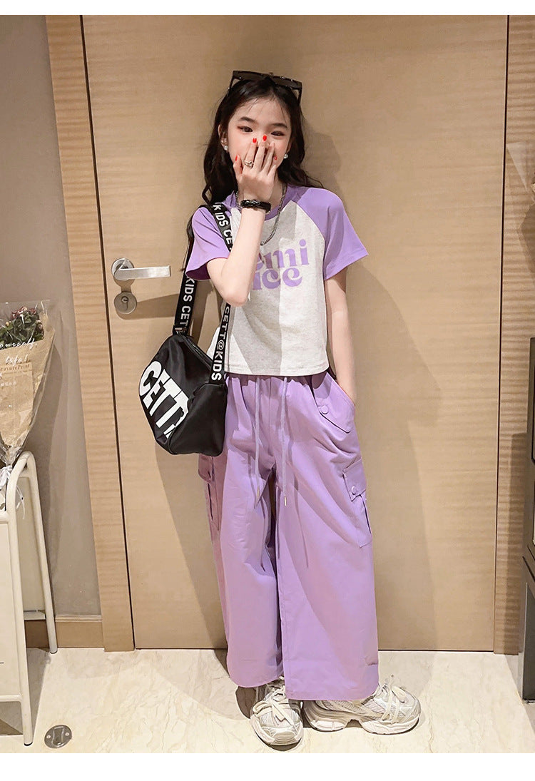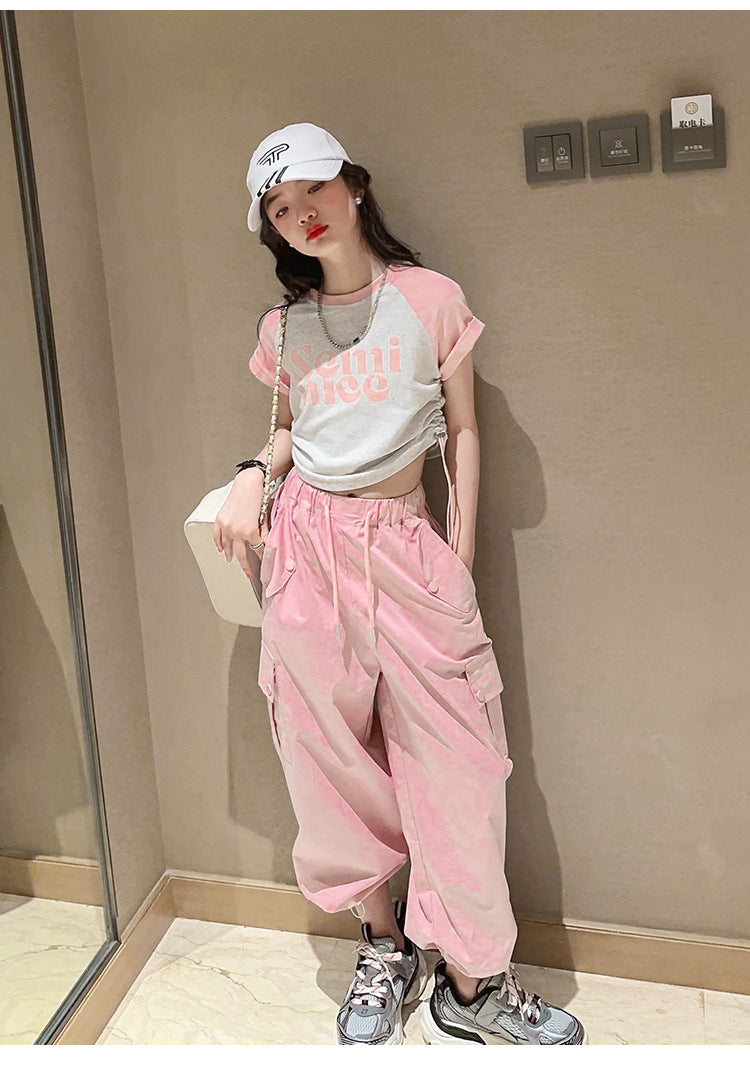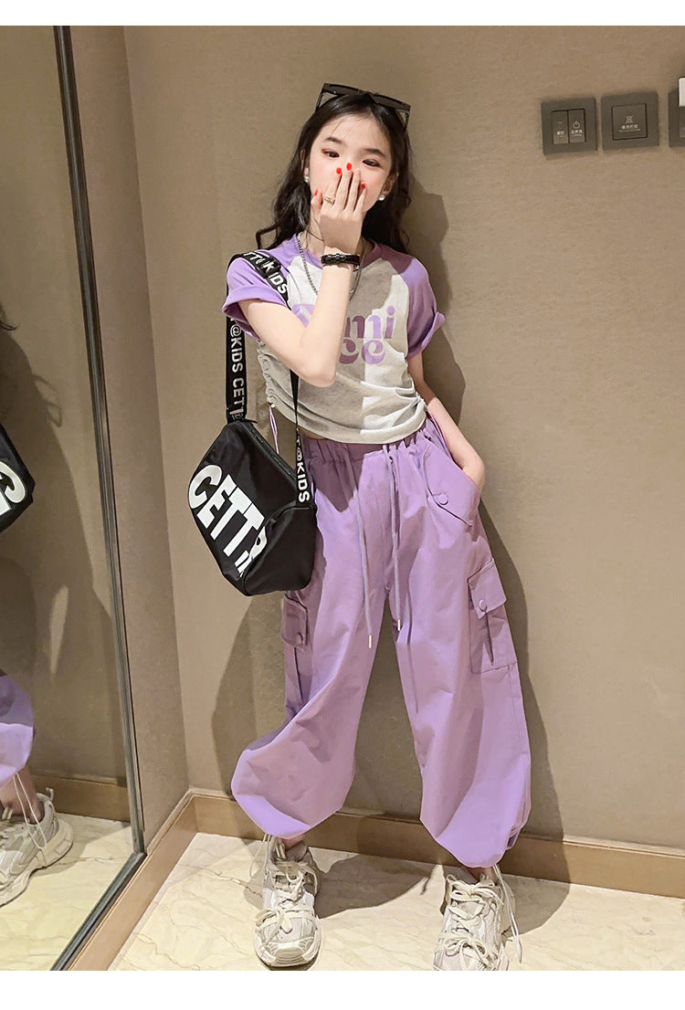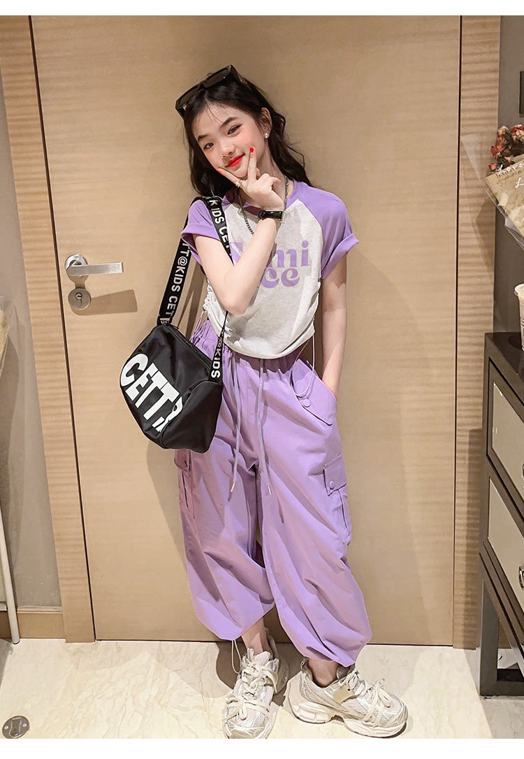 طقم بناتي قطعتين ( بلوز قطنية + بنطلون كتان)