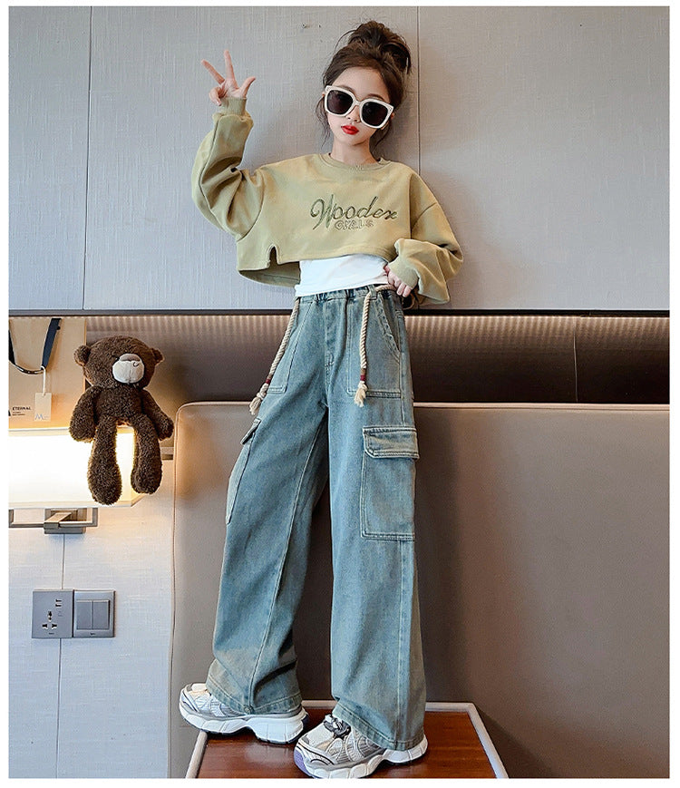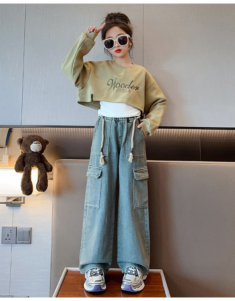 RM171223-32 طقم بناتي 3 قطع ( بلوزة + بدي + بنطلون جينز )