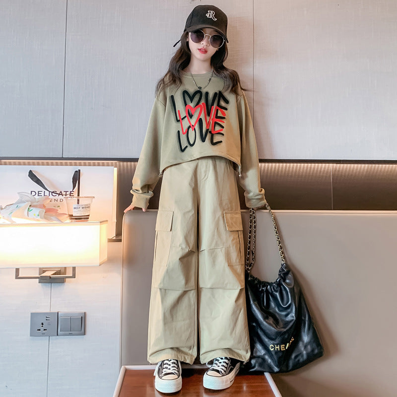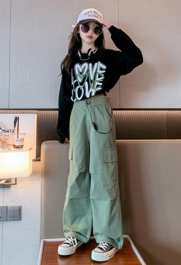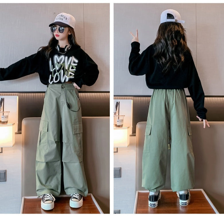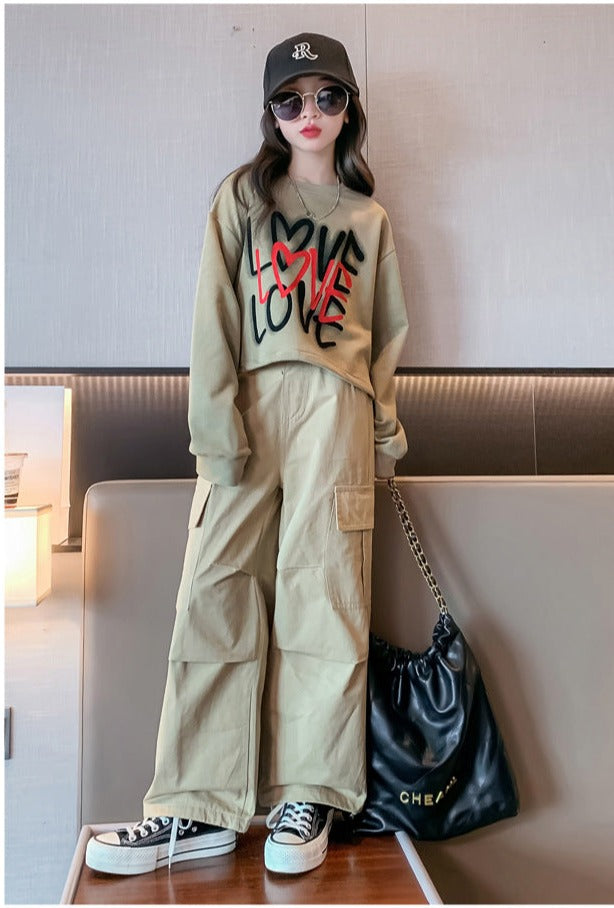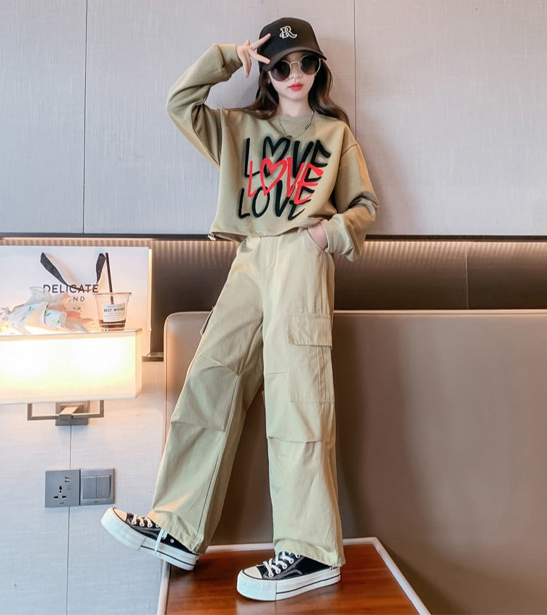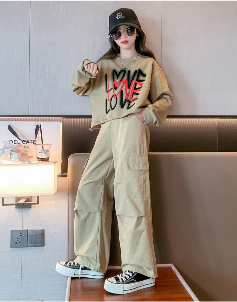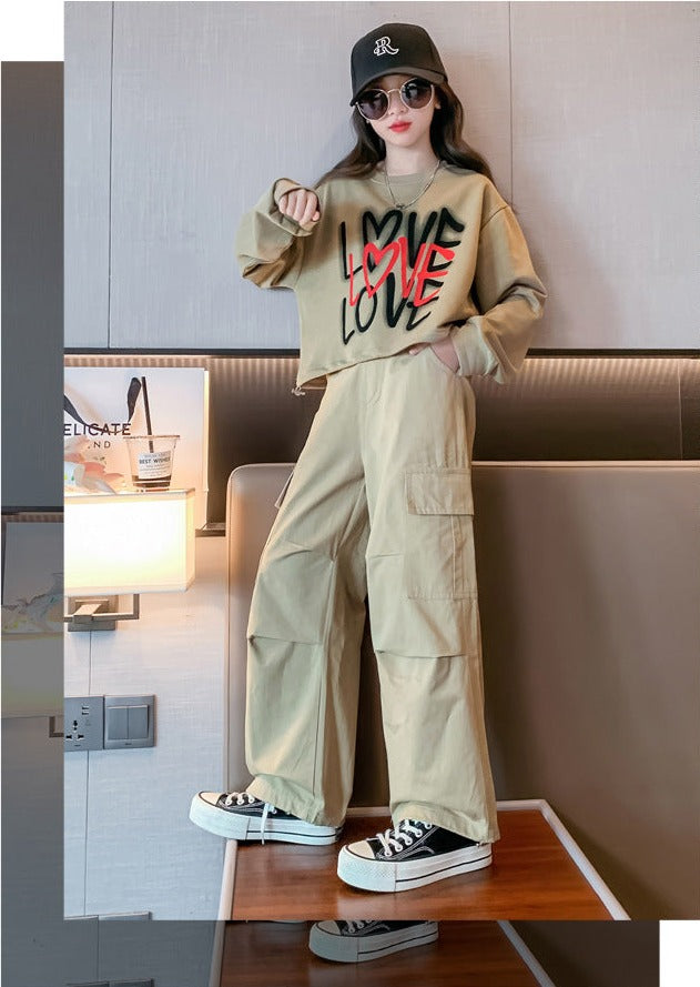 طقم بناتي قطعتين ( بلوزة قطن + بنطلون كتان ناعم)