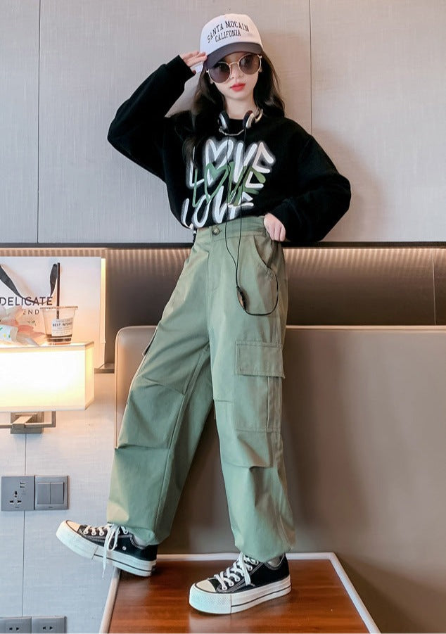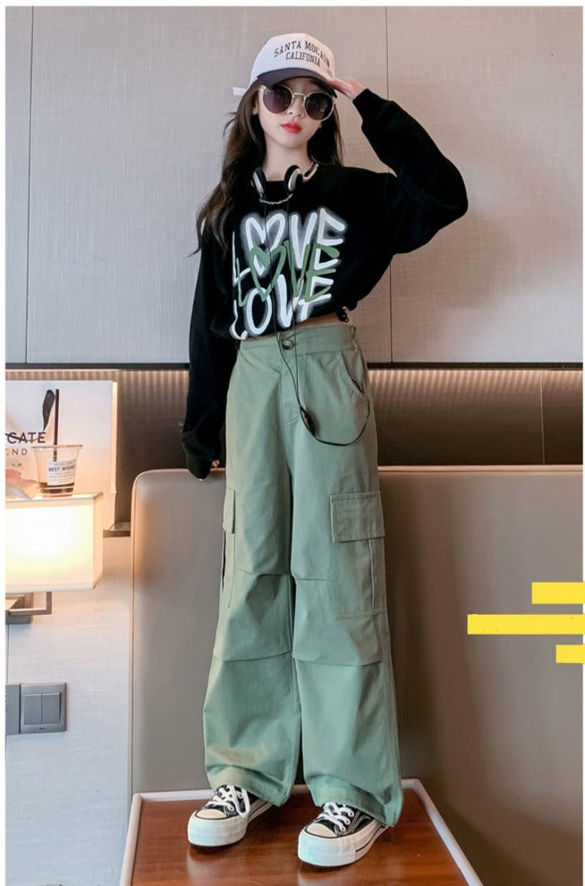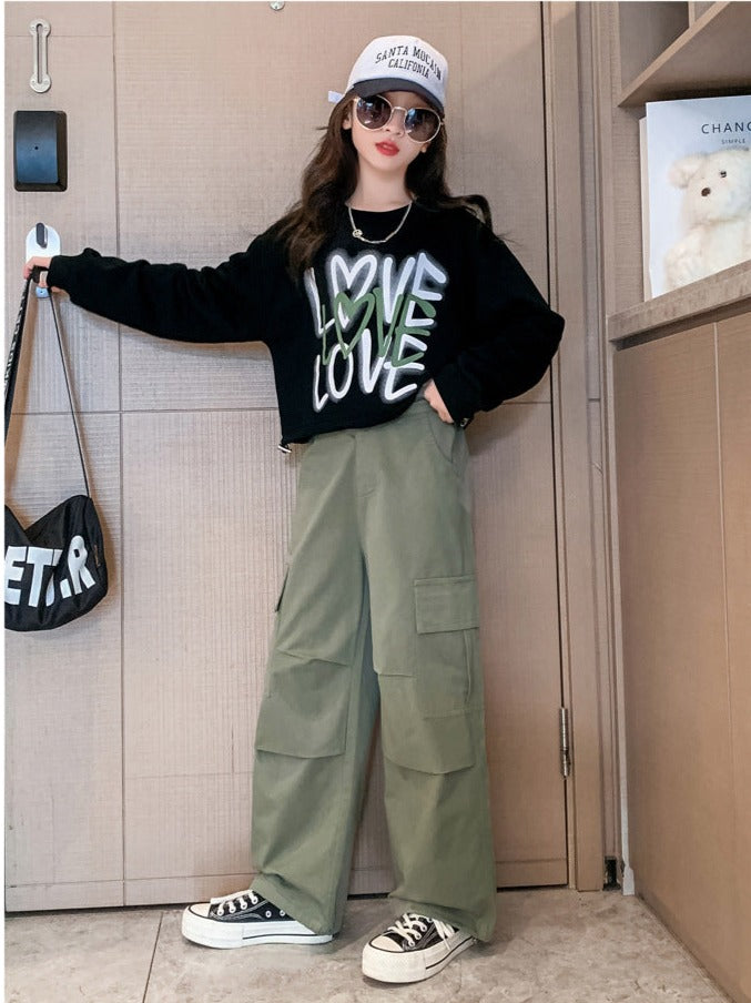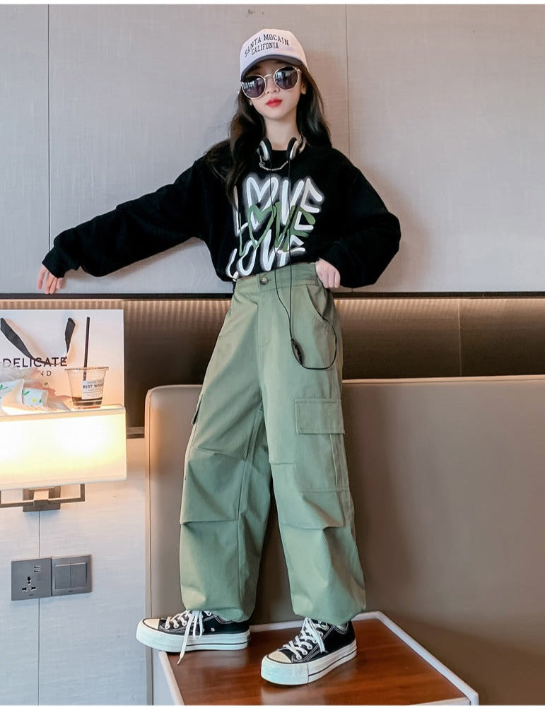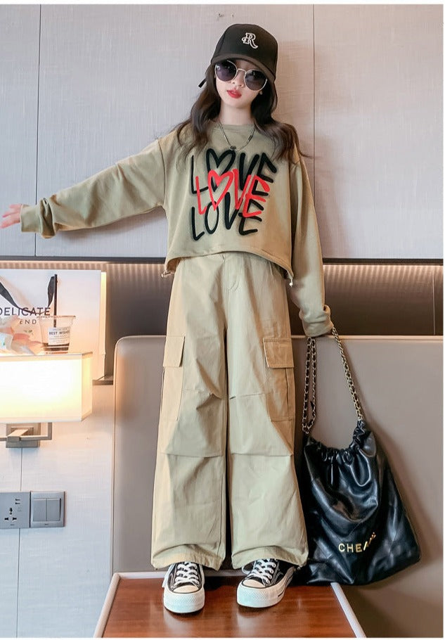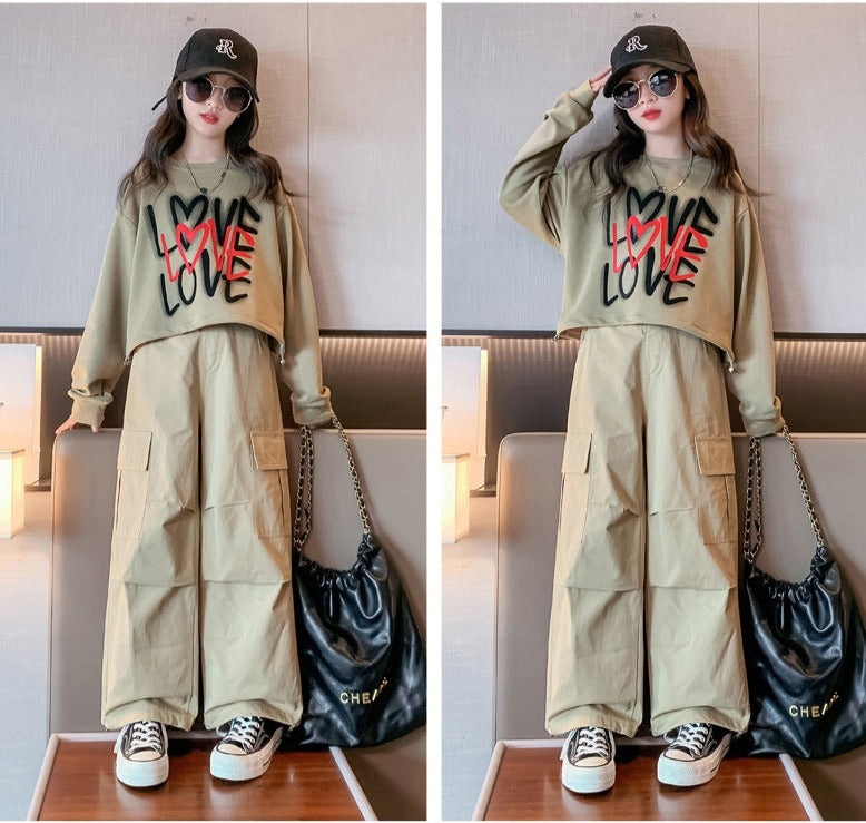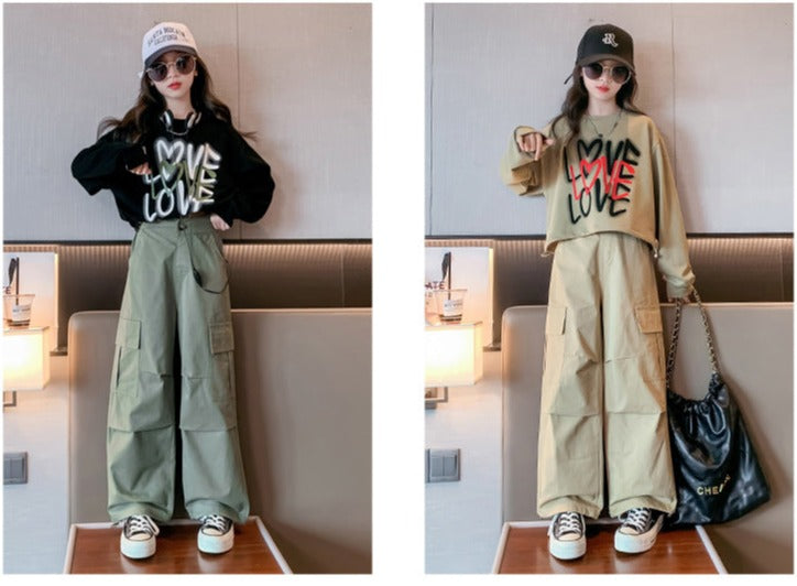 RM171223-36 طقم بناتي قطعتين ( بلوزة قطن + بنطلون كتان ناعم)