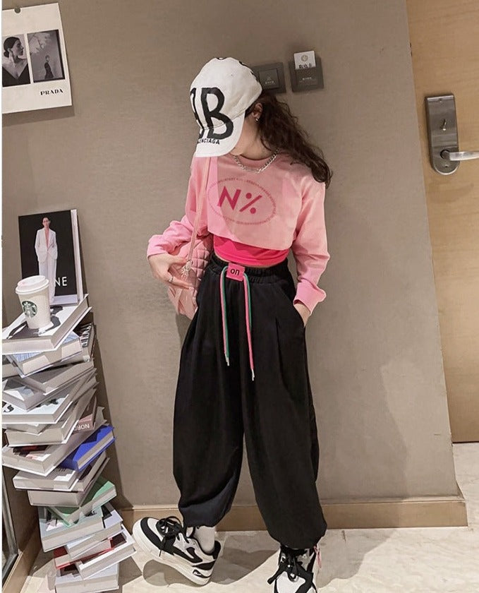 RM171223-5 طقم قطني بناتي 3 قطع ( بلوزة قصيرة + بدي ملون + بنطلون)