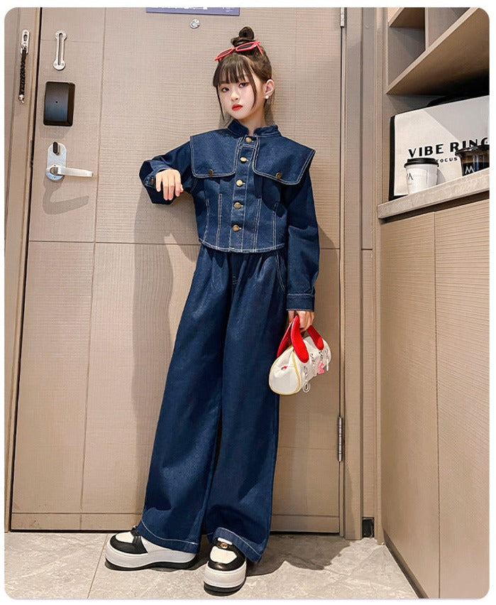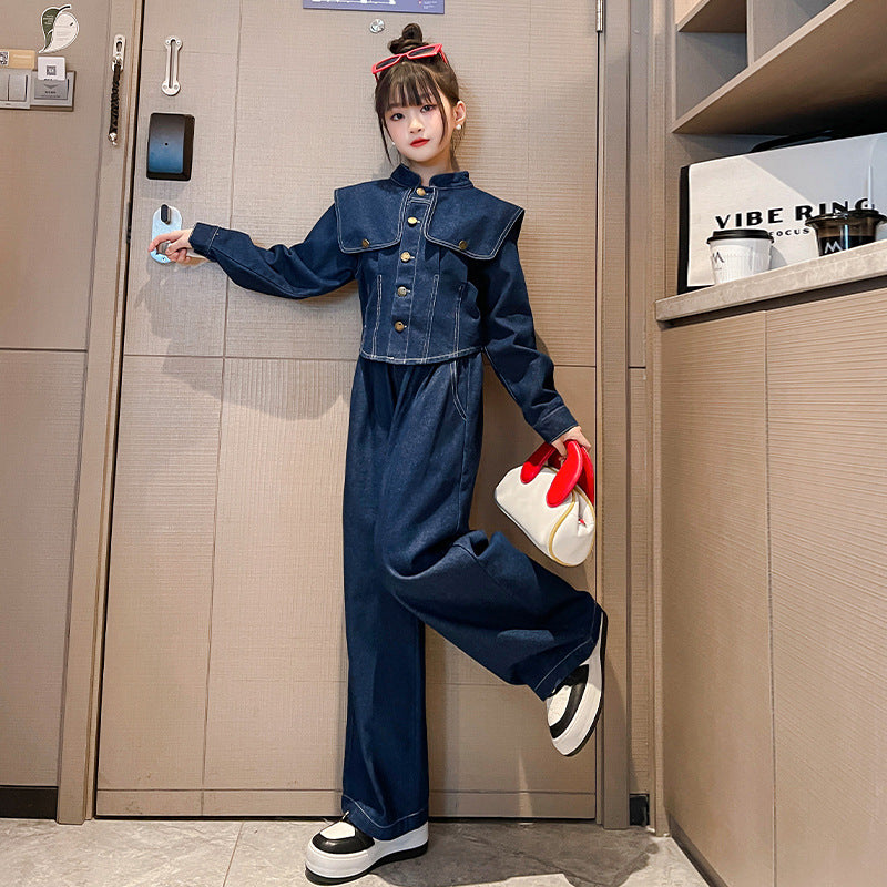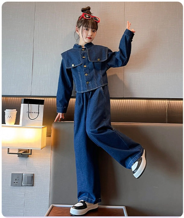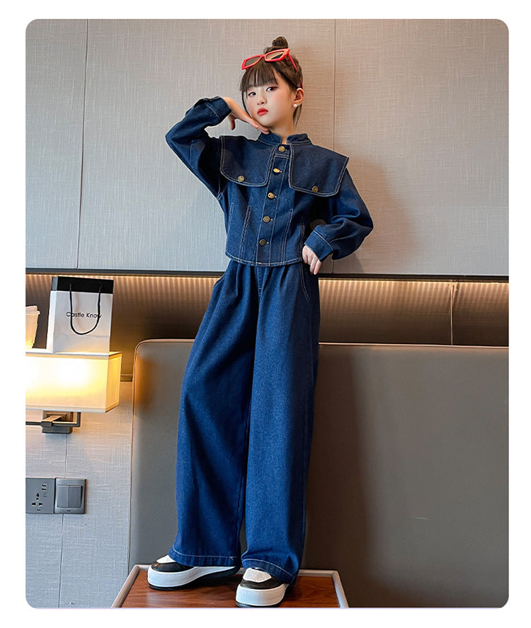 RM171223-6 طقم جينز بناتي قطعتين ( جكيت + بنطلون )