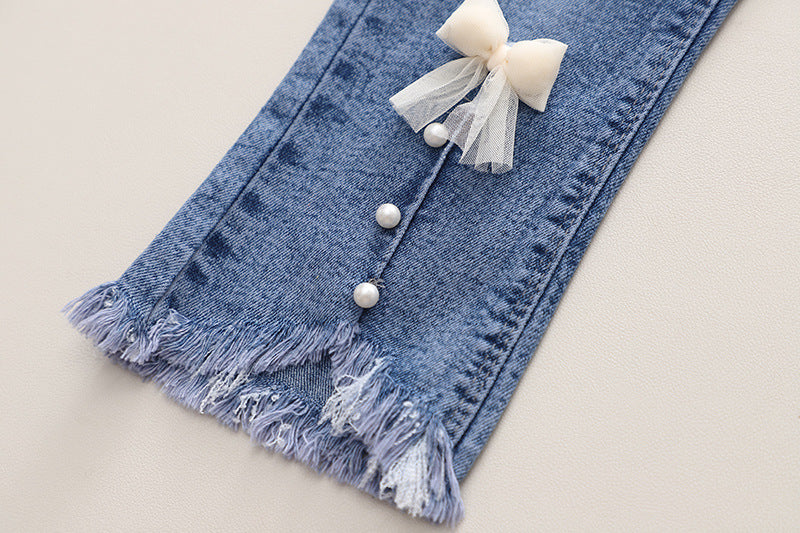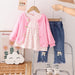 RM231223-10 طقم بناتي 3 قطع ( بلوزة + جكيت + بنطلون جينز)