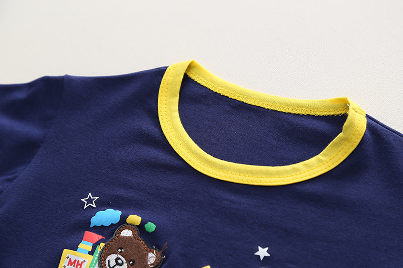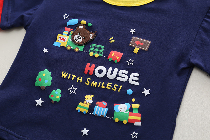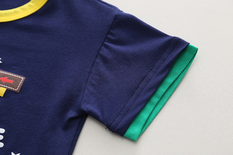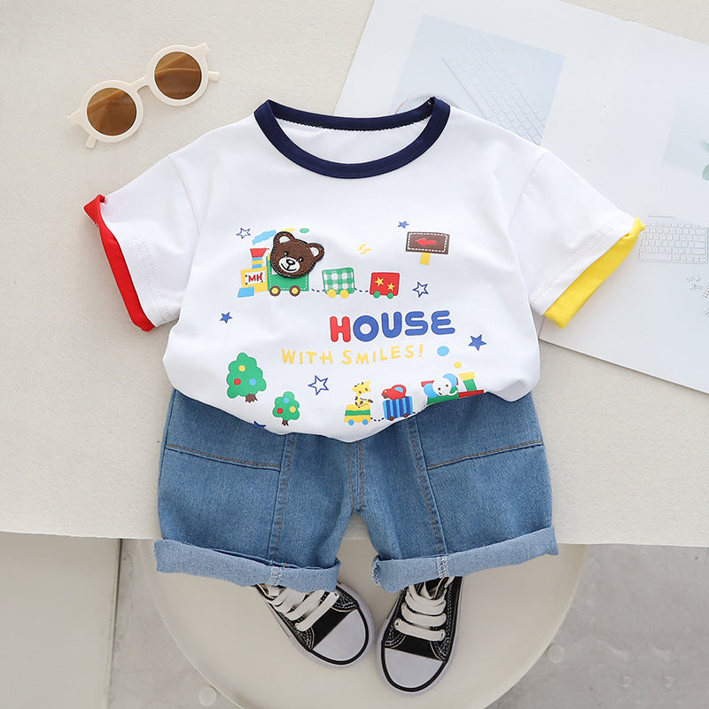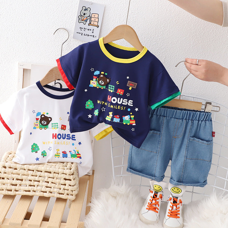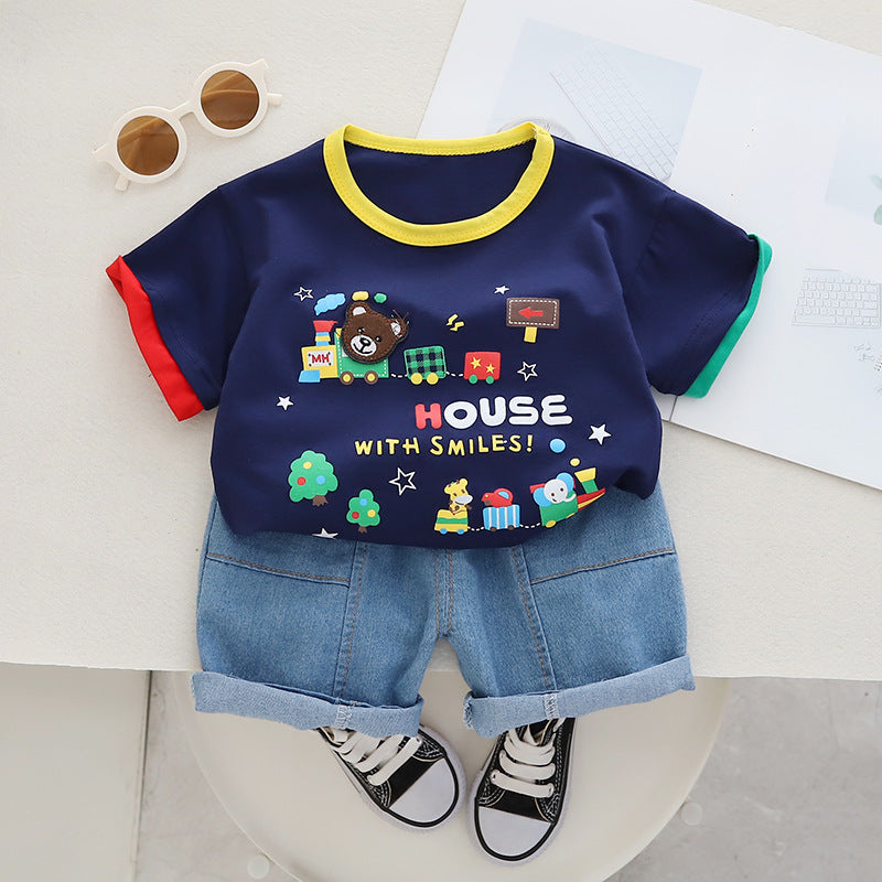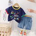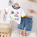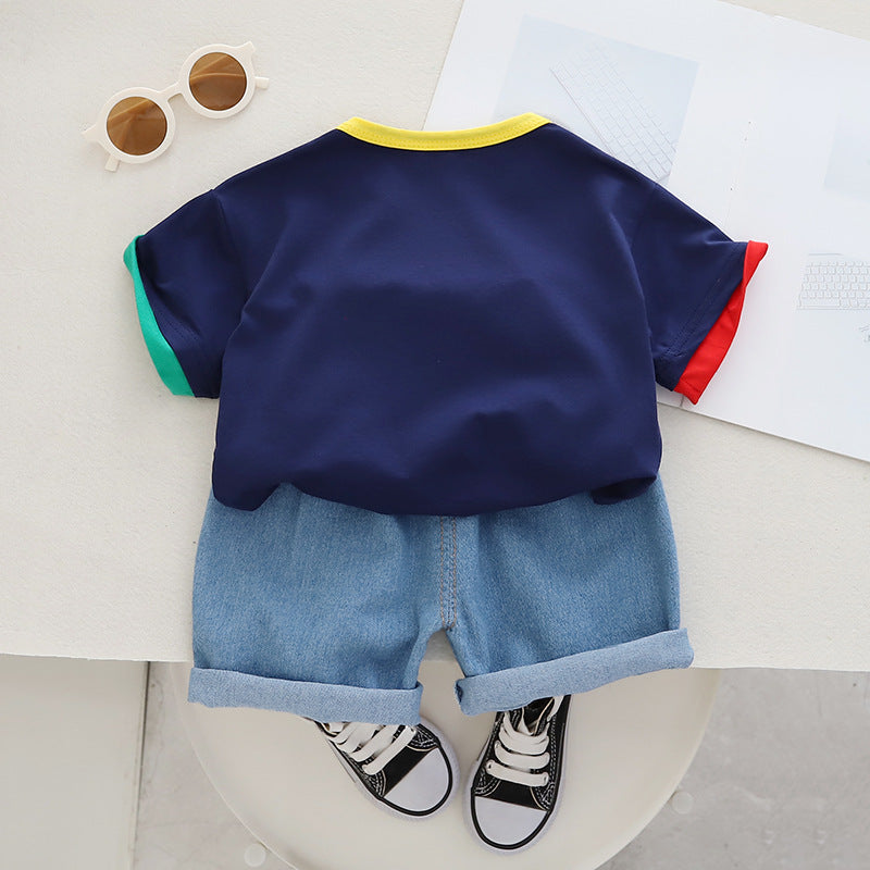 RM231223-15 طقم ولادي قطعتين ( بلوزة قطنية + شورت جينز )