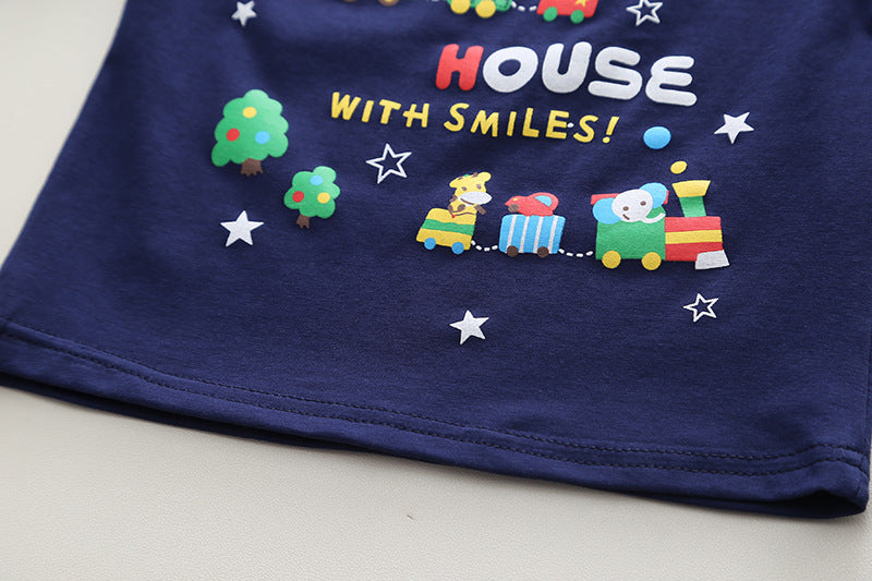طقم ولادي قطعتين ( بلوزة قطنية + شورت جينز )