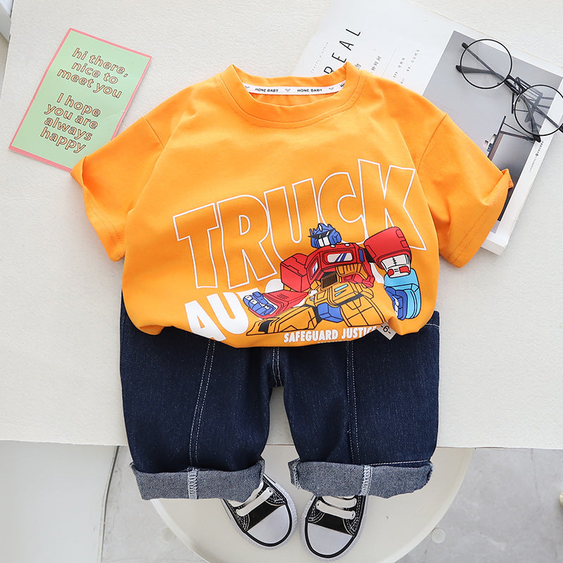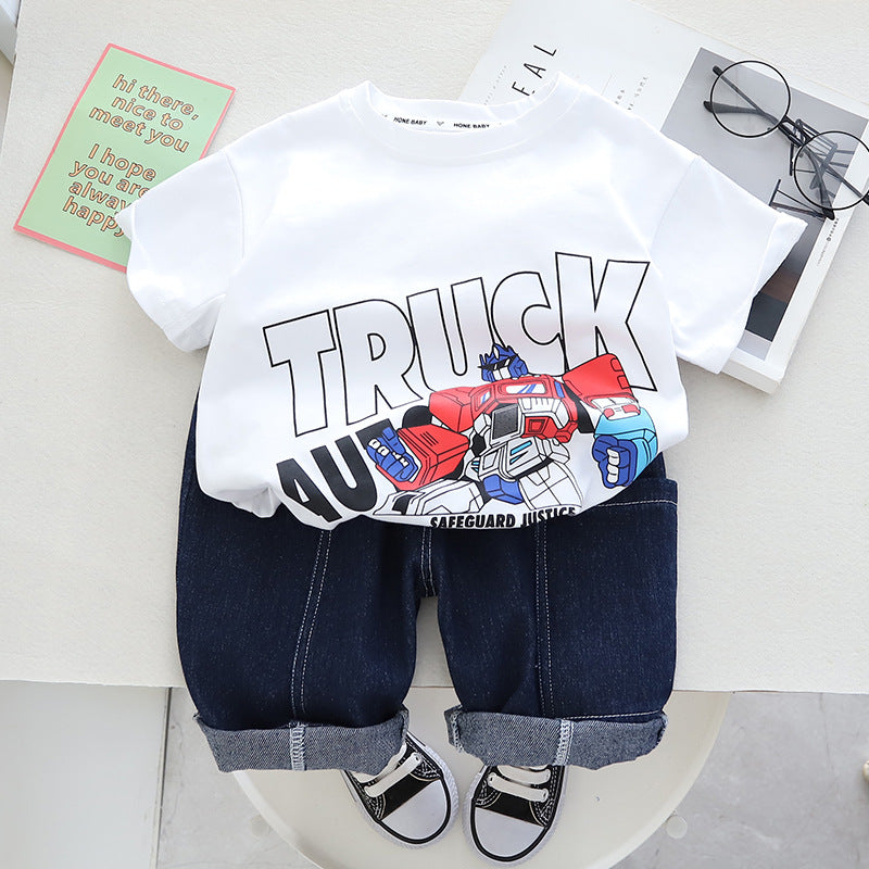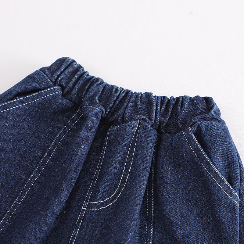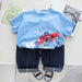 طقم جينز قطعتين ( بلوزة قطنية + شورت)