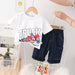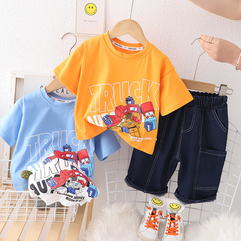 RM231223-1 طقم جينز قطعتين ( بلوزة قطنية + شورت)