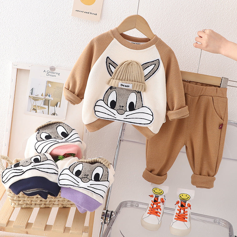 طقم ديزني ارنوب ( بلوزة مطرزة مع طاقية + بنطلون) خريفي شتوي