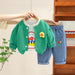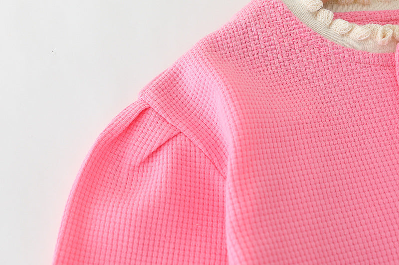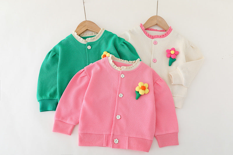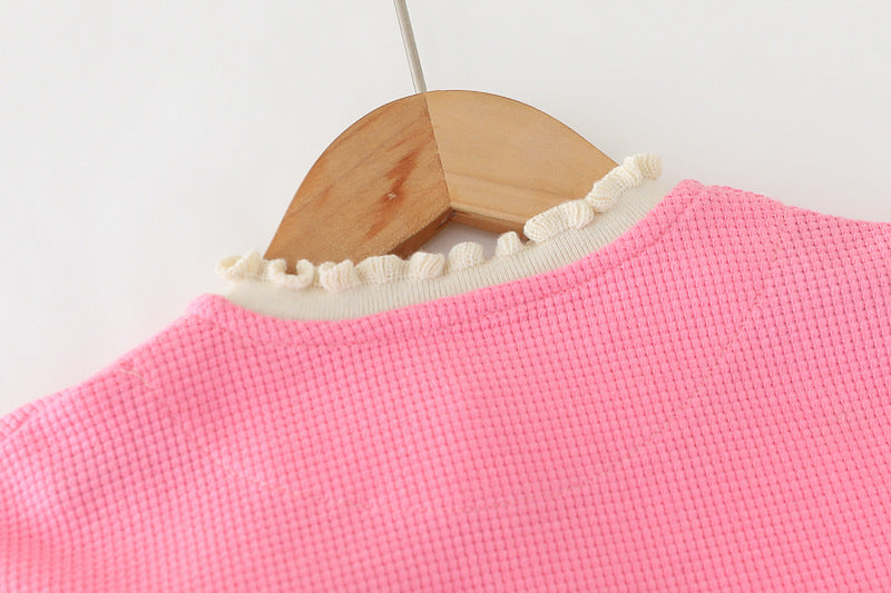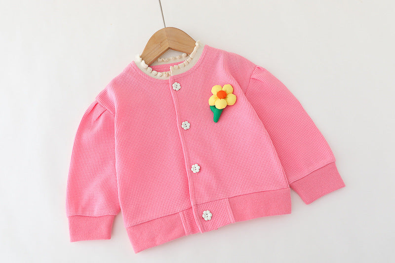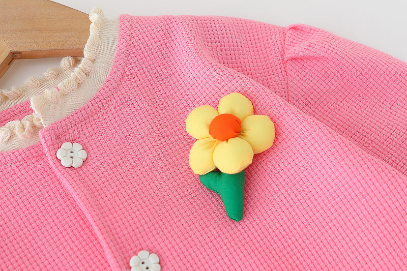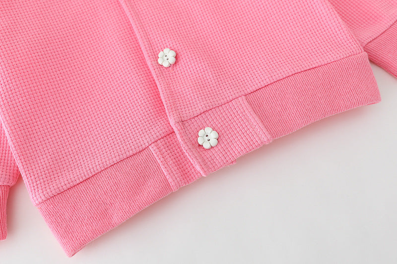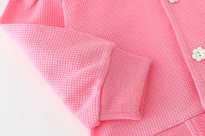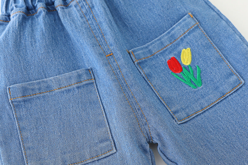RM231223-24 طقم بناتي 3 قطع ( بلوزة موردة + جكيت مع دبوس وردة + بنطلون جينز )