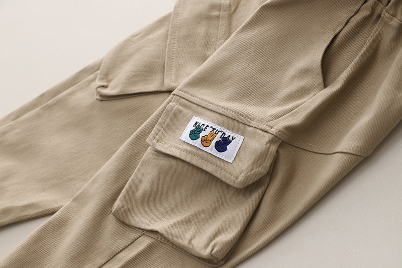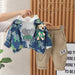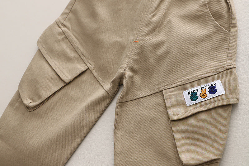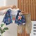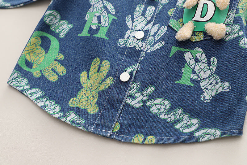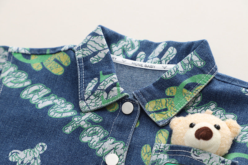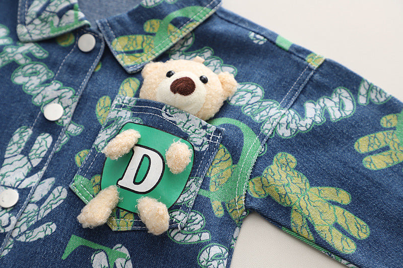 RM231223-25 طقم ولادي 3 قطع ( بلوزة قطعني + جكيت جينز مع دبدوب + بنطلون كتان)