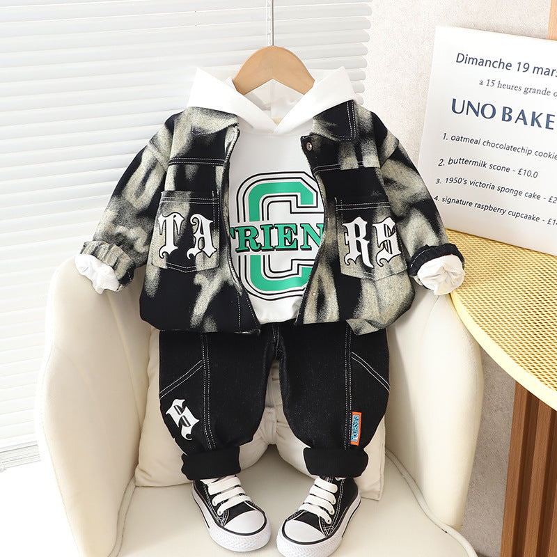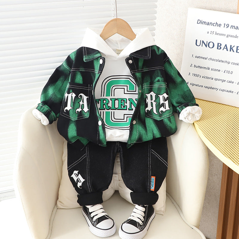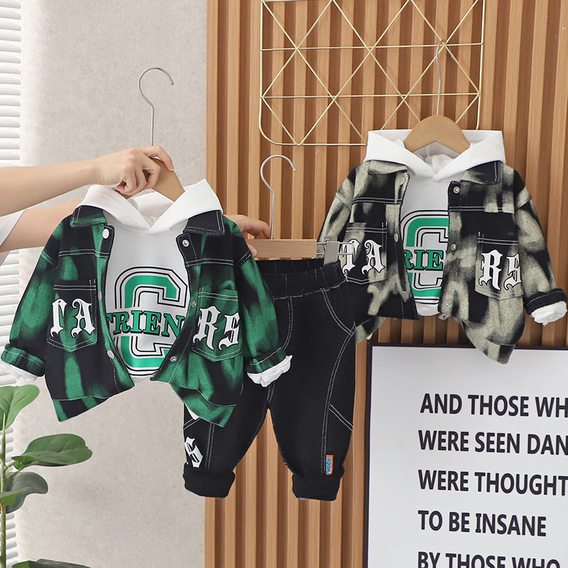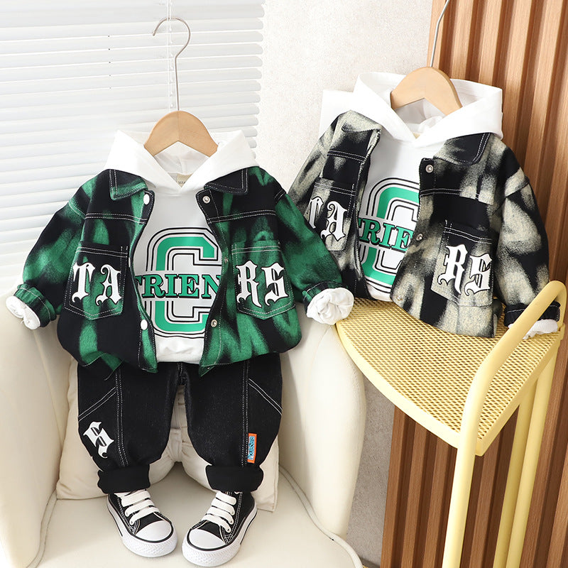طقم ولادي 3 قطع ( بلوزة قطنية + جكيت + بنطلون)