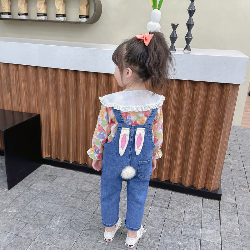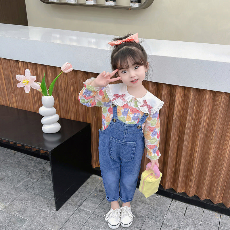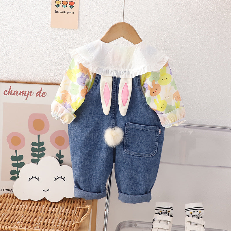 طقم بناتي قطعتين ( افرهول جينز + قميص )