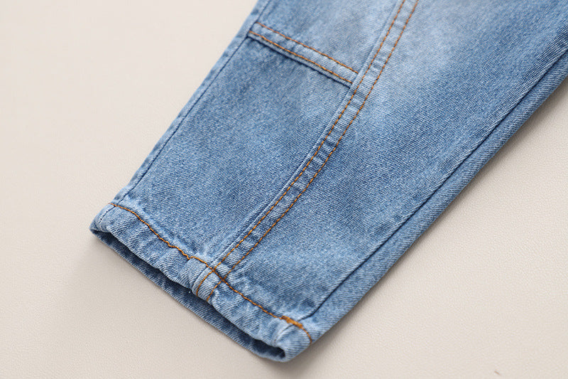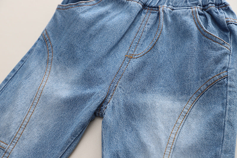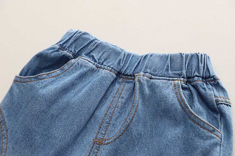 طقم جينز ولادي قطعتين ( بلوزة قطنية + بنطلون جينز )