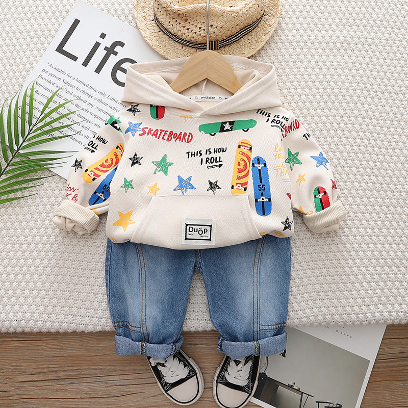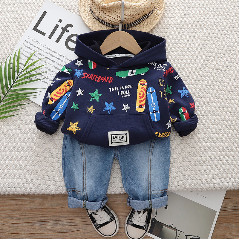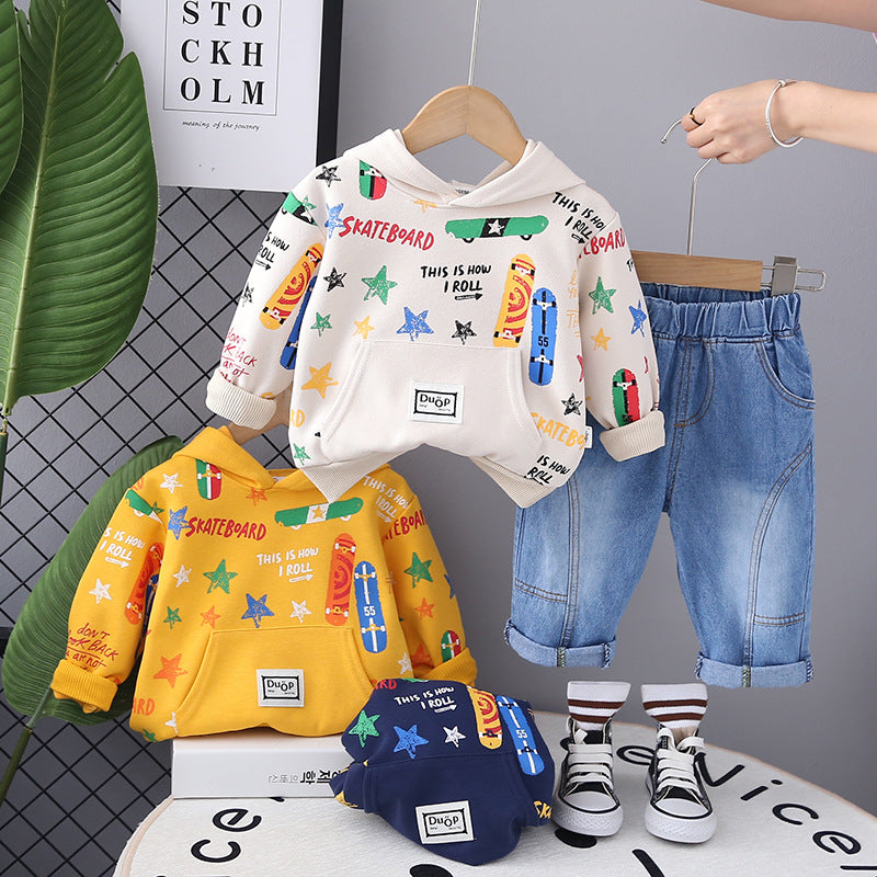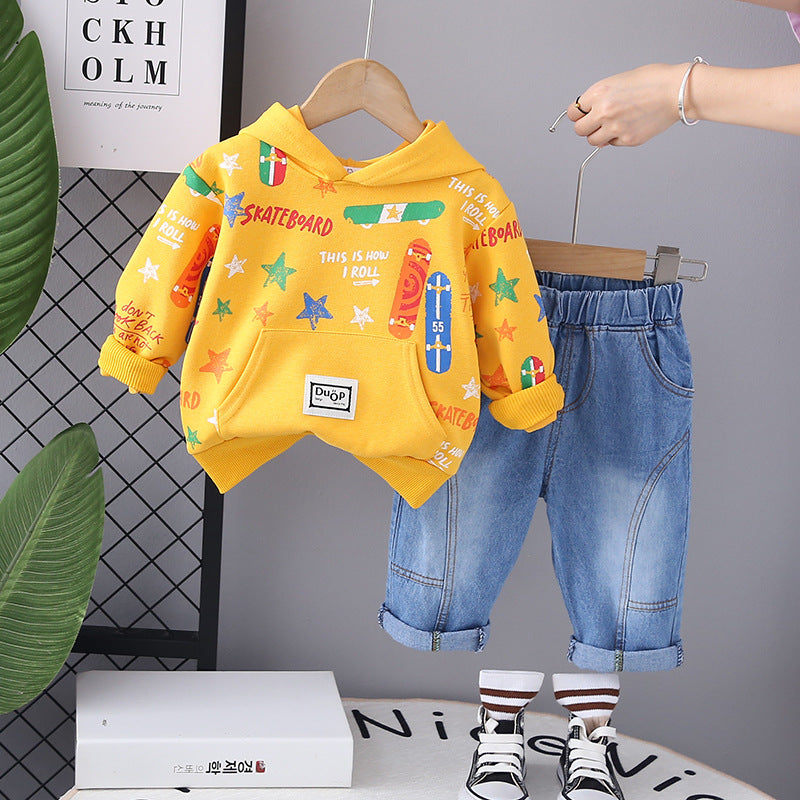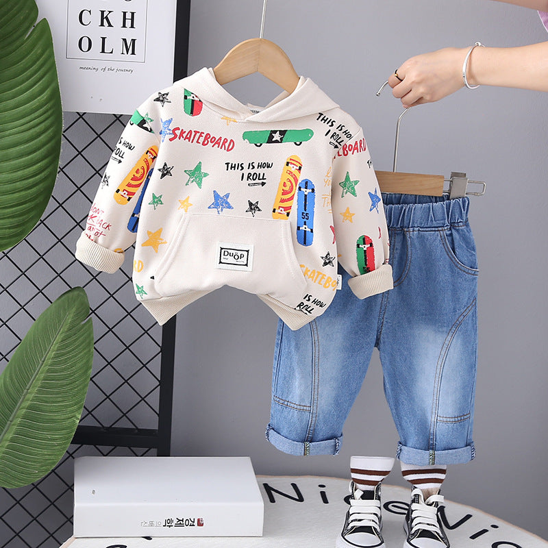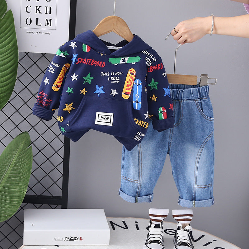 RM231223-42 طقم جينز ولادي قطعتين ( بلوزة قطنية + بنطلون جينز )