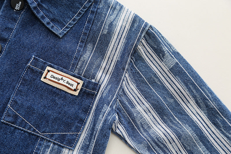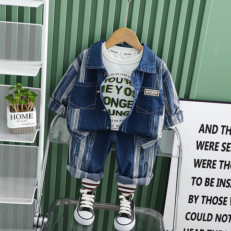 طقم جينز مكون من 3 قطع ( جكيت جينز+ بلوزة قطنية+ بنطلون جينز)