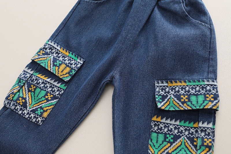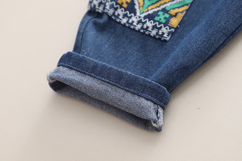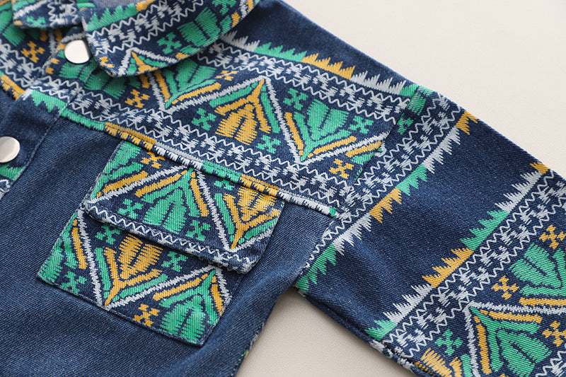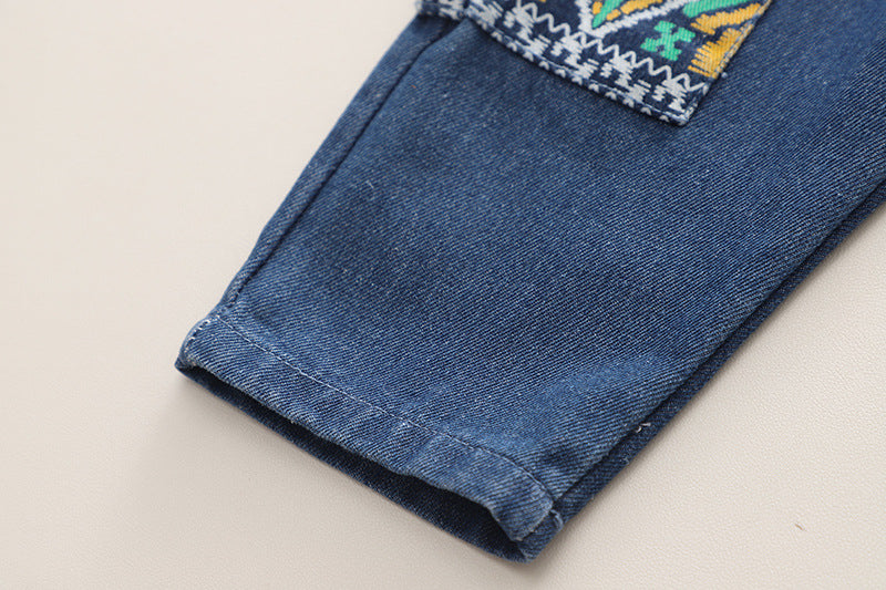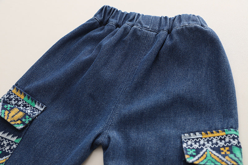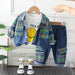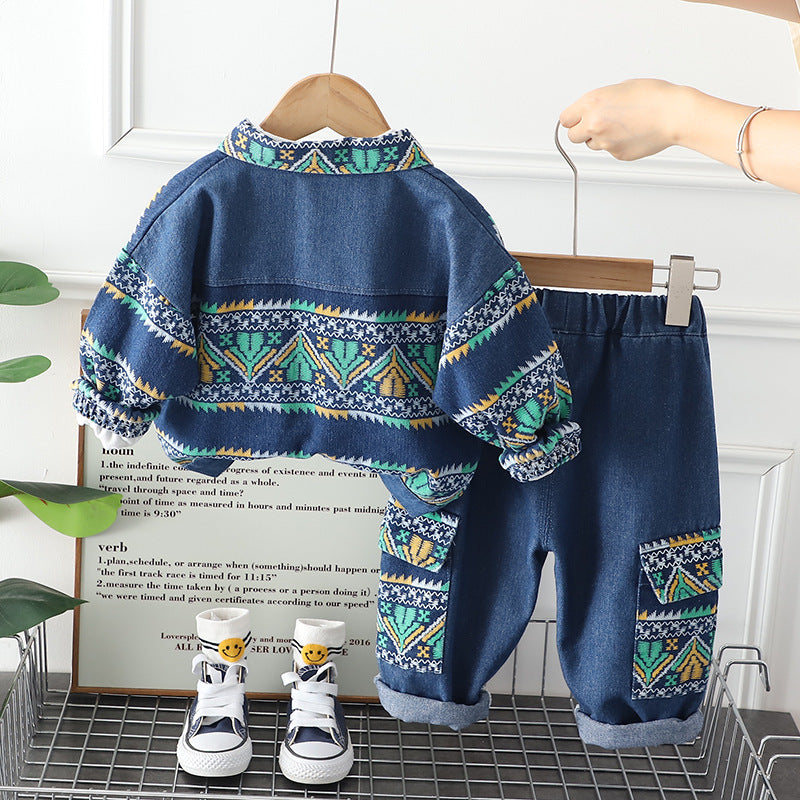 RM231223-7 طقم جينز ولادي 3 قطع ( بلوزة قطنية + جكيت جينز + بنطلون جينز )