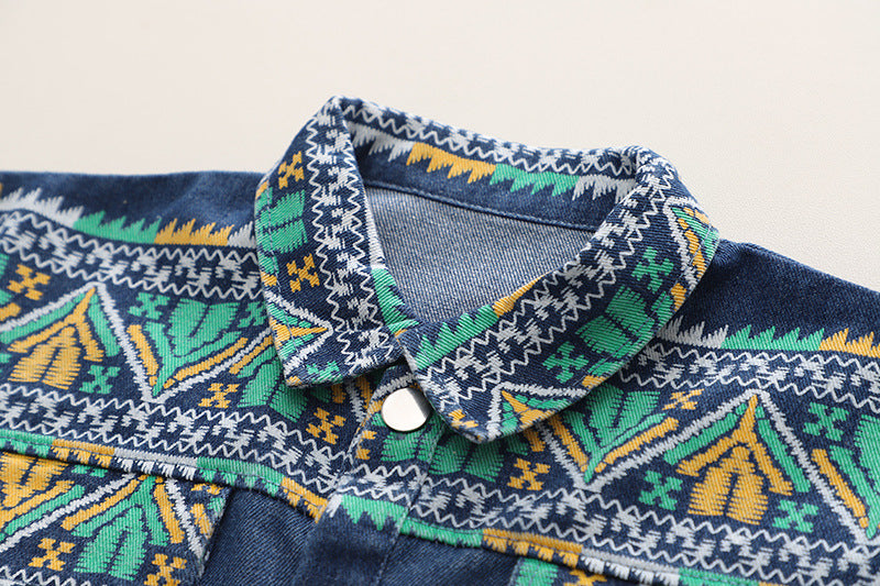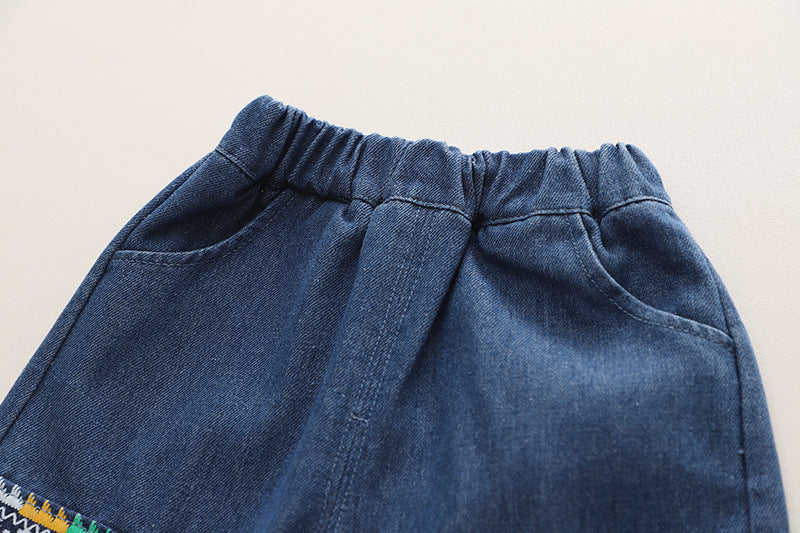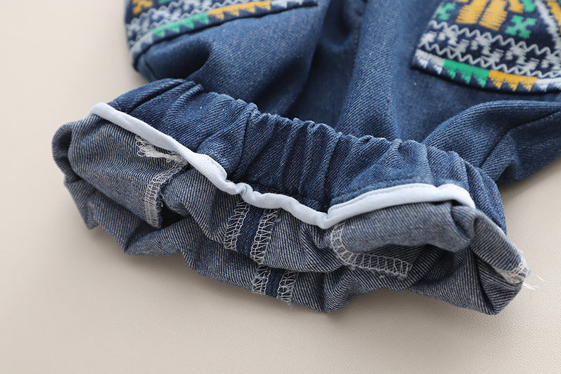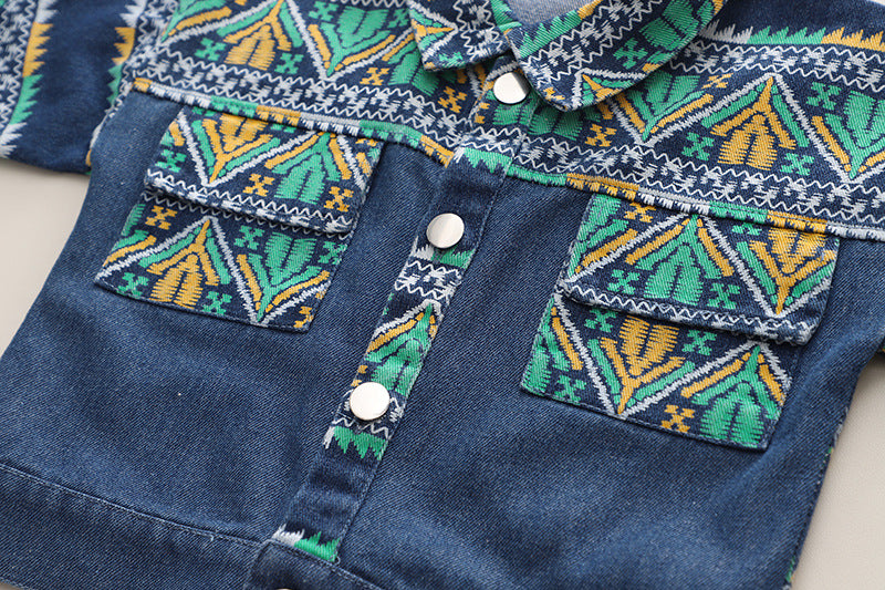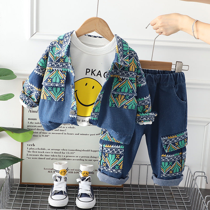 طقم جينز ولادي 3 قطع ( بلوزة قطنية + جكيت جينز + بنطلون جينز )