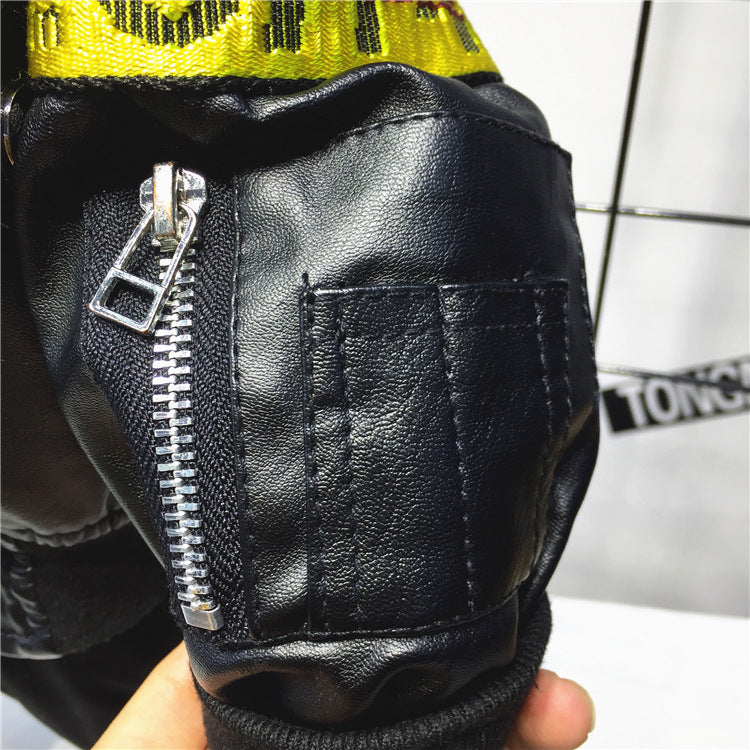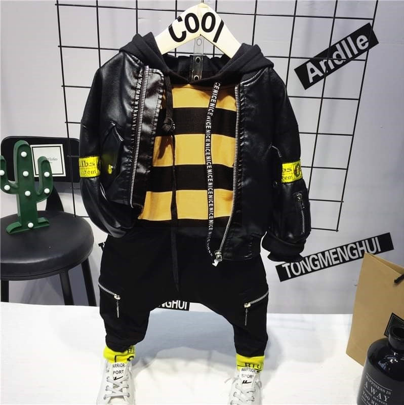 طقم فخم 3 قطع ( جكيت جلد + بلوزة قطنية + بنطلون )