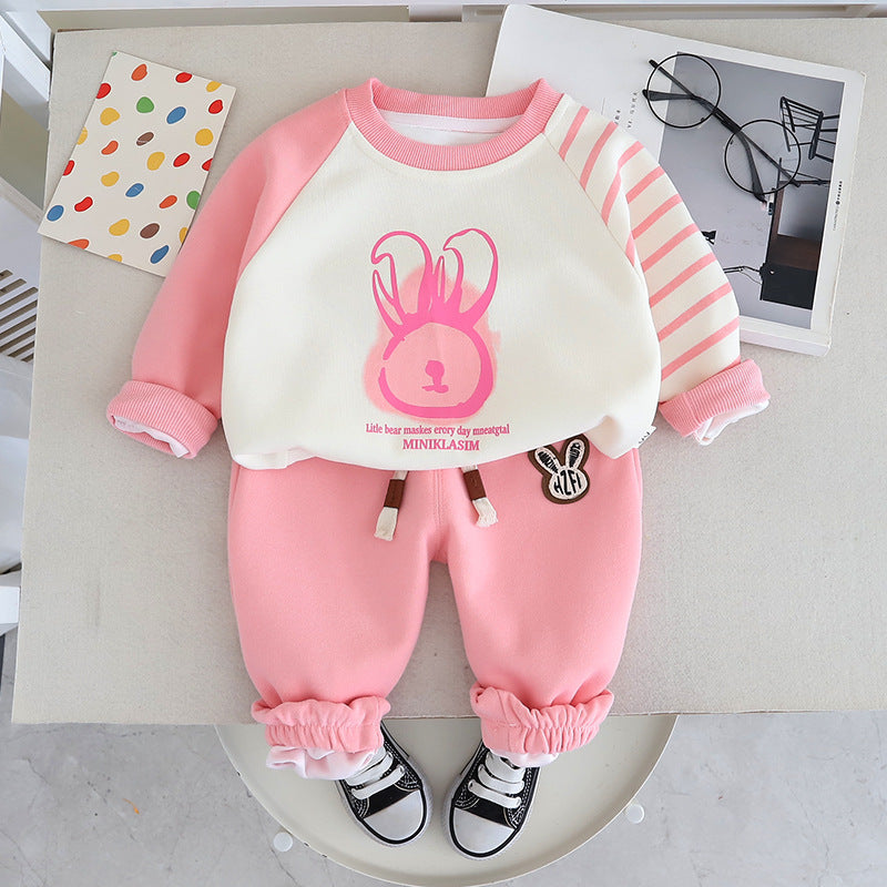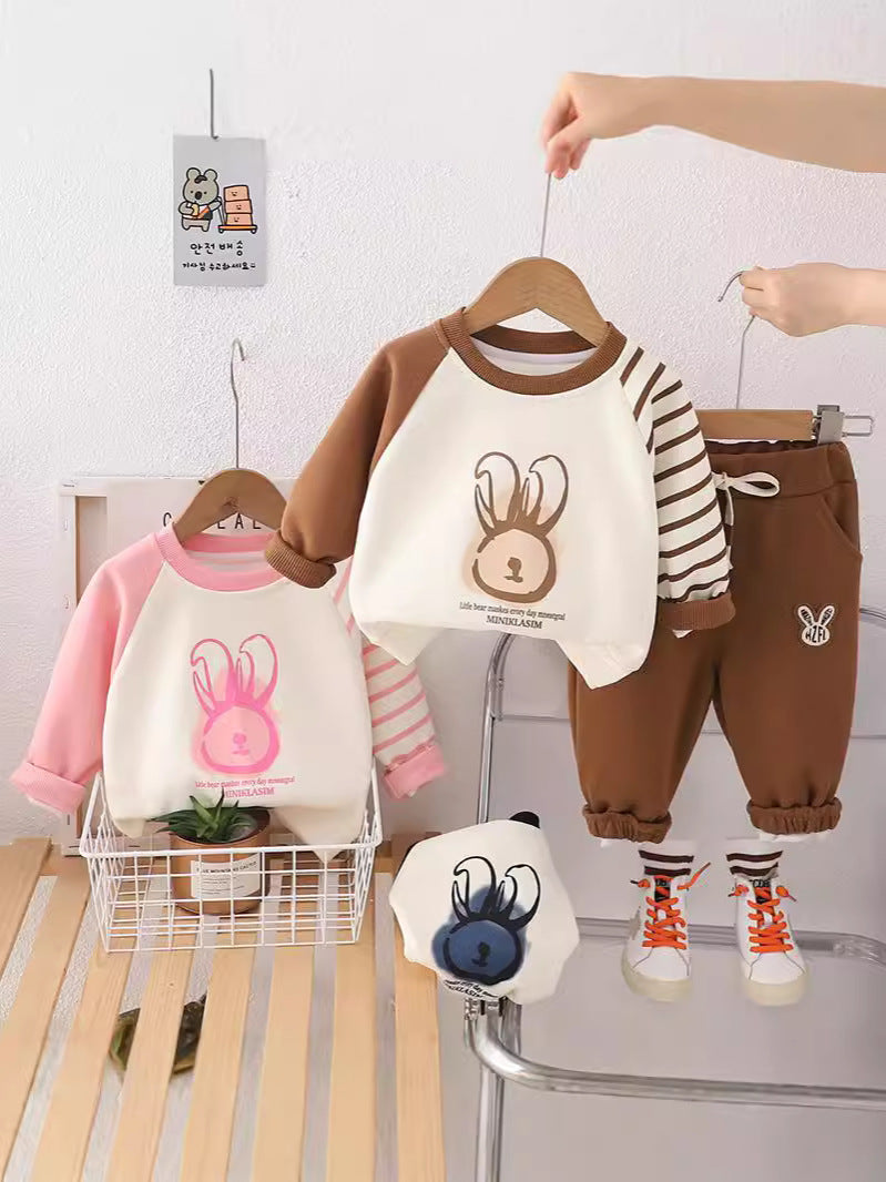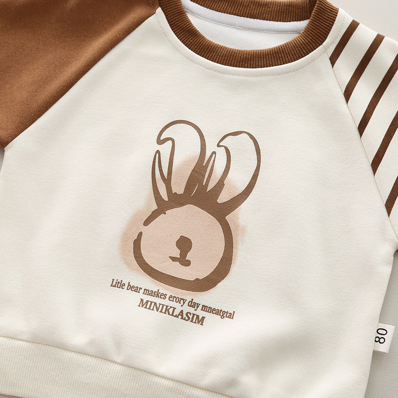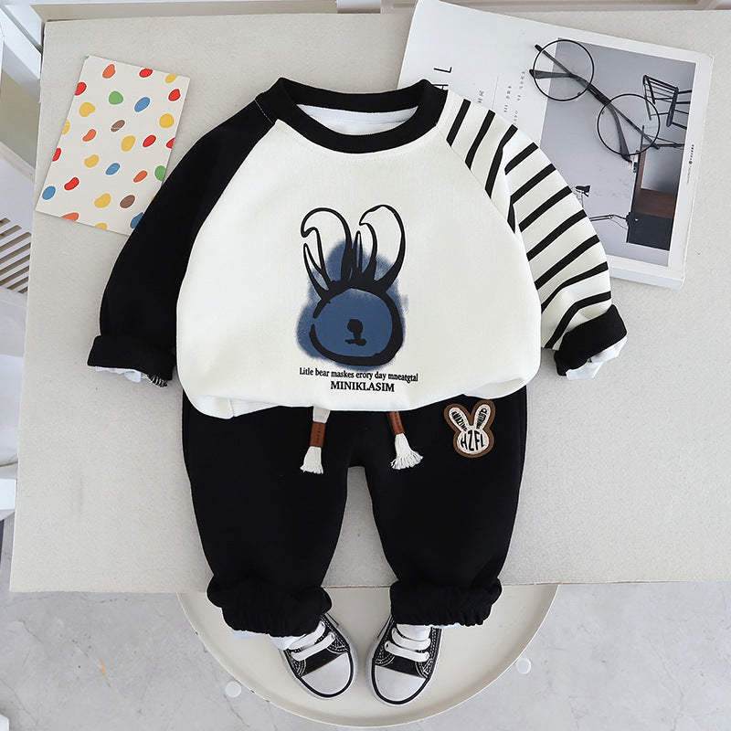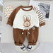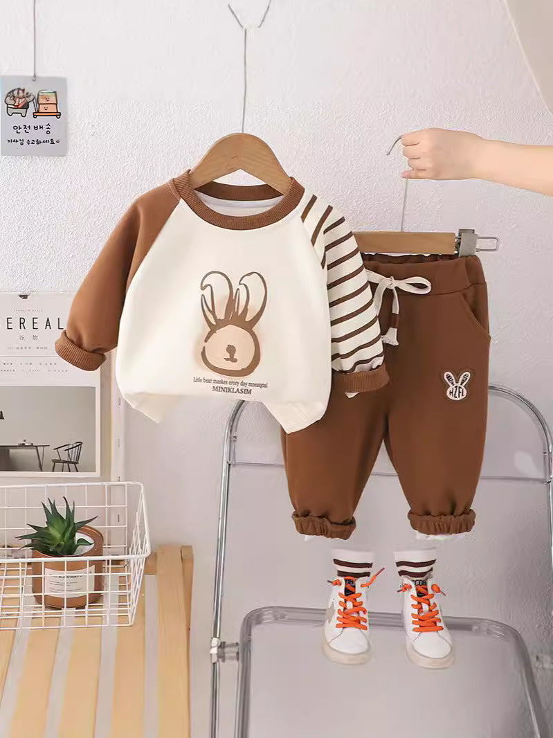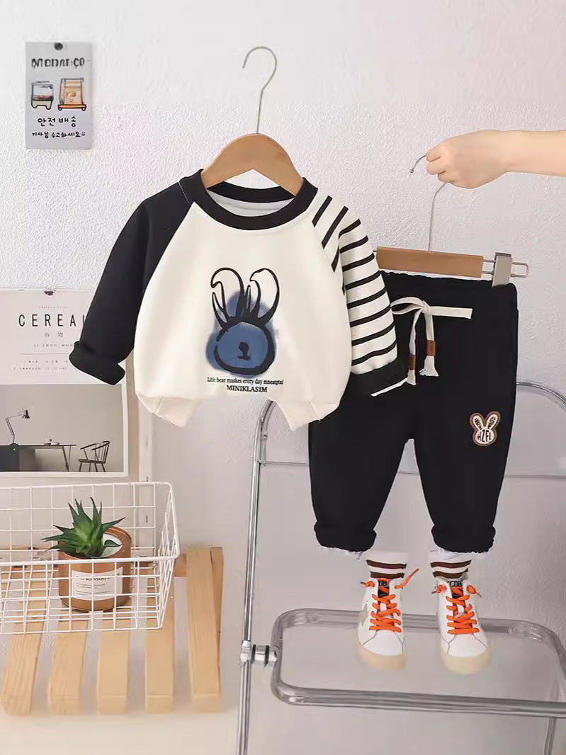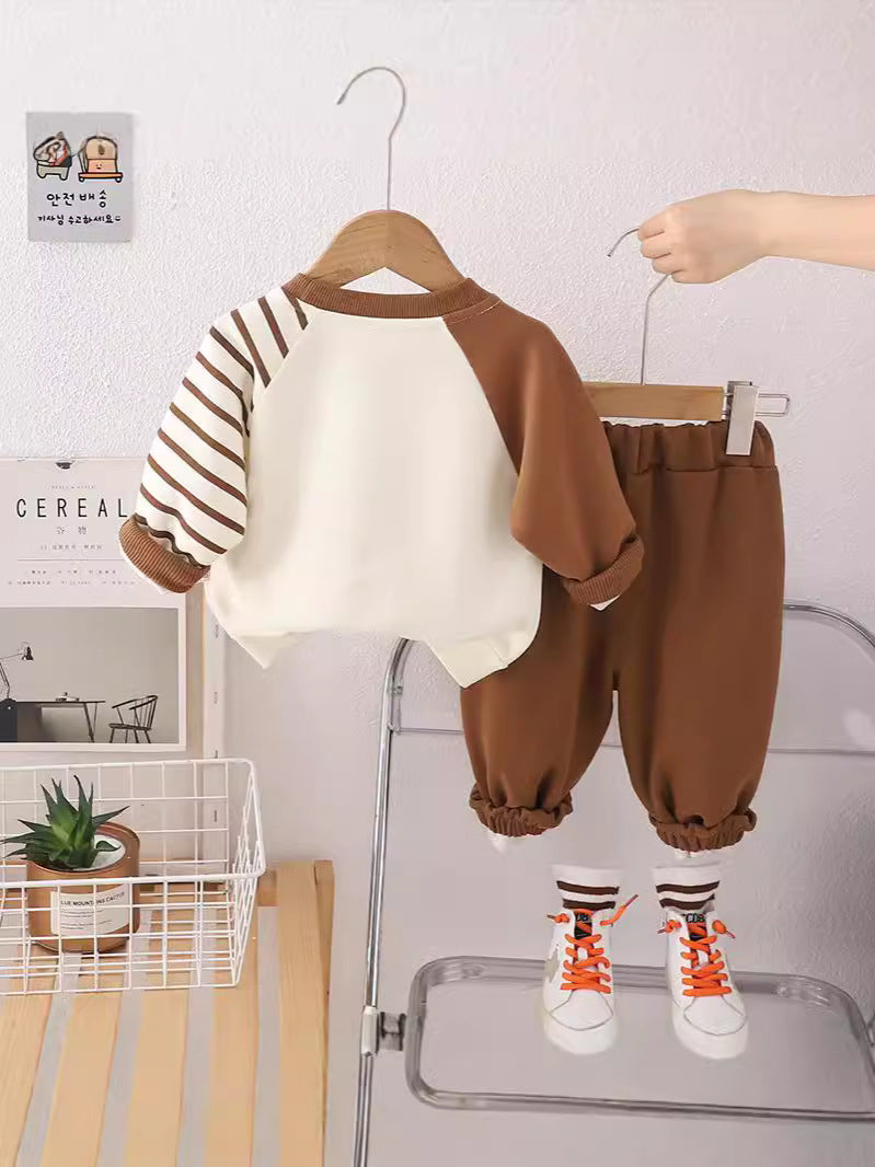 SSN040924-43 طقم ولادي قطن دافي خريفي ربيعي قطعتين (بلوزة + بنطلون )