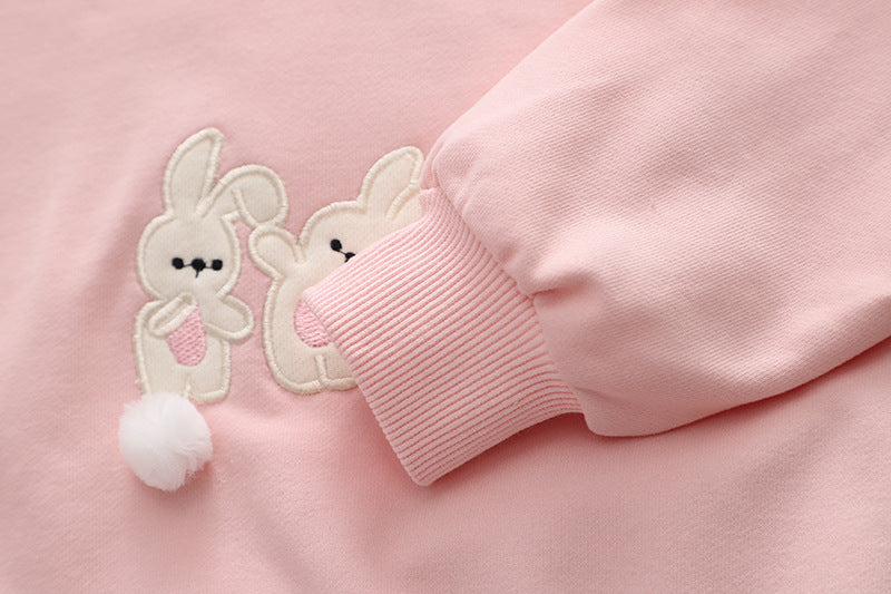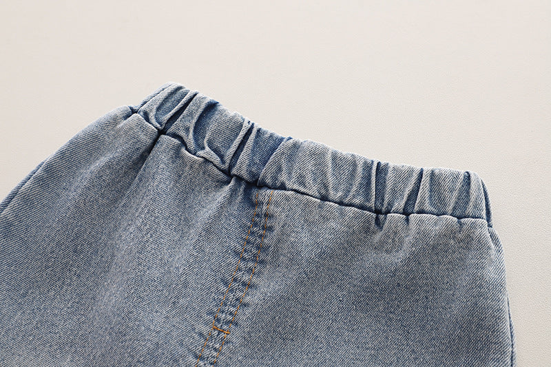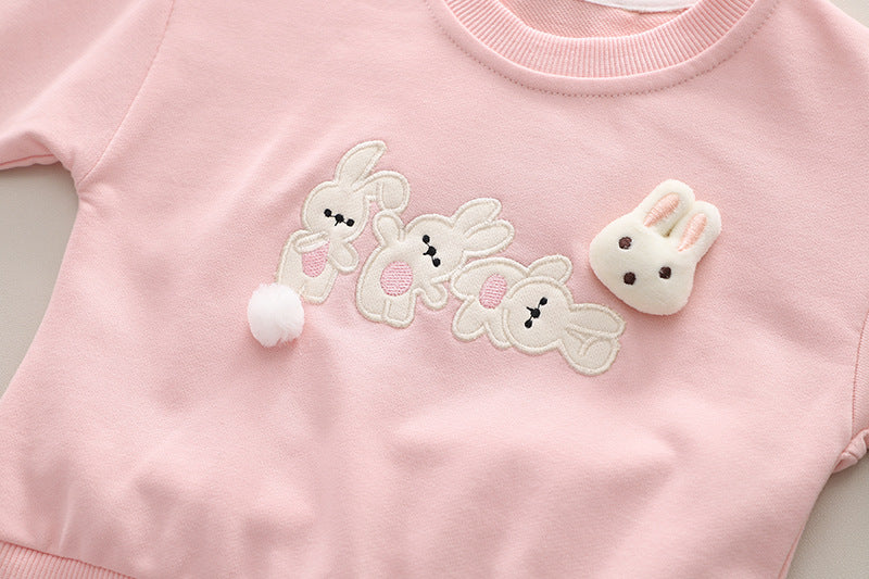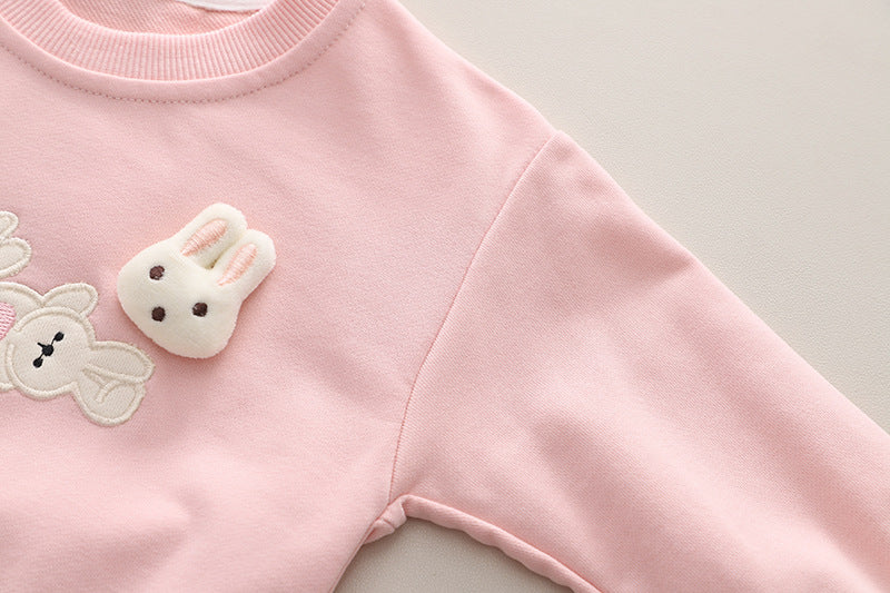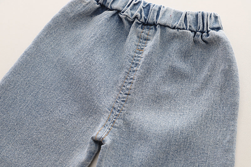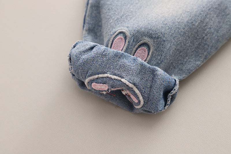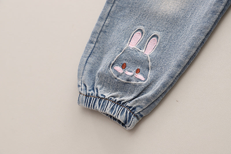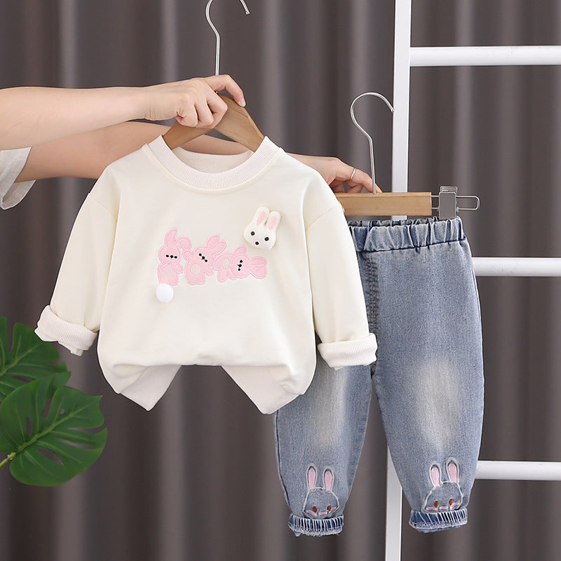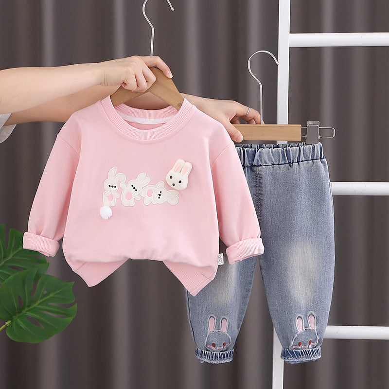 SSN040924-49 طقم بناتي ربيعي خريفي قطعتين ( بلوزة قطن دافي+ بنطلون جينز )