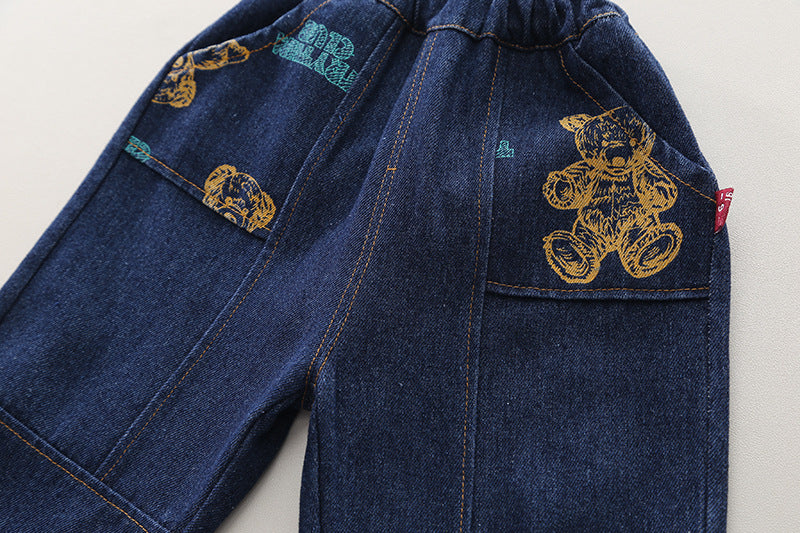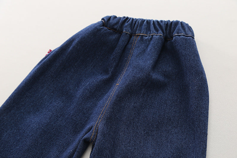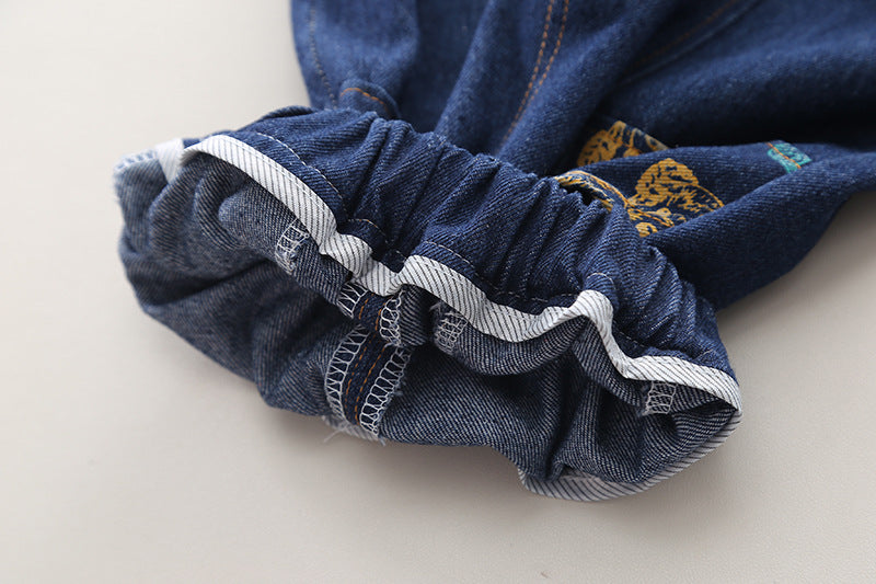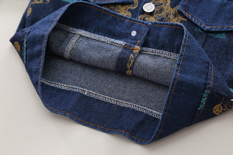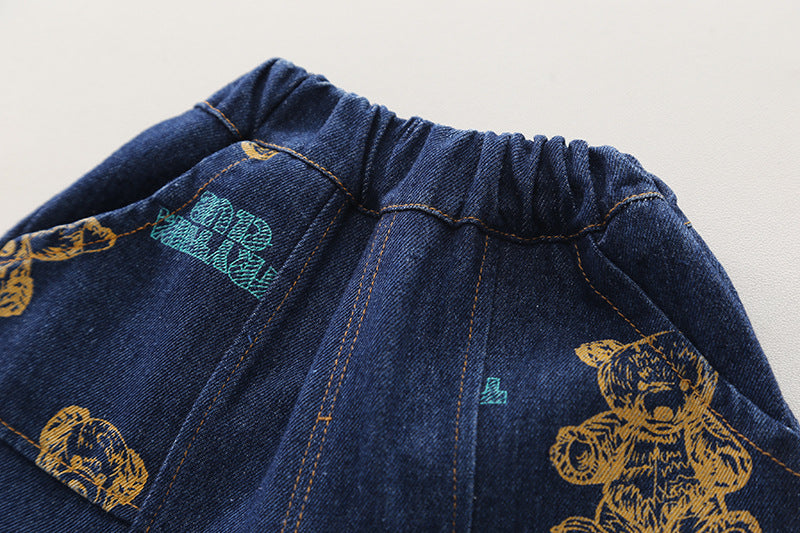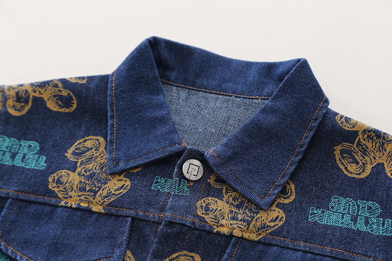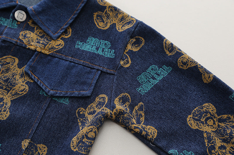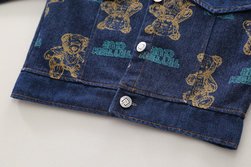 SSN040924-4 طقم جينز ولادي خريفي ربيعي 3 قطع ( بلوزة قطن + جكيت جينز + بنطلون جينز )