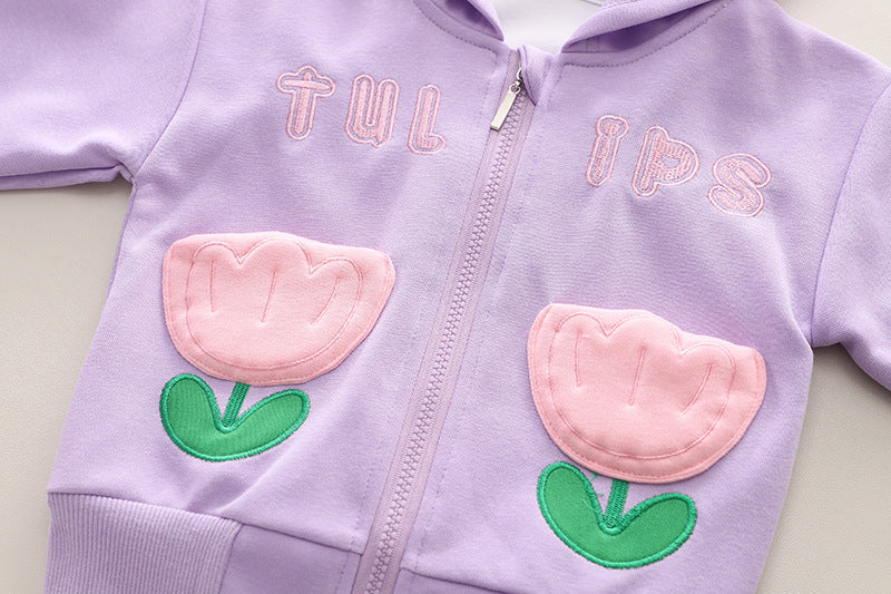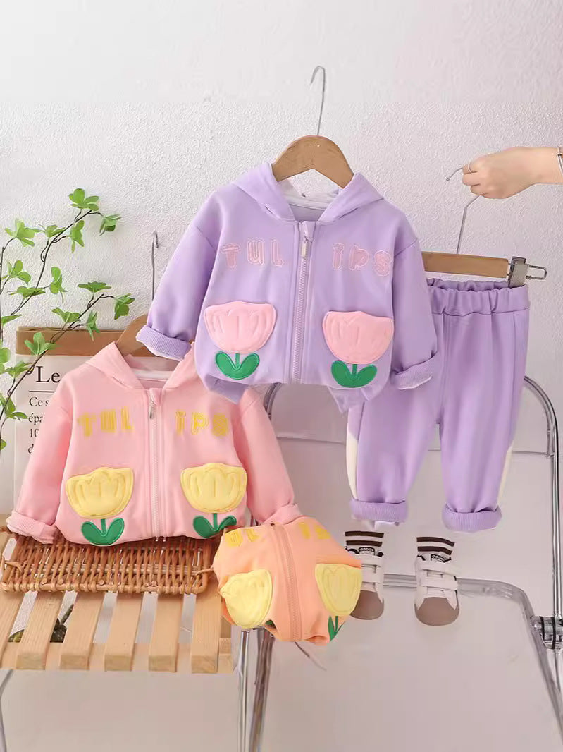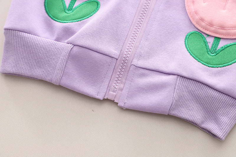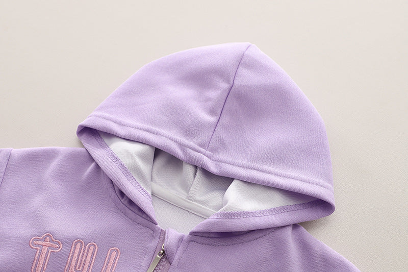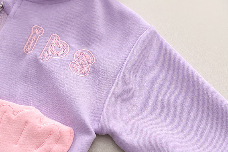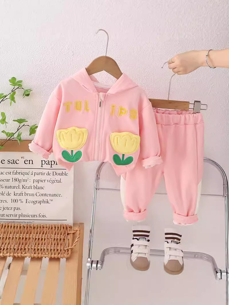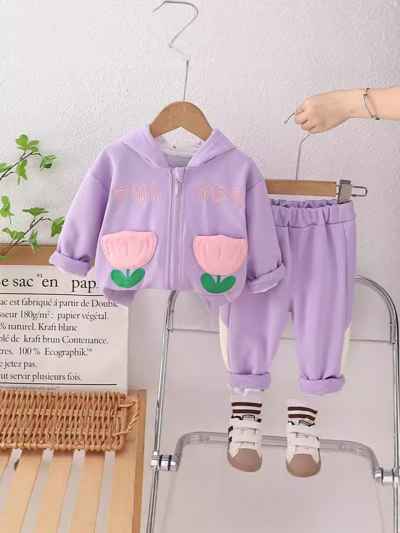 SSN040924-53 طقم بناتي قطن تقيل خريفي ربيعي قطعتين ( جكيت + بنطلون)