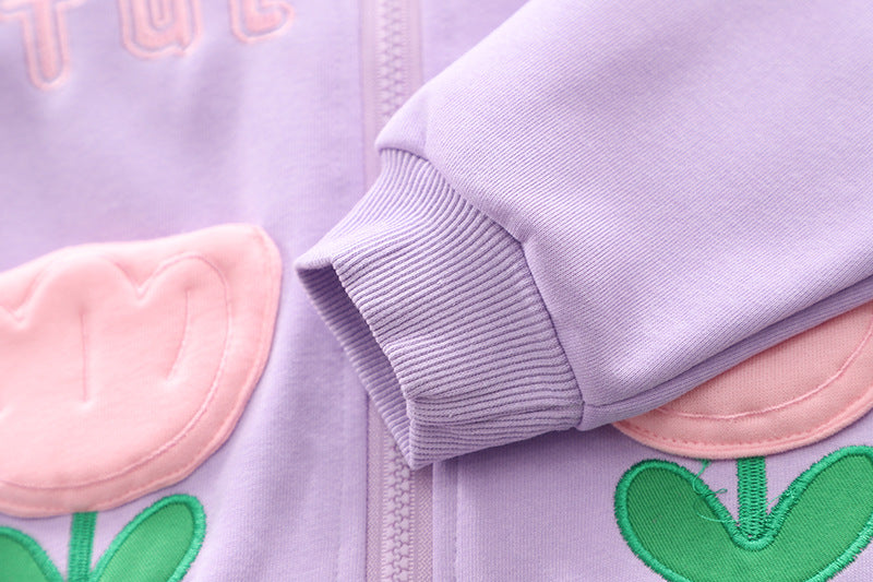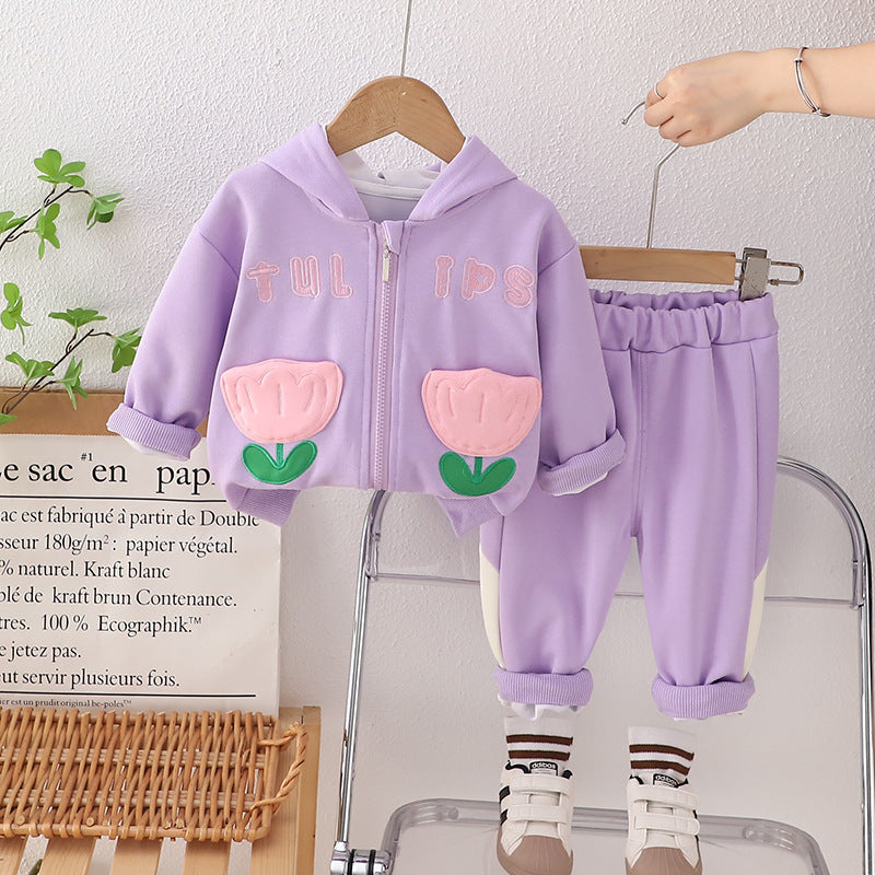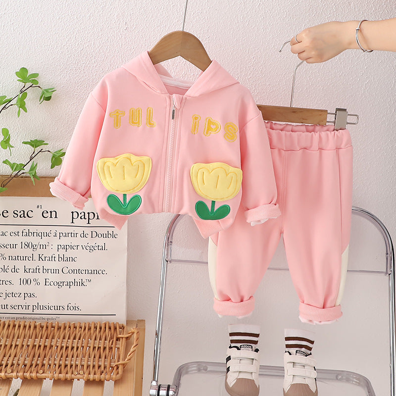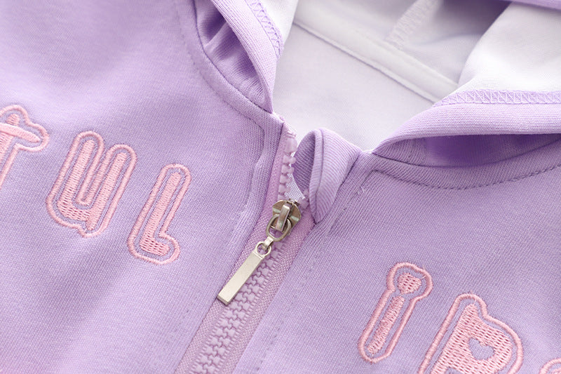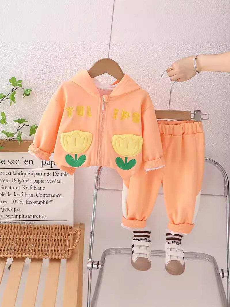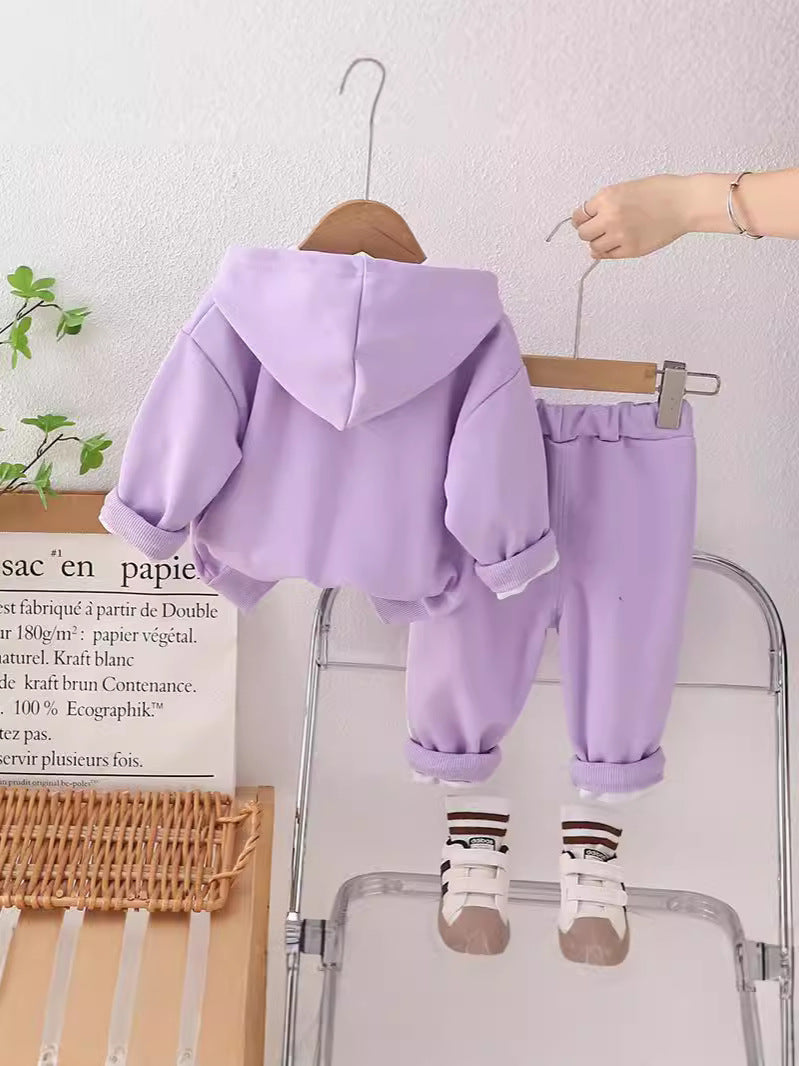 طقم بناتي قطن تقيل خريفي ربيعي قطعتين ( جكيت + بنطلون)