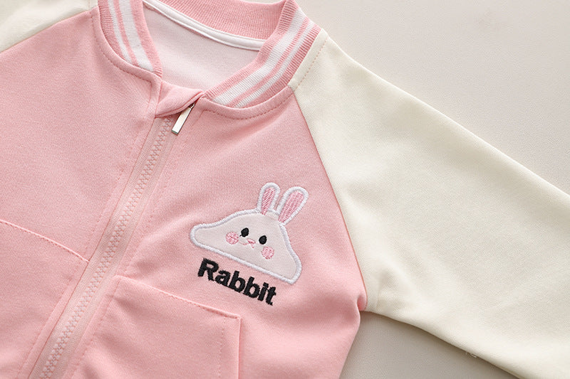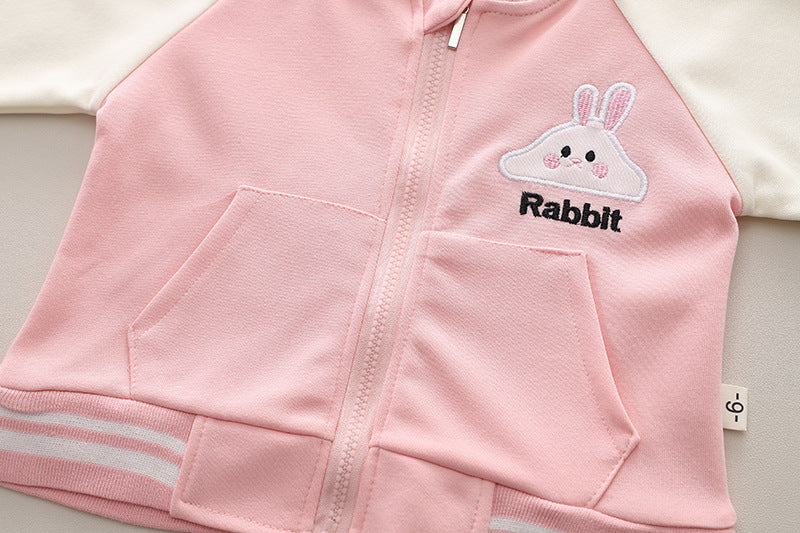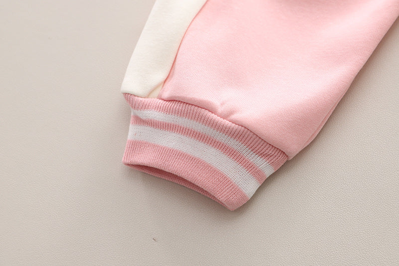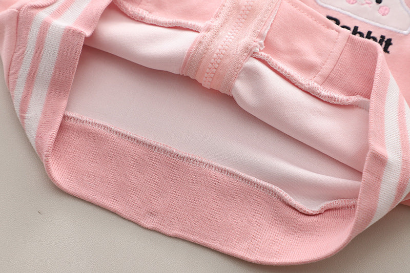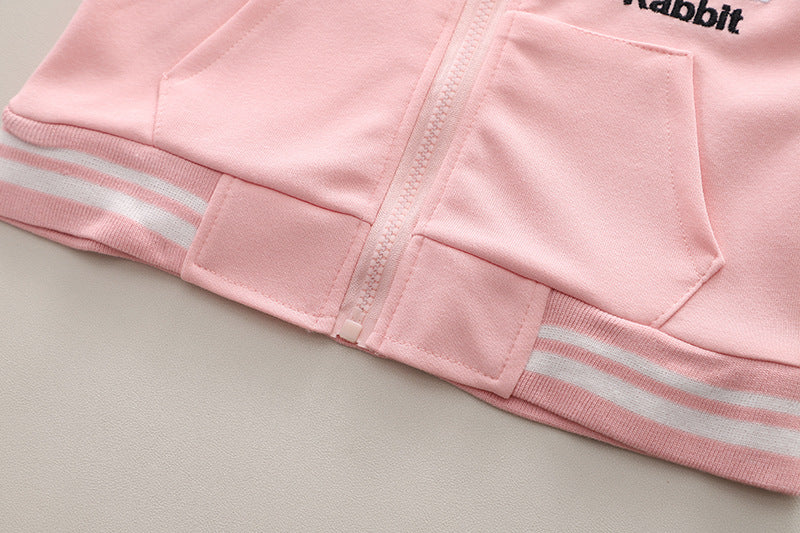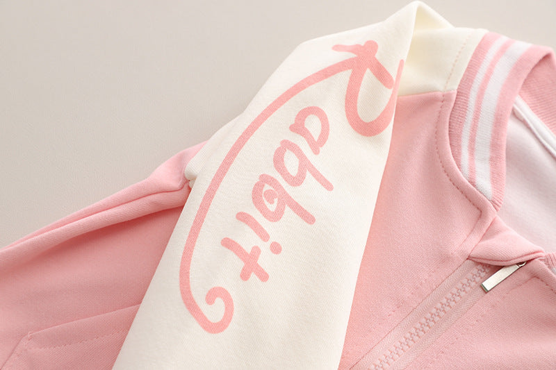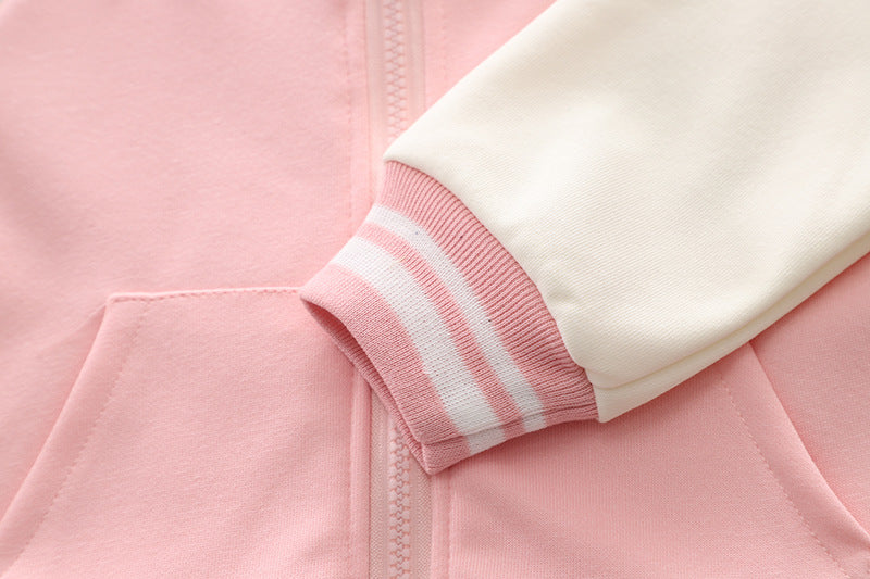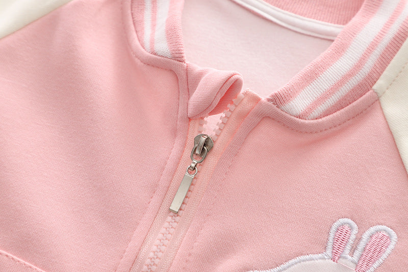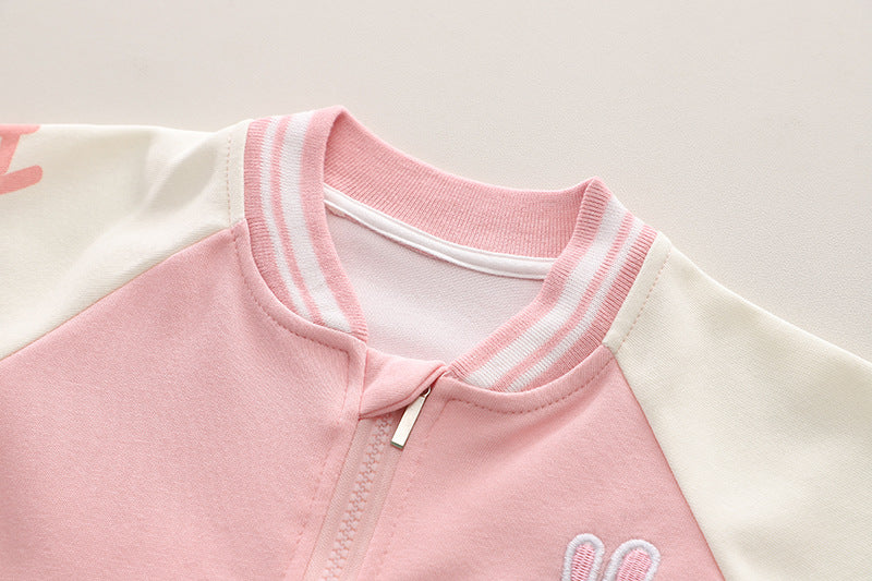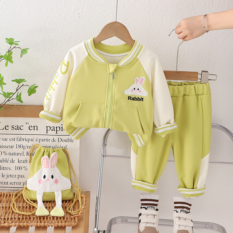 طقم بناتي ربيعي خريفي قطن تقيل 3 قطع ( جكيت + بنطلون + حقيبة)