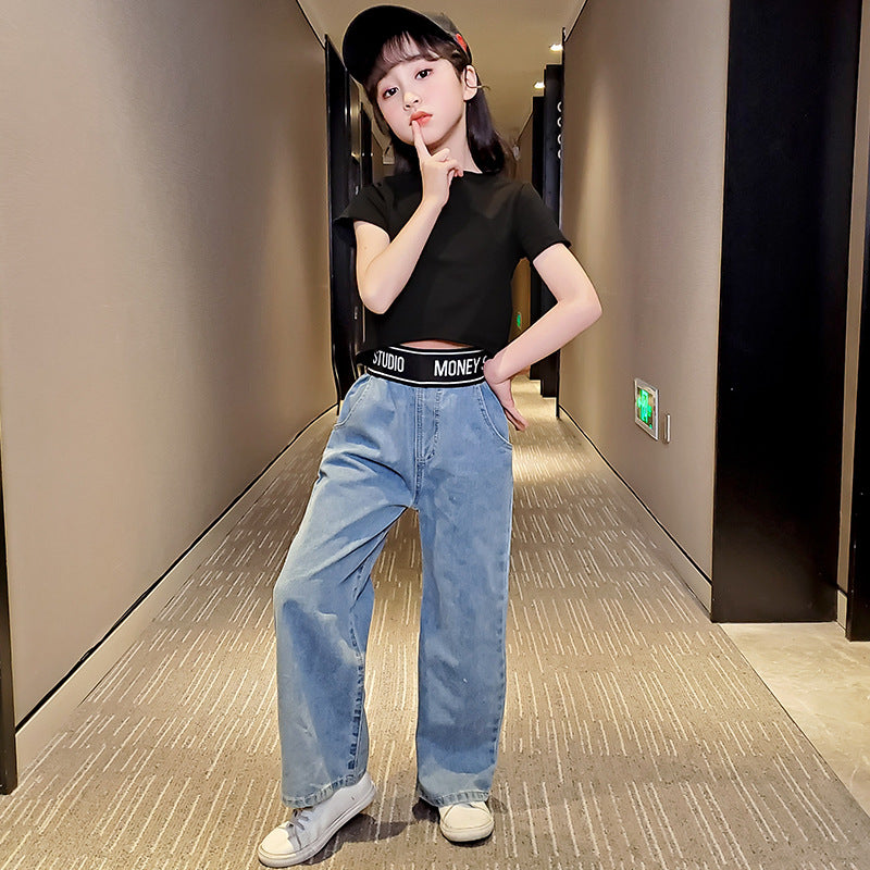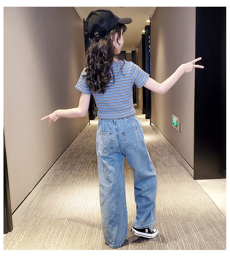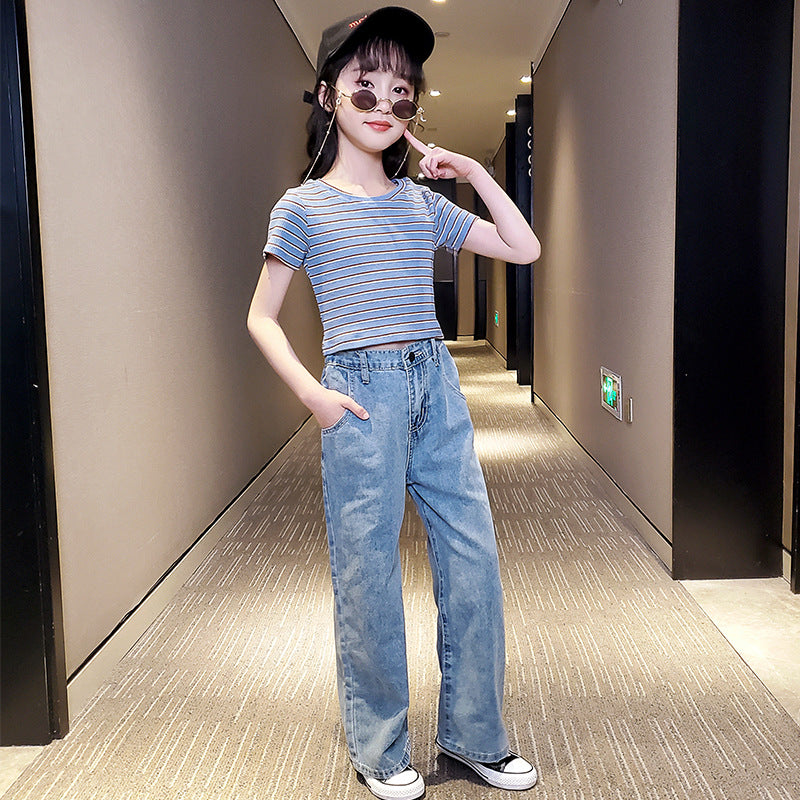 طقم جينز قطعتين (بلوزة +بنطلون)