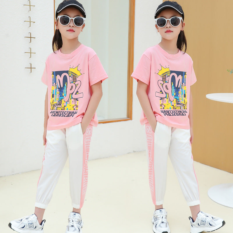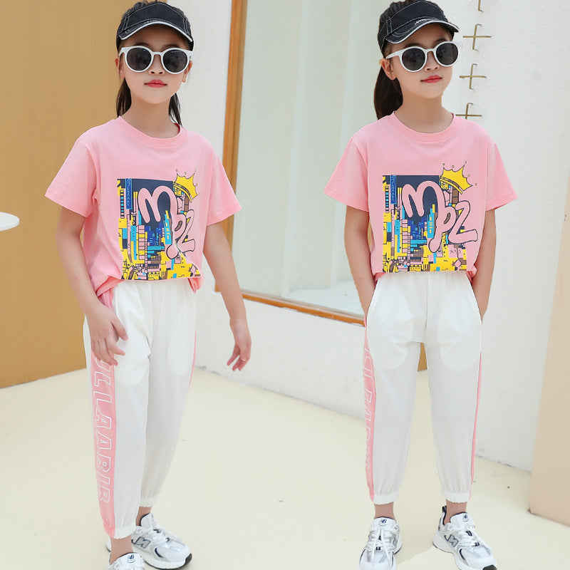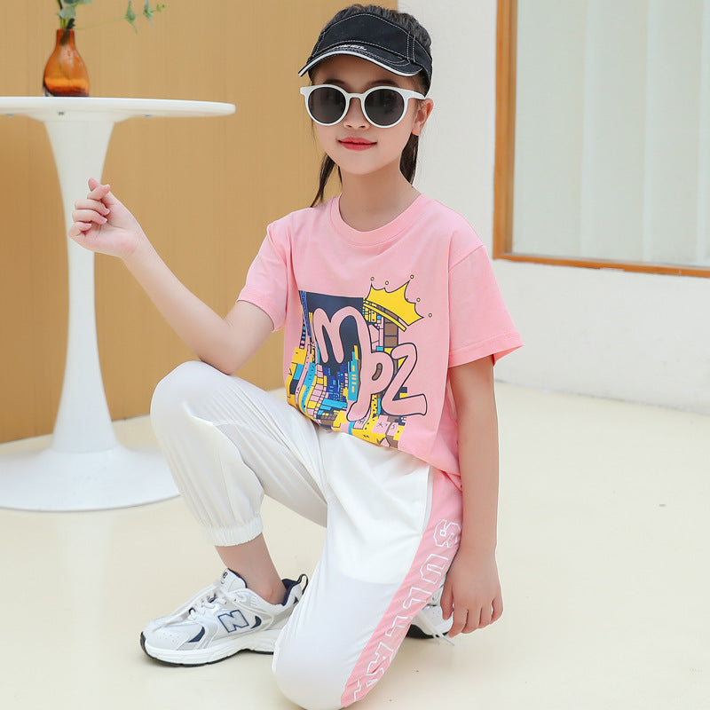 طقم بناتي سبورت قطعتين ( بلوزة + بنطلون )