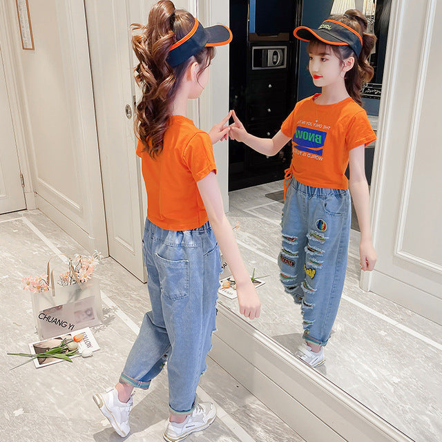 طقم جينز ( بلوز قطنية ناعمة+ جينز ملون ناعم )