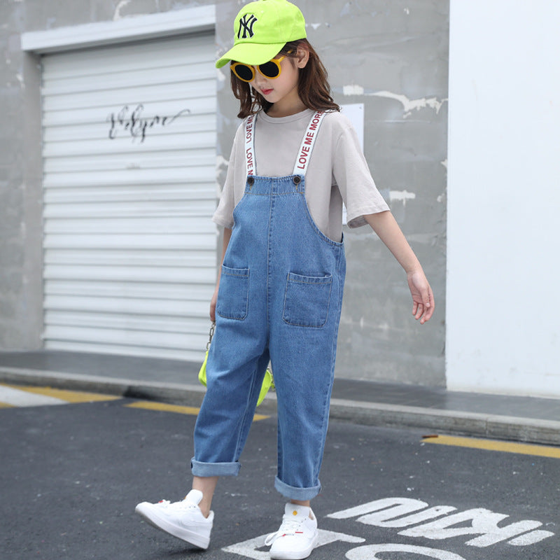 SSP-1639G طقم صيفي (بلوزة قطنية + أفرهول جينز)