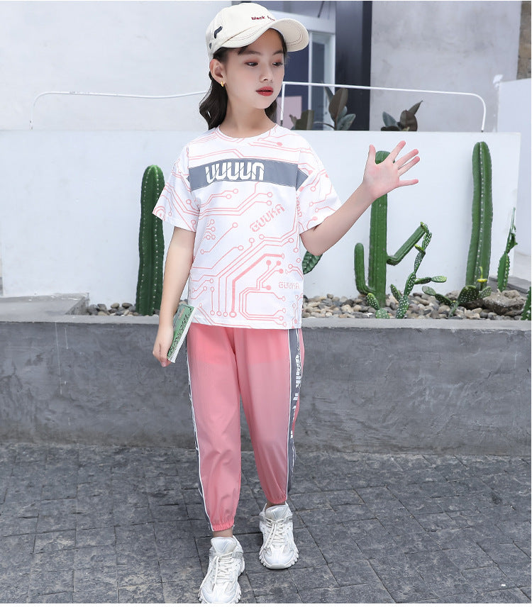 SSP-997G تريننج بناتي ( بلوزة قطنية + بنطلون ستان)