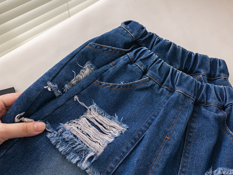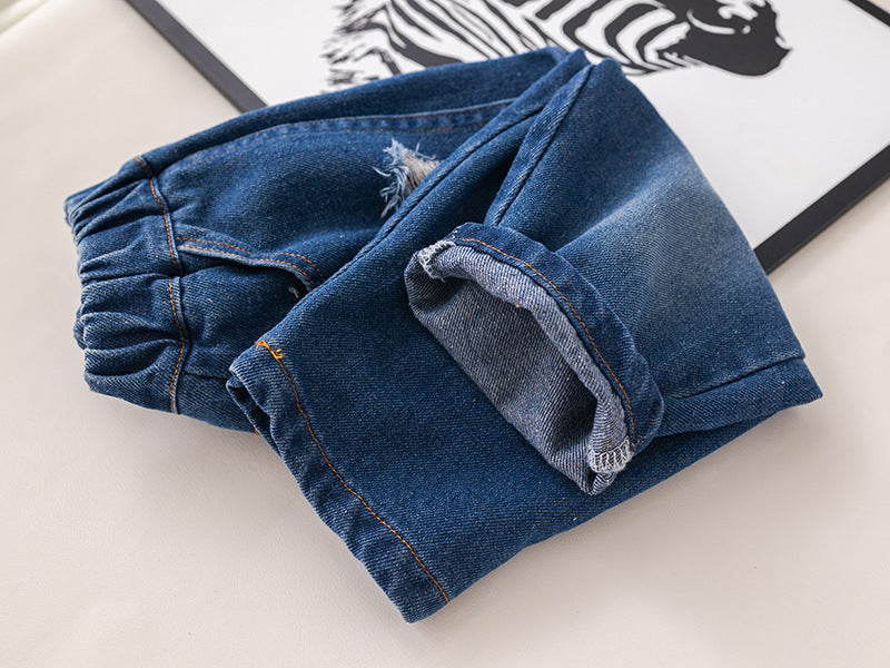 SSX220824-109 طقم ولادي قطعتين ( بلوزة + بنطلون جينز)